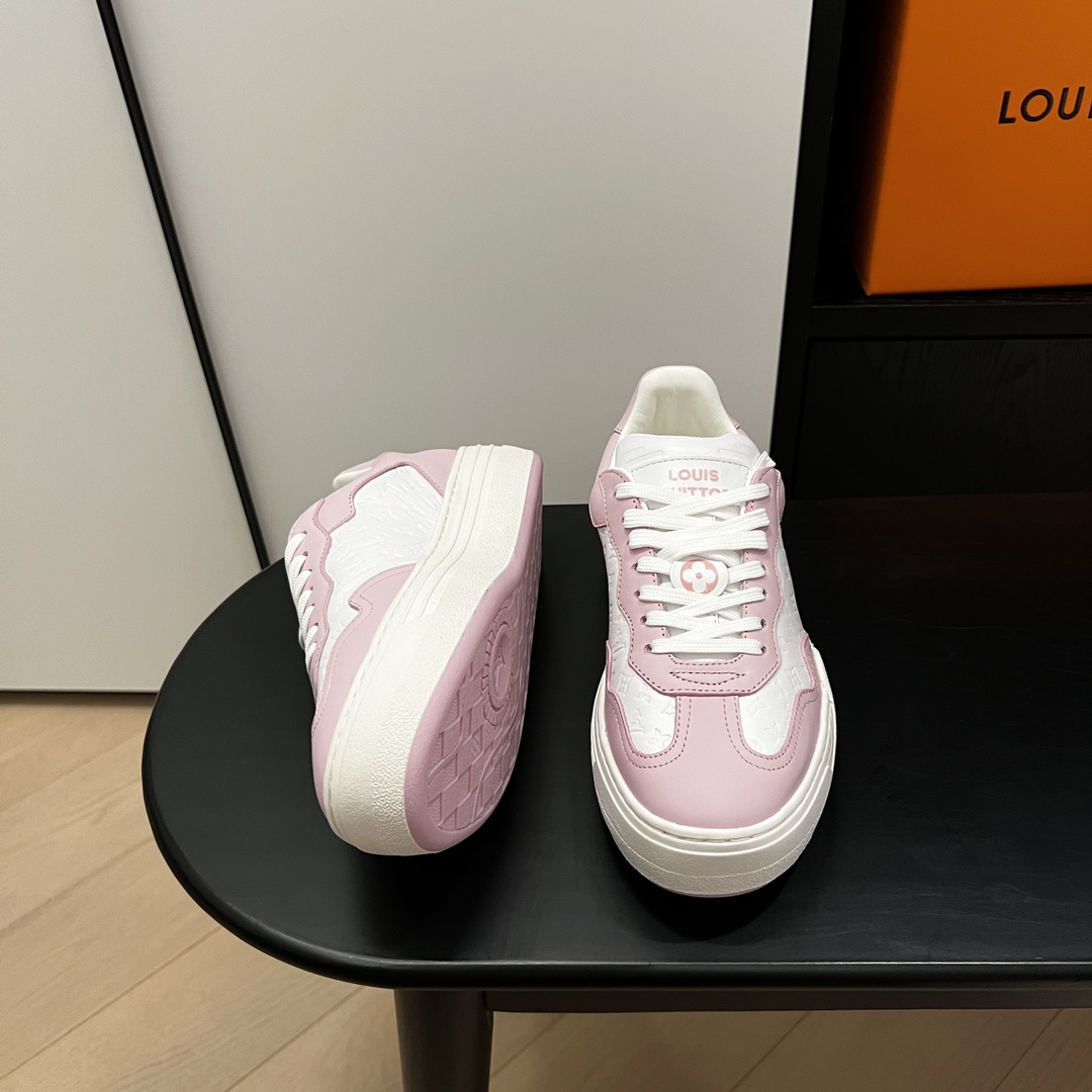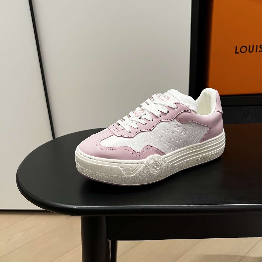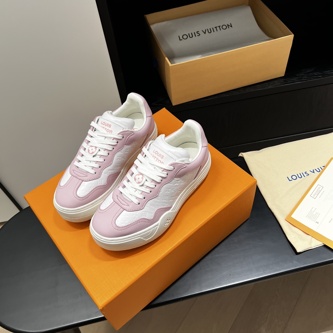 这款鞋子是AAAAA 1:1 质量 (非常棒). 使用了和原版一模一样的材料. 商标部分也保持了和路易威登/Louis Vuitton一样. 图片拍摄是实物鞋子拍摄, 您所收到的实物保证和我们图片一模一样.
