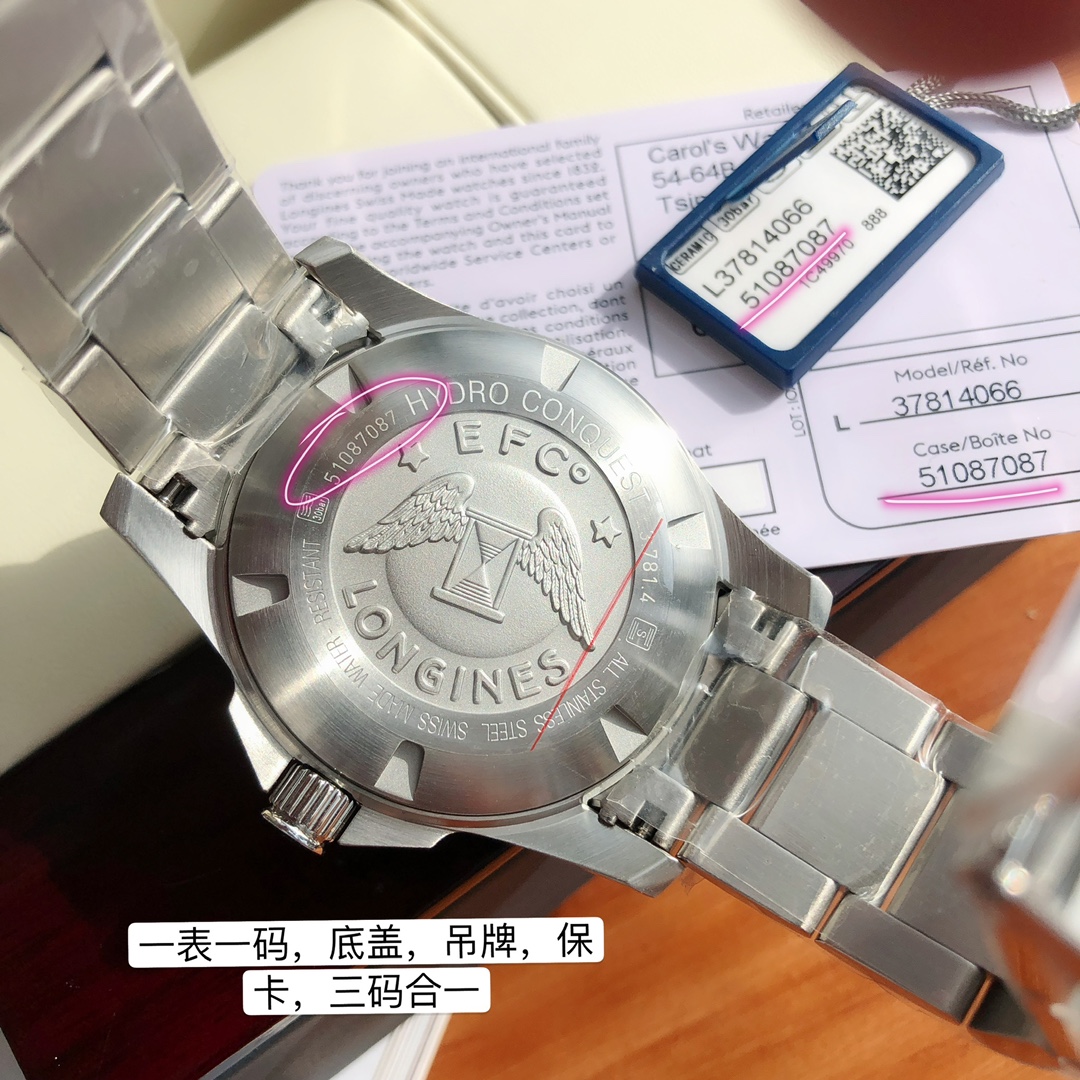 这款手表是AAAAA 1:1 质量 (非常棒). 使用了和原版一模一样的材料. 商标部分也保持了和浪琴/Longines一样. 图片拍摄是实物手表拍摄, 您所收到的实物保证和我们图片一模一样.