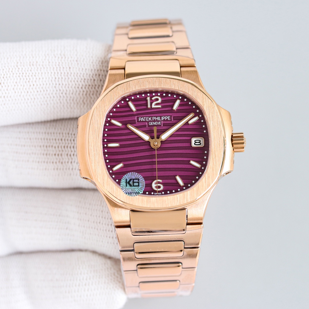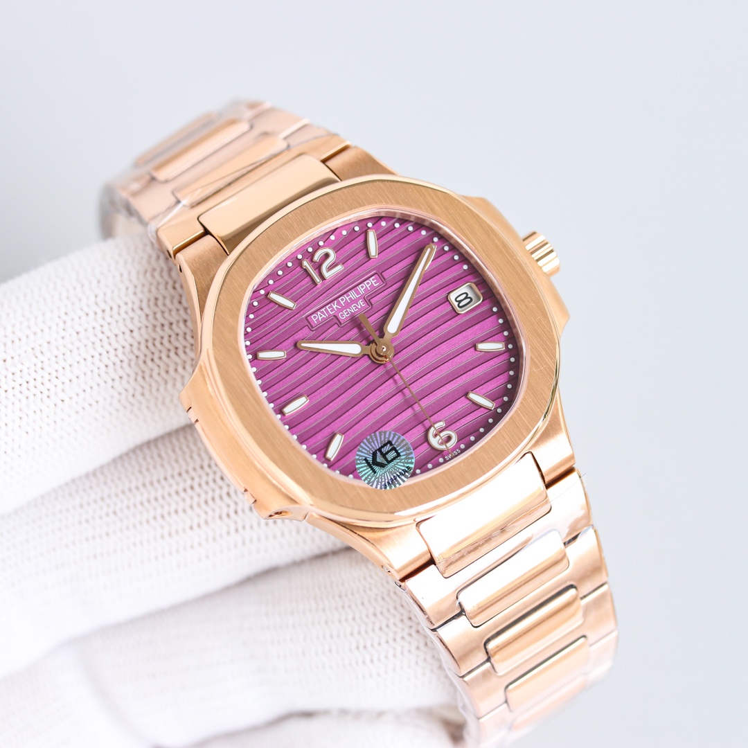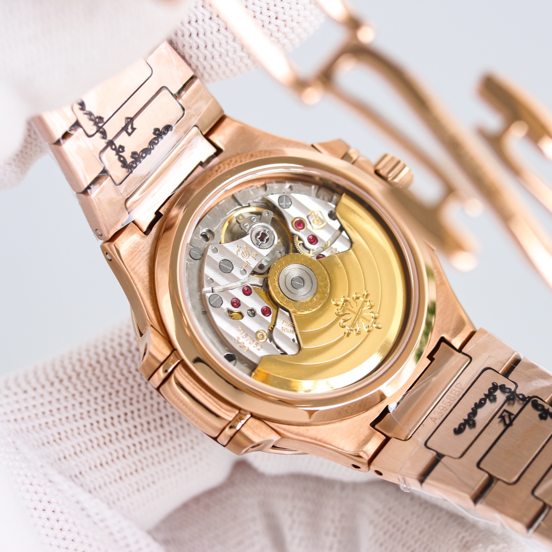 这款手表是AAAAA 1:1 质量 (非常棒). 使用了和原版一模一样的材料. 商标部分也保持了和百达翡丽/Patek Philippe一样. 图片拍摄是实物手表拍摄, 您所收到的实物保证和我们图片一模一样.