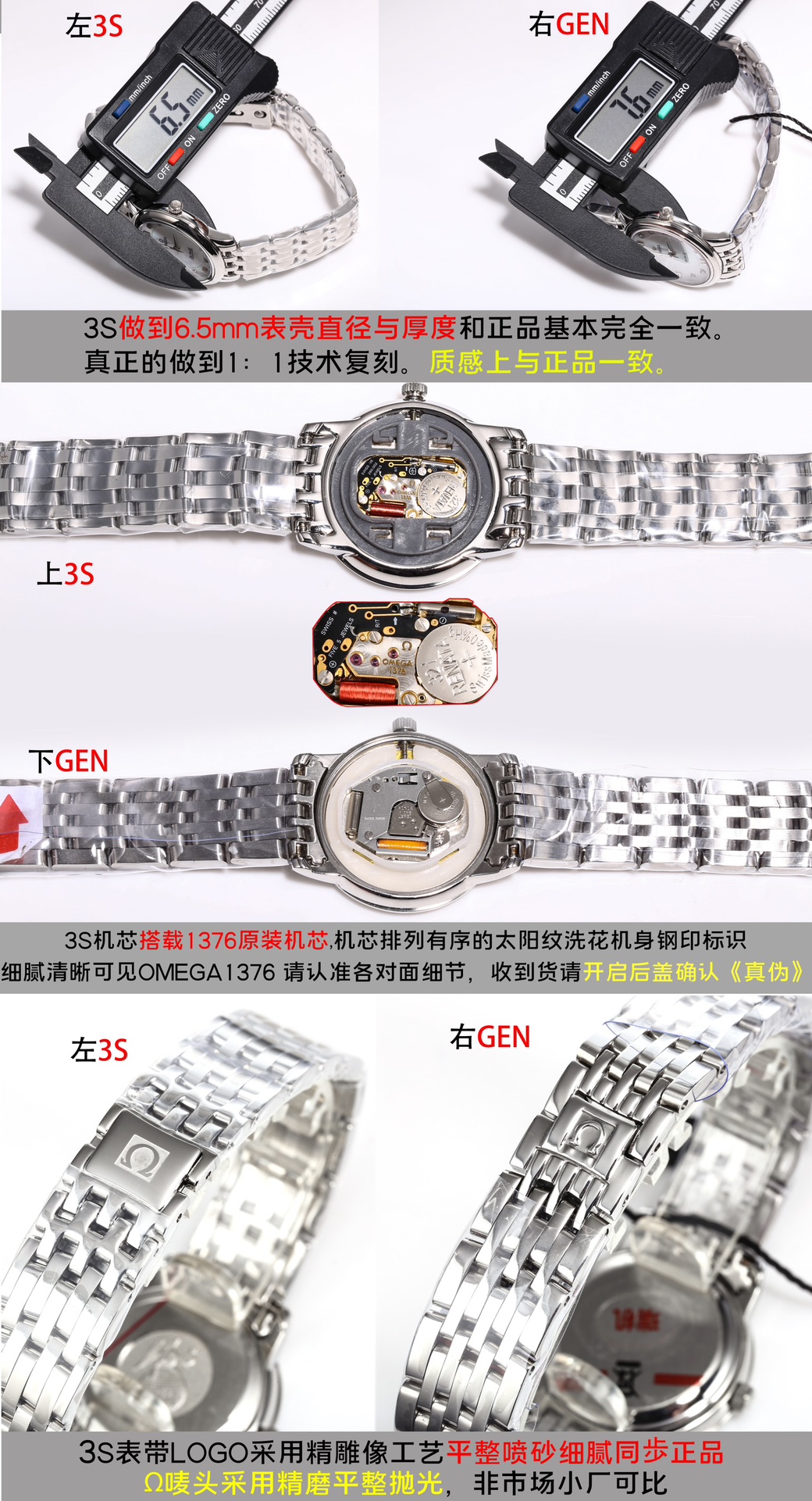 这款手表是AAAAA 1:1 质量 (非常棒). 使用了和原版一模一样的材料. 商标部分也保持了和欧米茄/Omega一样. 图片拍摄是实物手表拍摄, 您所收到的实物保证和我们图片一模一样.