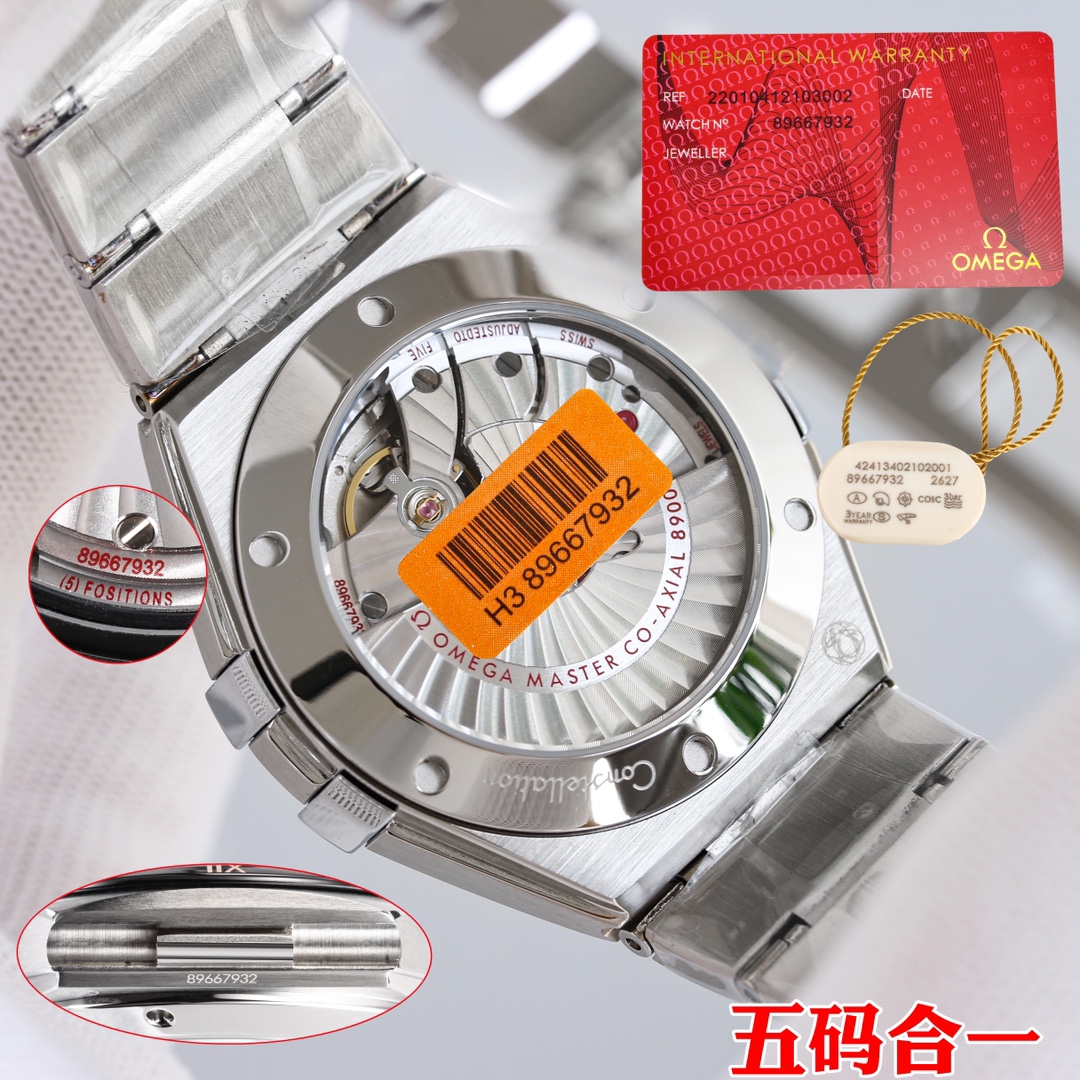 这款手表是AAAAA 1:1 质量 (非常棒). 使用了和原版一模一样的材料. 商标部分也保持了和欧米茄/Omega一样. 图片拍摄是实物手表拍摄, 您所收到的实物保证和我们图片一模一样.