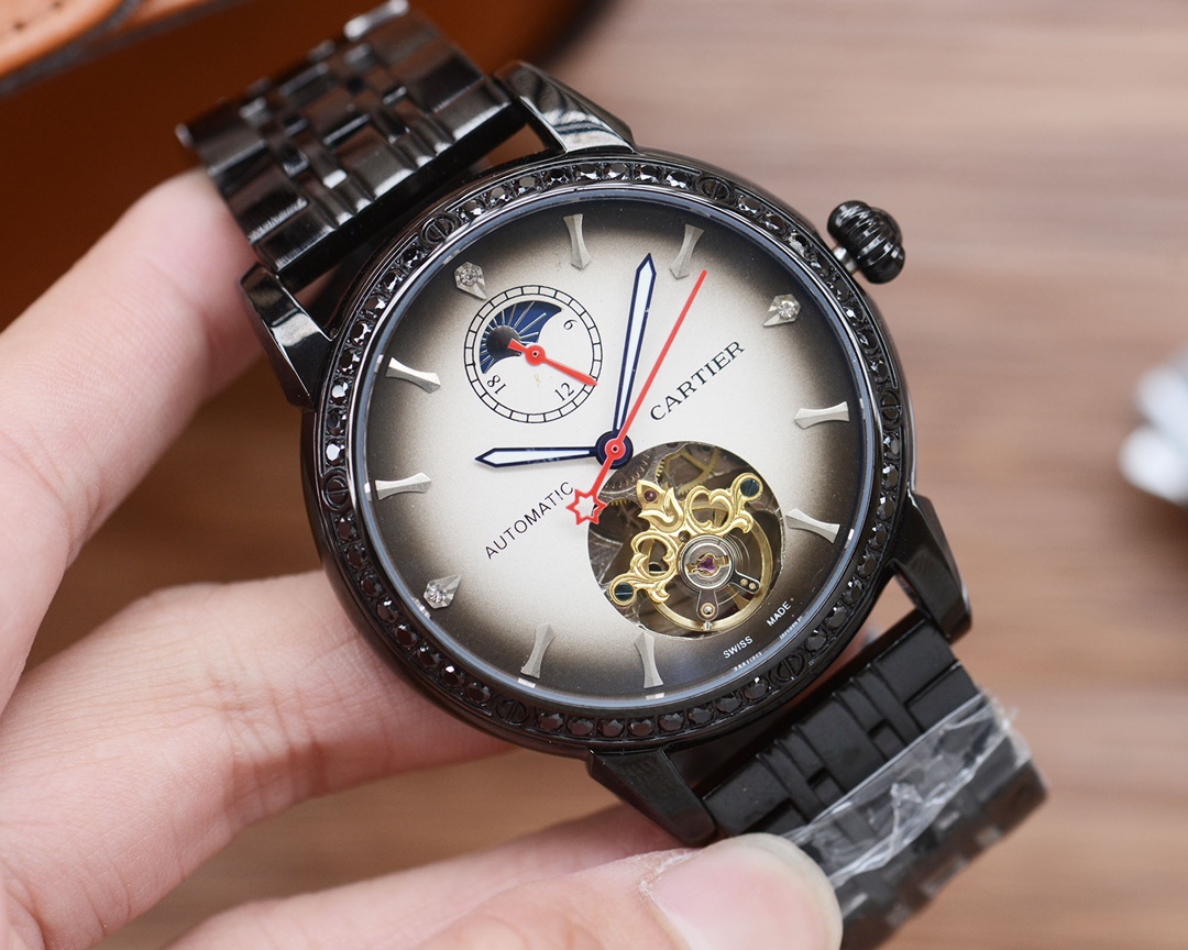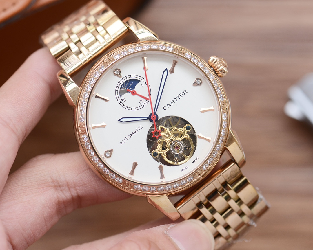 这款手表是AAAAA 1:1 质量 (非常棒). 使用了和原版一模一样的材料. 商标部分也保持了和卡地亚/Cartier一样. 图片拍摄是实物手表拍摄, 您所收到的实物保证和我们图片一模一样.