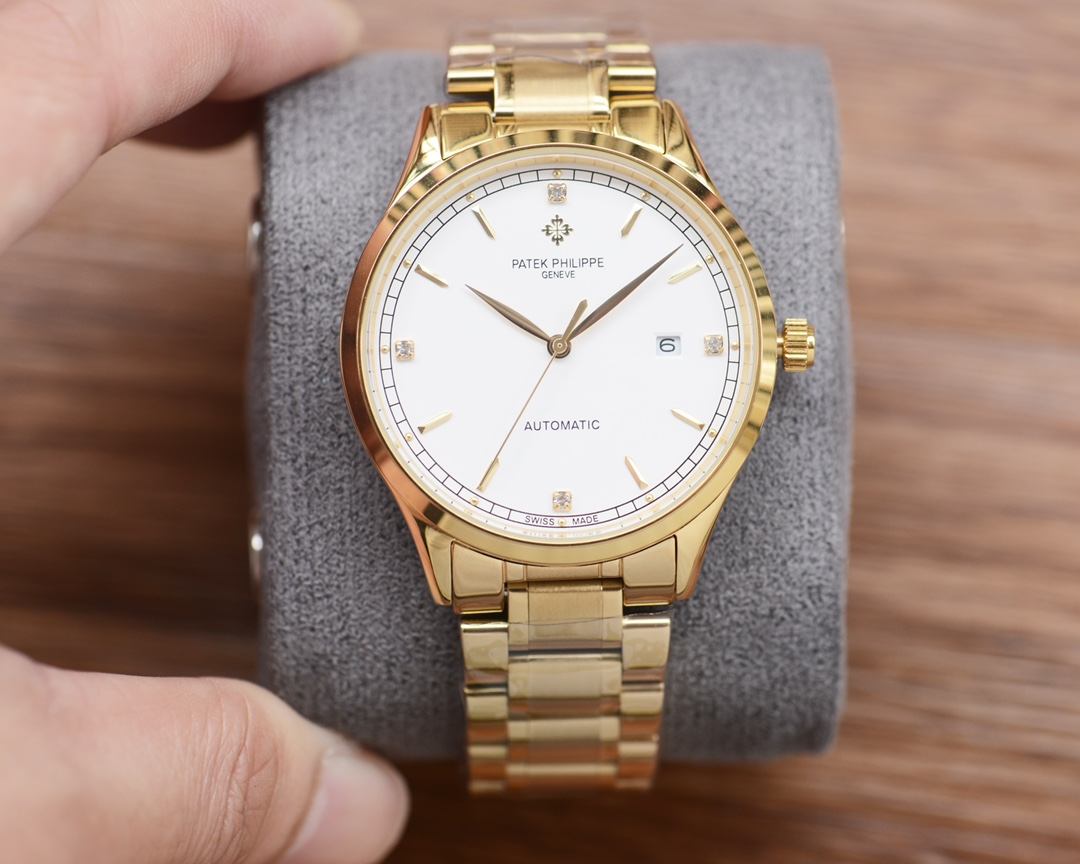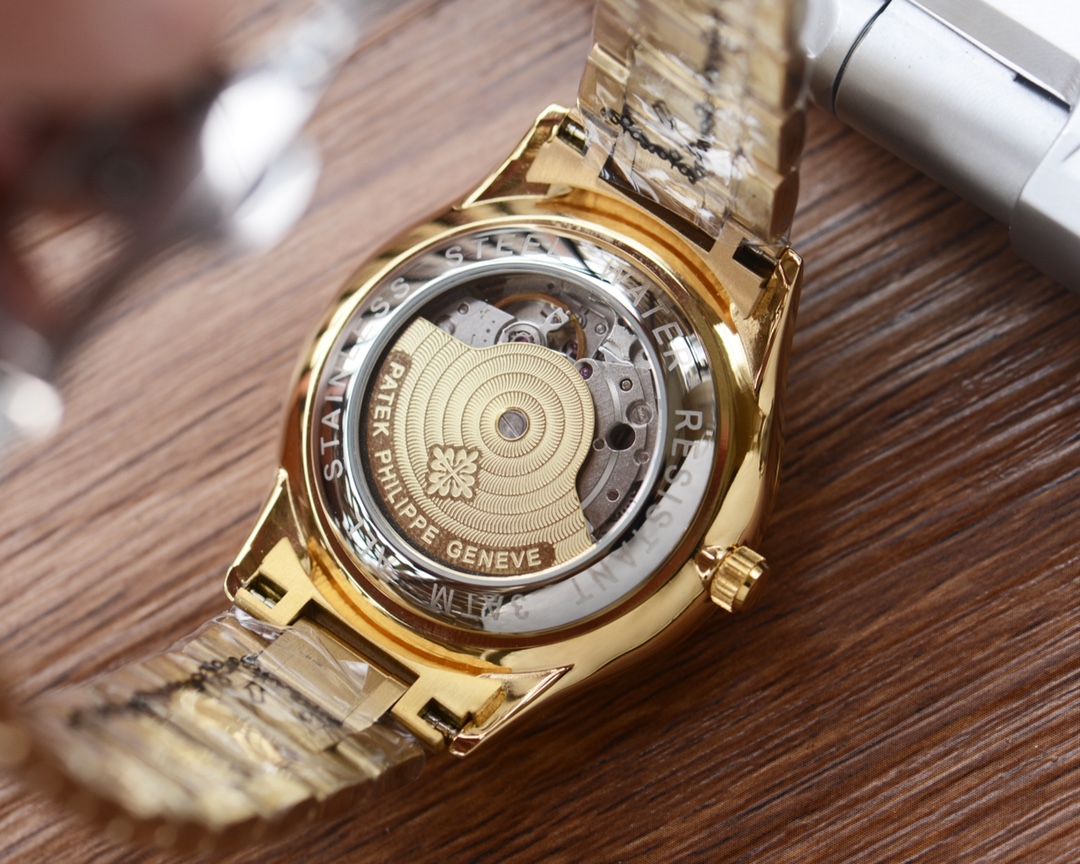 这款手表是AAAAA 1:1 质量 (非常棒). 使用了和原版一模一样的材料. 商标部分也保持了和百达翡丽/Patek Philippe一样. 图片拍摄是实物手表拍摄, 您所收到的实物保证和我们图片一模一样.
