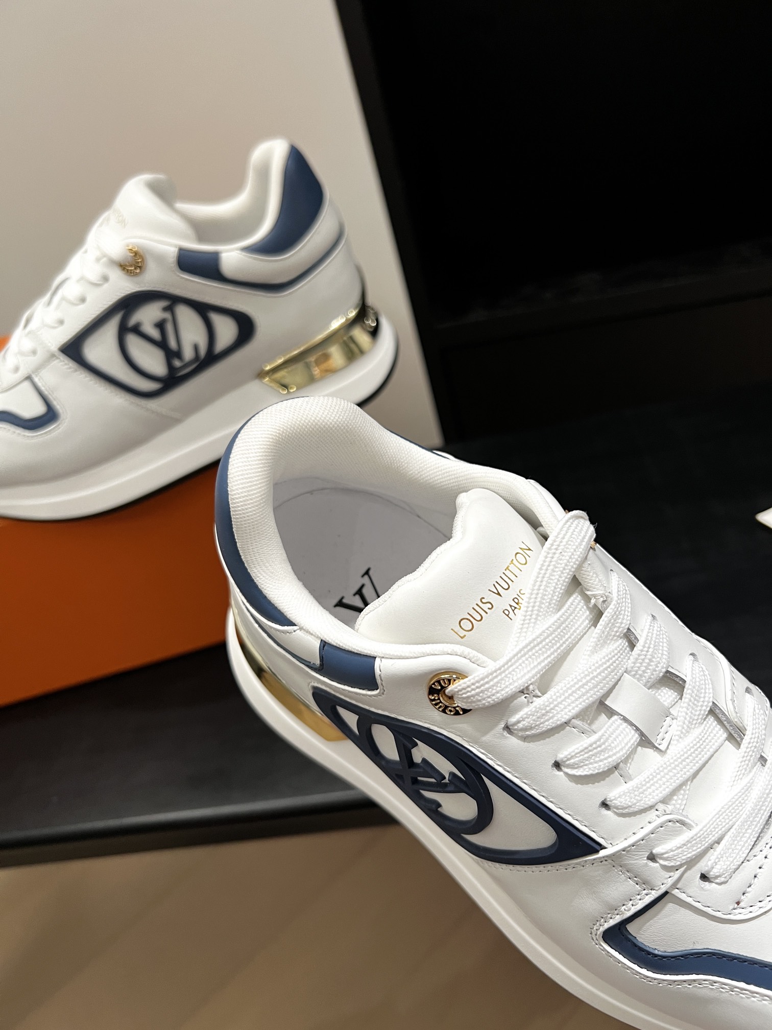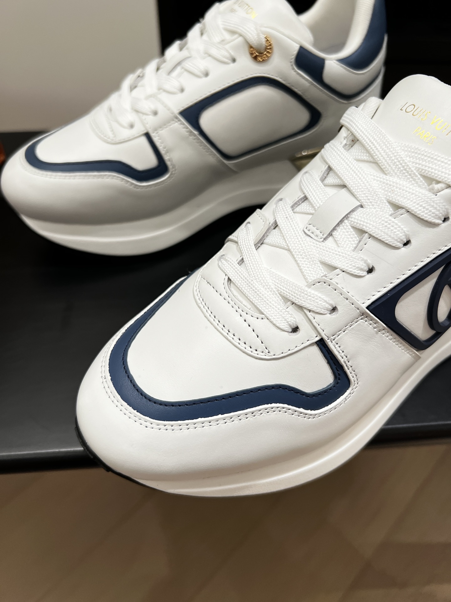 这款鞋子是AAAAA 1:1 质量 (非常棒). 使用了和原版一模一样的材料. 商标部分也保持了和路易威登/Louis Vuitton一样. 图片拍摄是实物鞋子拍摄, 您所收到的实物保证和我们图片一模一样.