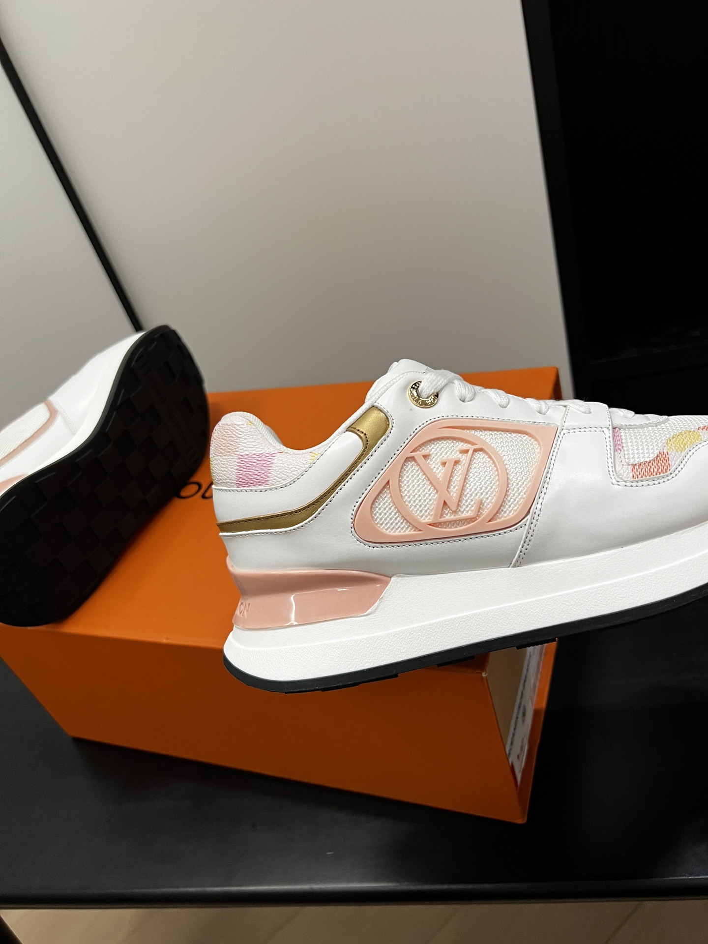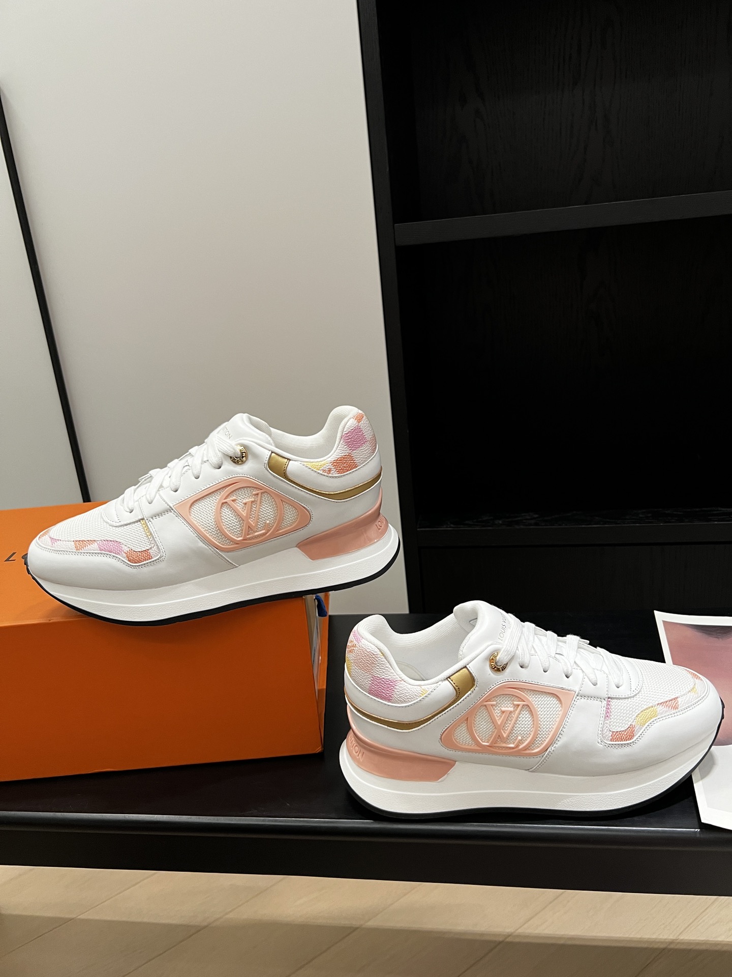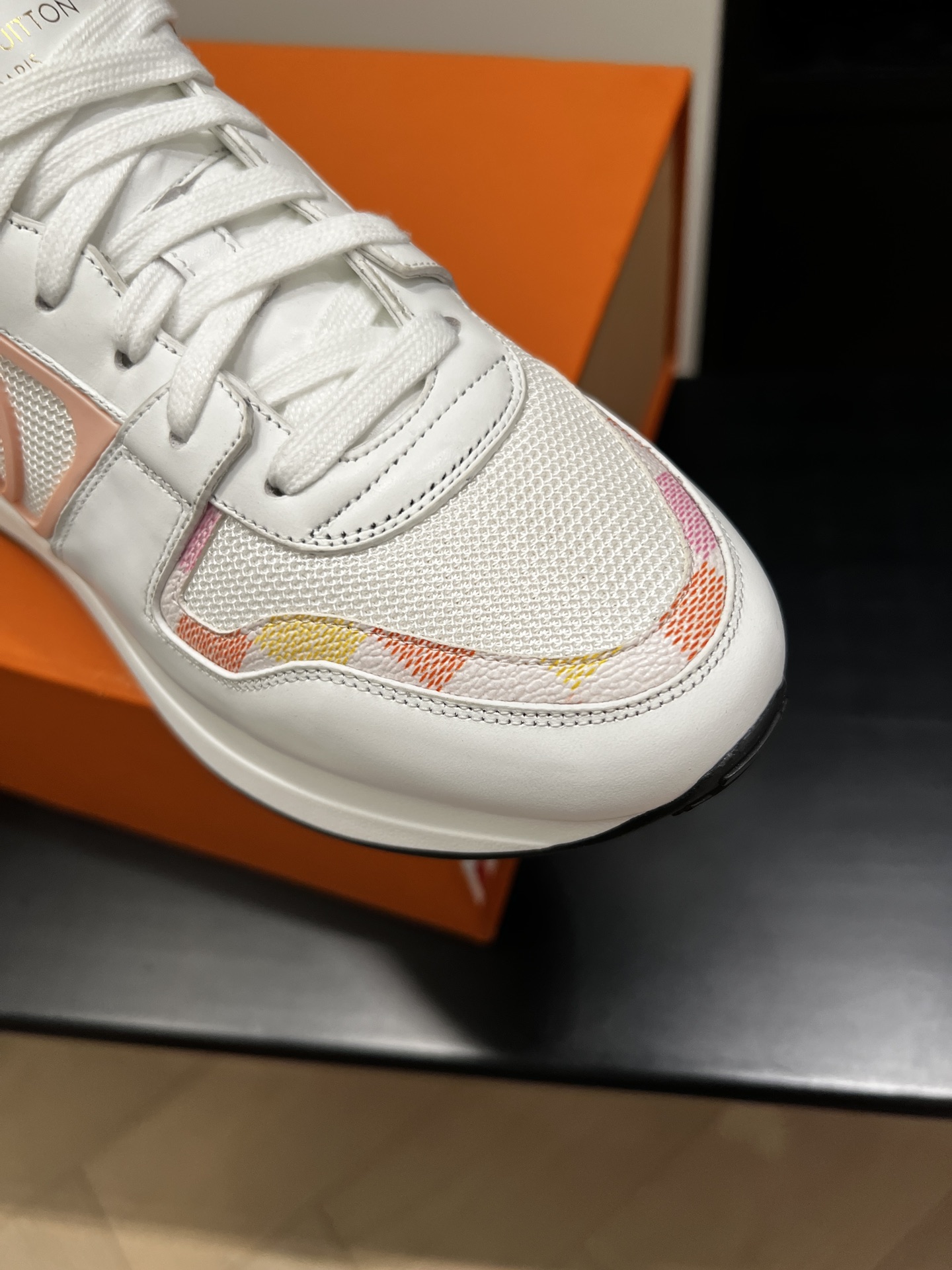 这款鞋子是AAAAA 1:1 质量 (非常棒). 使用了和原版一模一样的材料. 商标部分也保持了和路易威登/Louis Vuitton一样. 图片拍摄是实物鞋子拍摄, 您所收到的实物保证和我们图片一模一样.