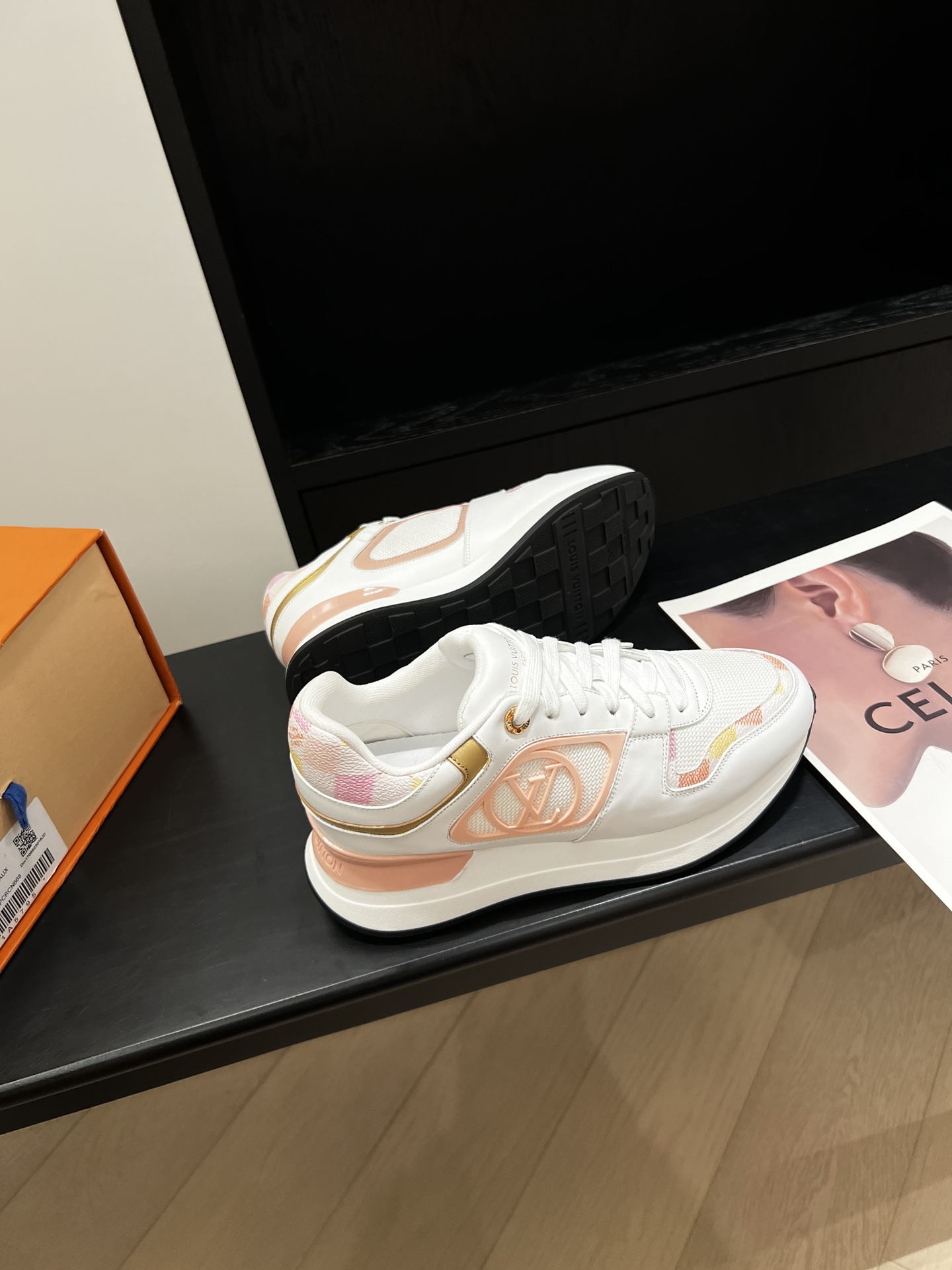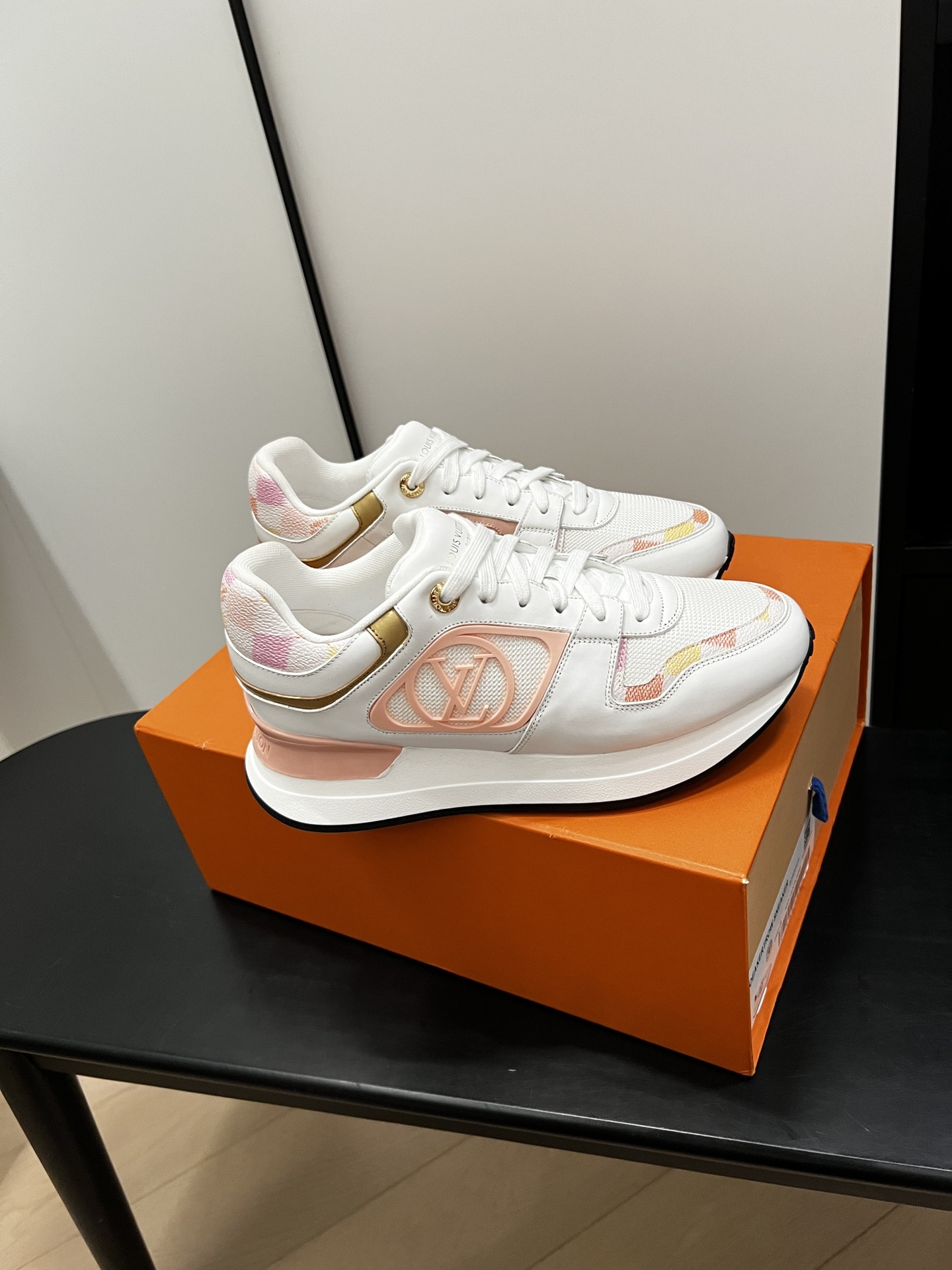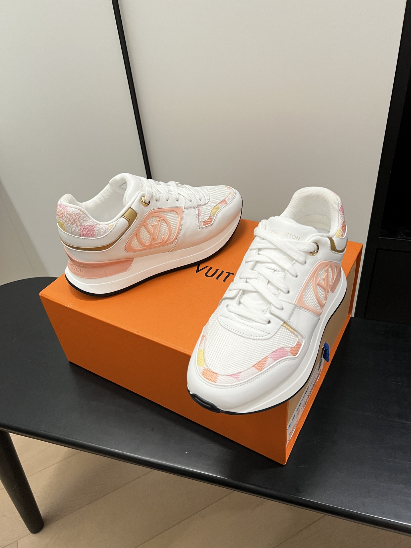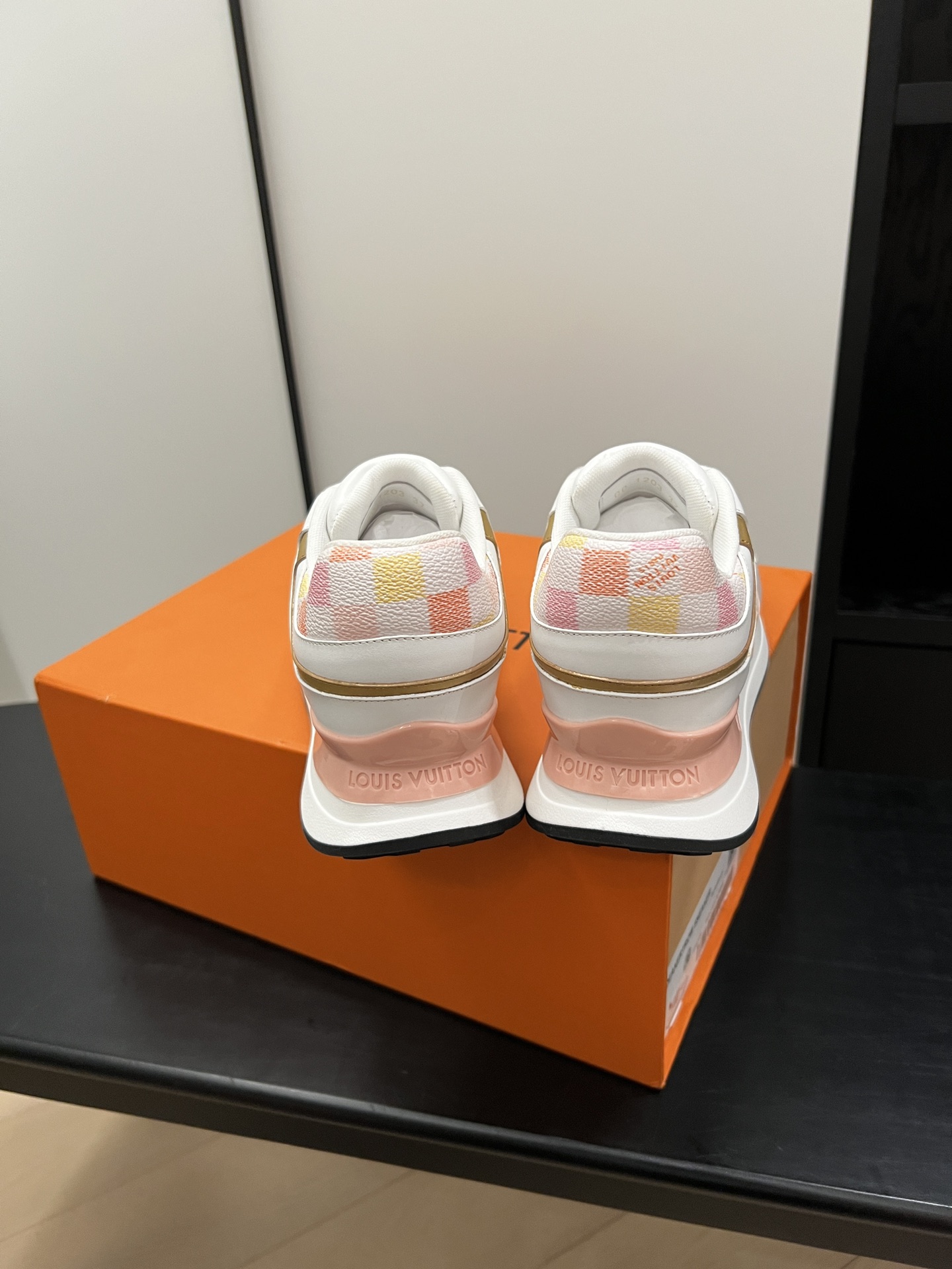 这款鞋子是AAAAA 1:1 质量 (非常棒). 使用了和原版一模一样的材料. 商标部分也保持了和路易威登/Louis Vuitton一样. 图片拍摄是实物鞋子拍摄, 您所收到的实物保证和我们图片一模一样.