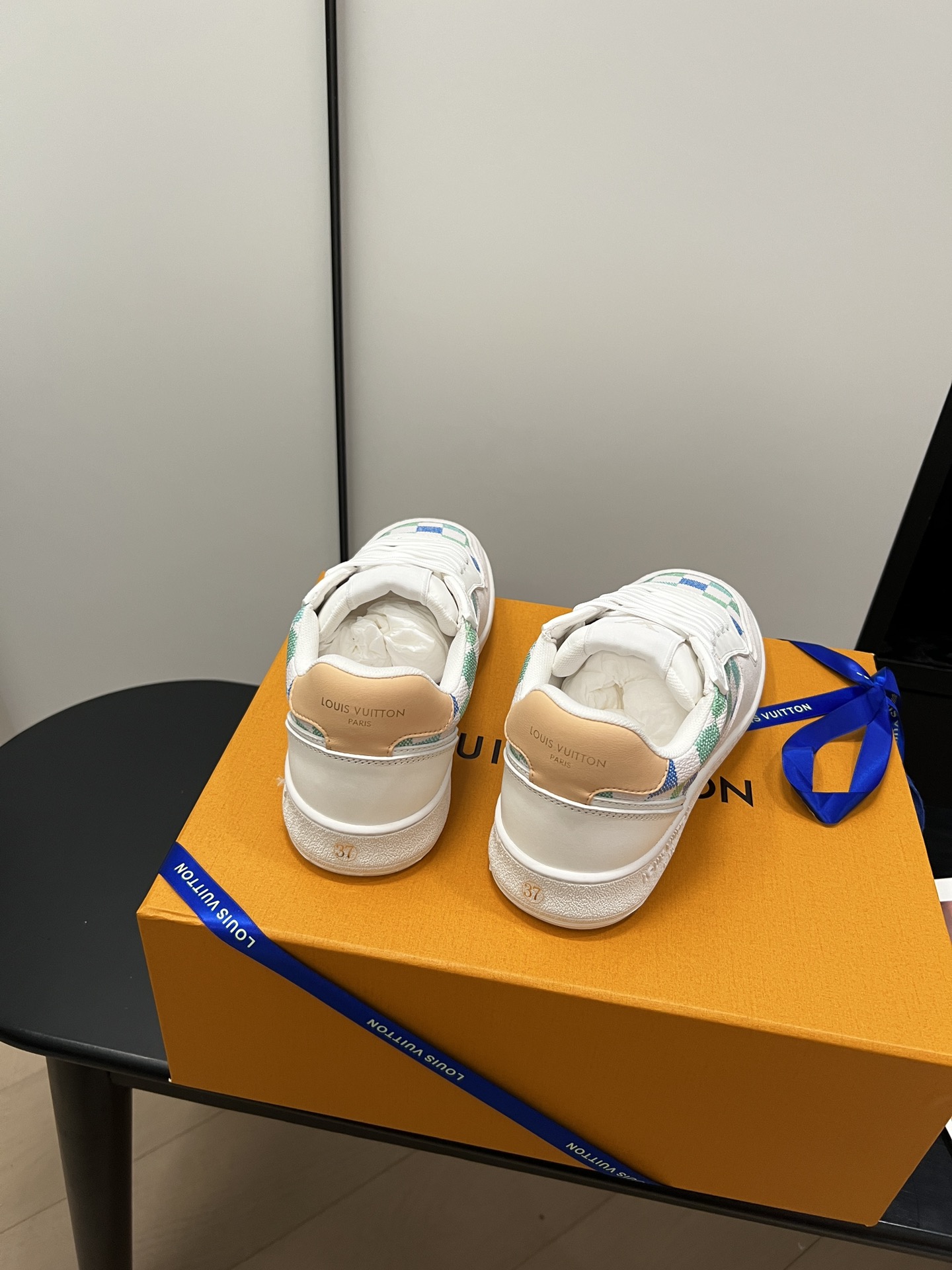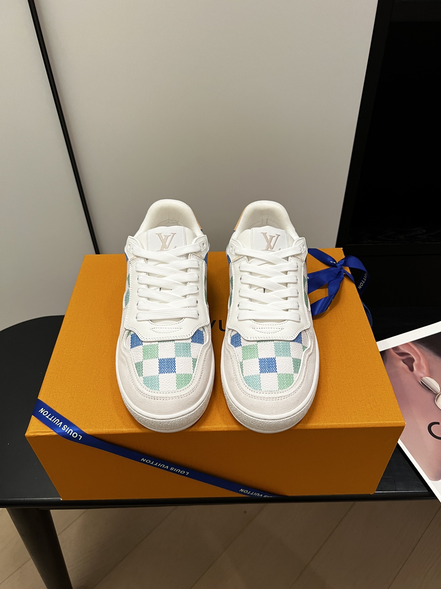 这款鞋子是AAAAA 1:1 质量 (非常棒). 使用了和原版一模一样的材料. 商标部分也保持了和路易威登/Louis Vuitton一样. 图片拍摄是实物鞋子拍摄, 您所收到的实物保证和我们图片一模一样.