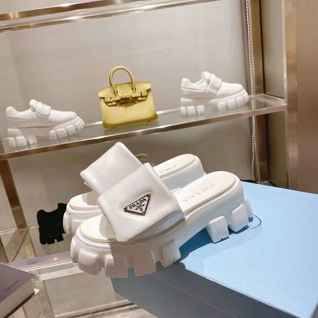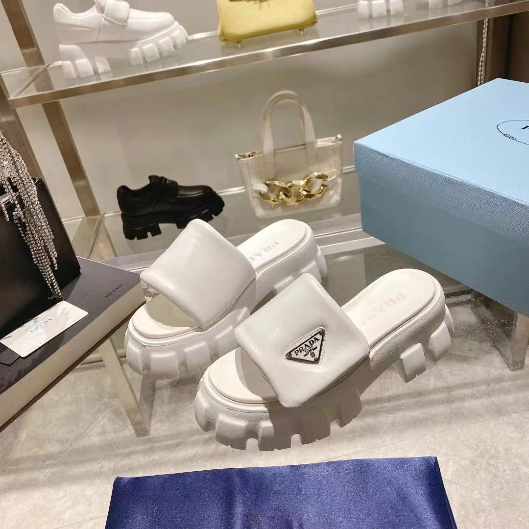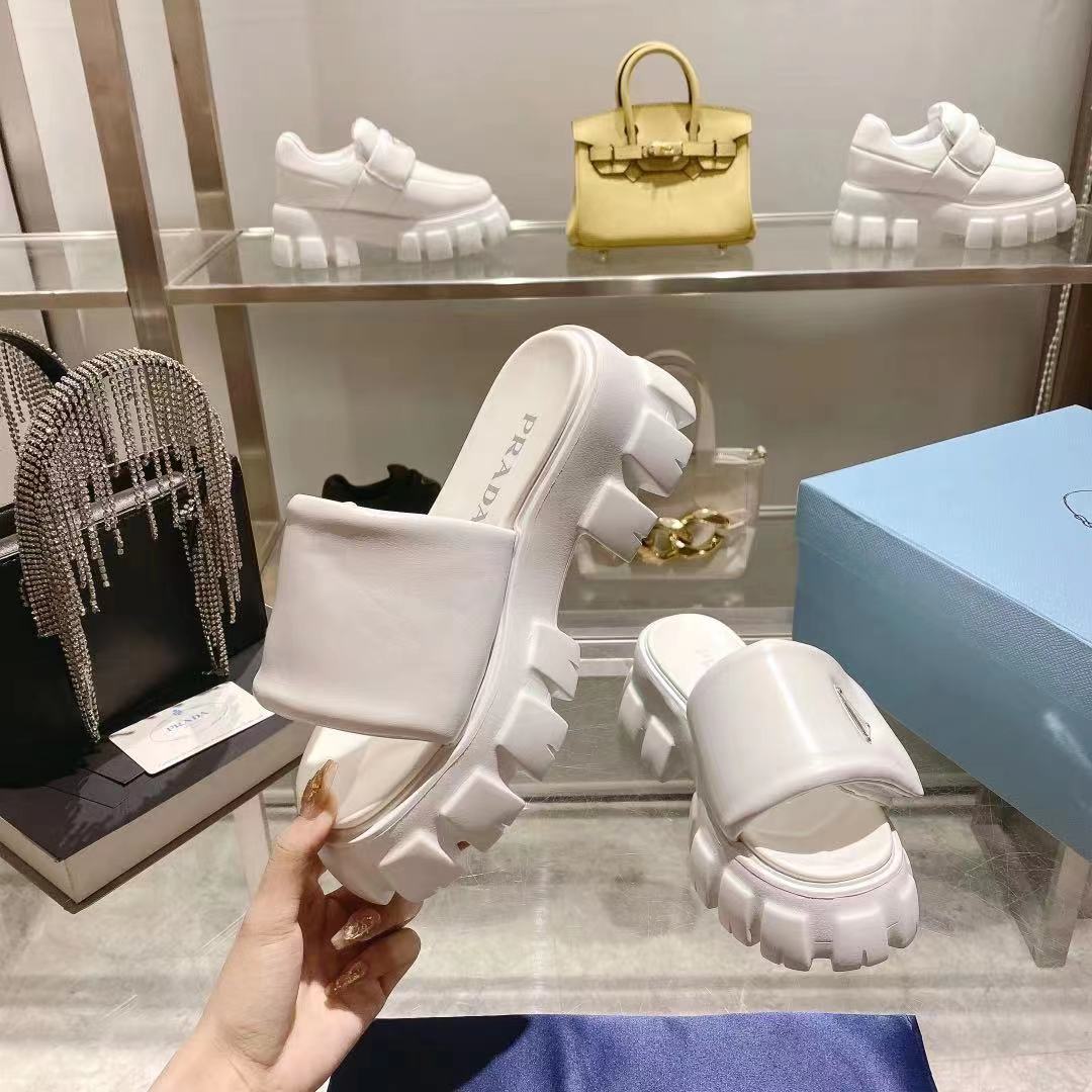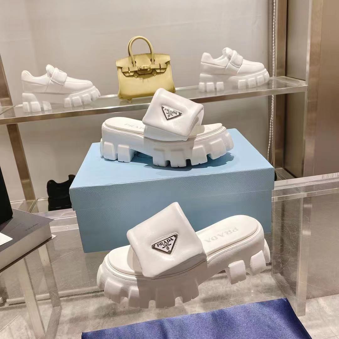 这款鞋子是AAAAA 1:1 质量 (非常棒). 使用了和原版一模一样的材料. 商标部分也保持了和普拉达/Prada一样. 图片拍摄是实物鞋子拍摄, 您所收到的实物保证和我们图片一模一样.