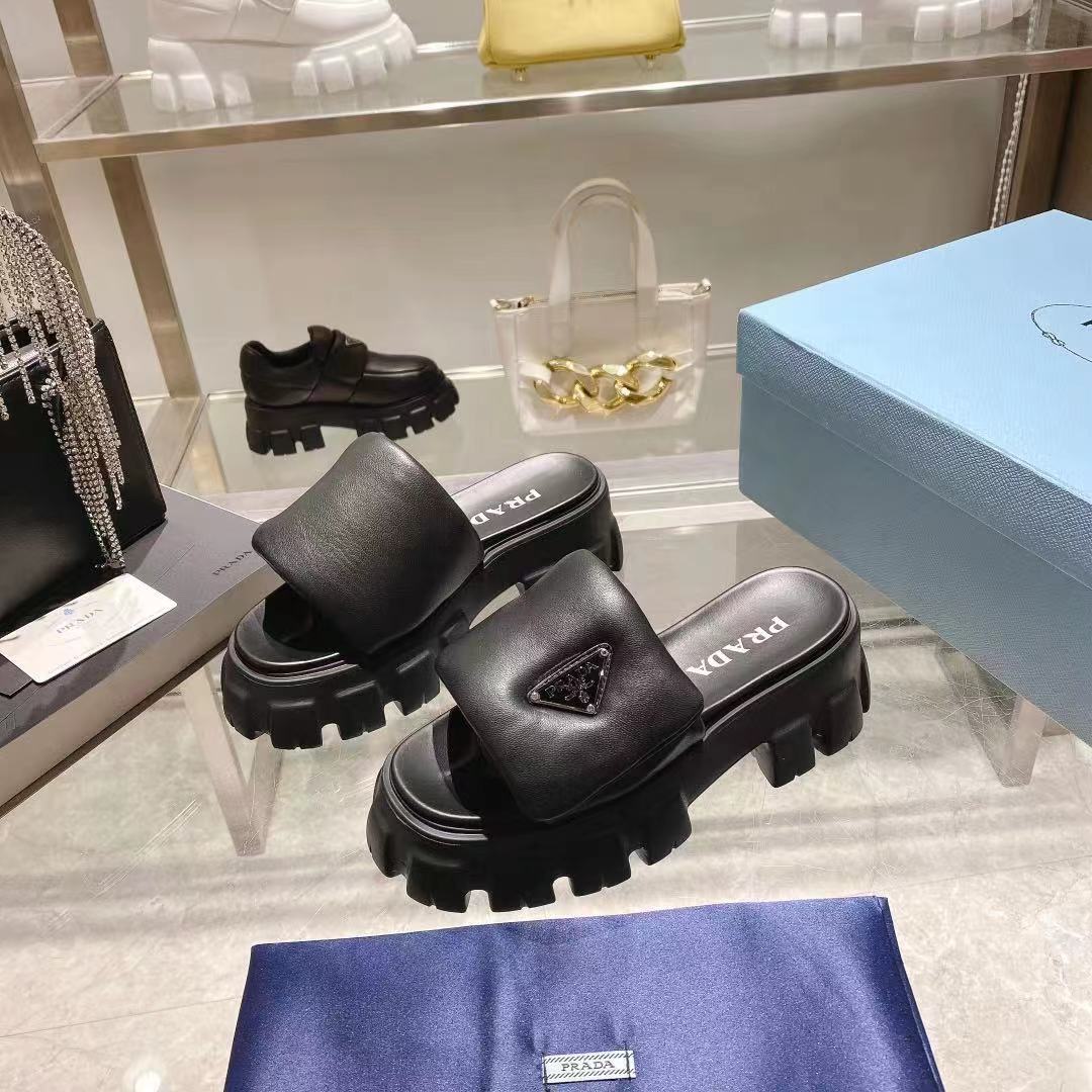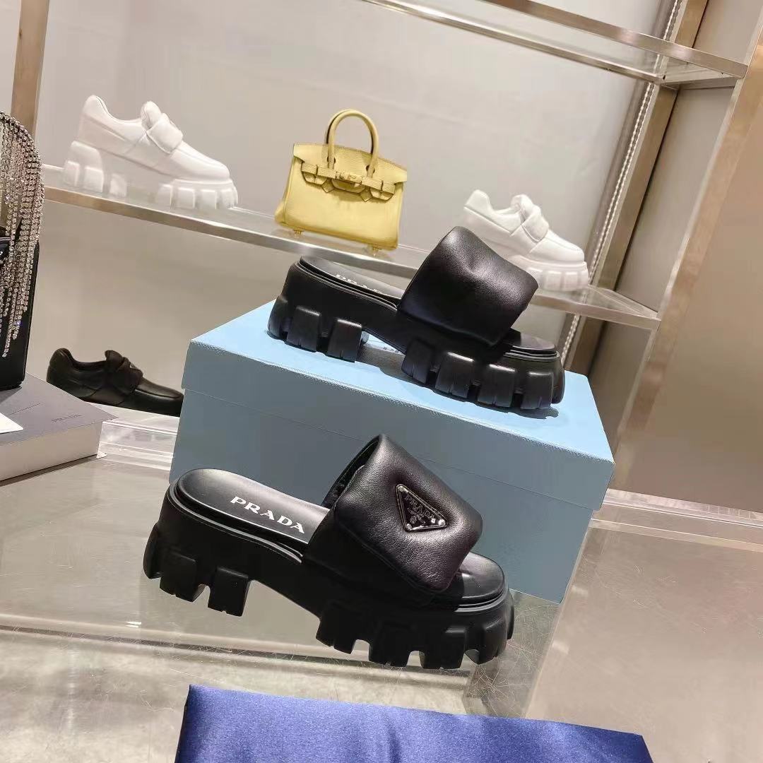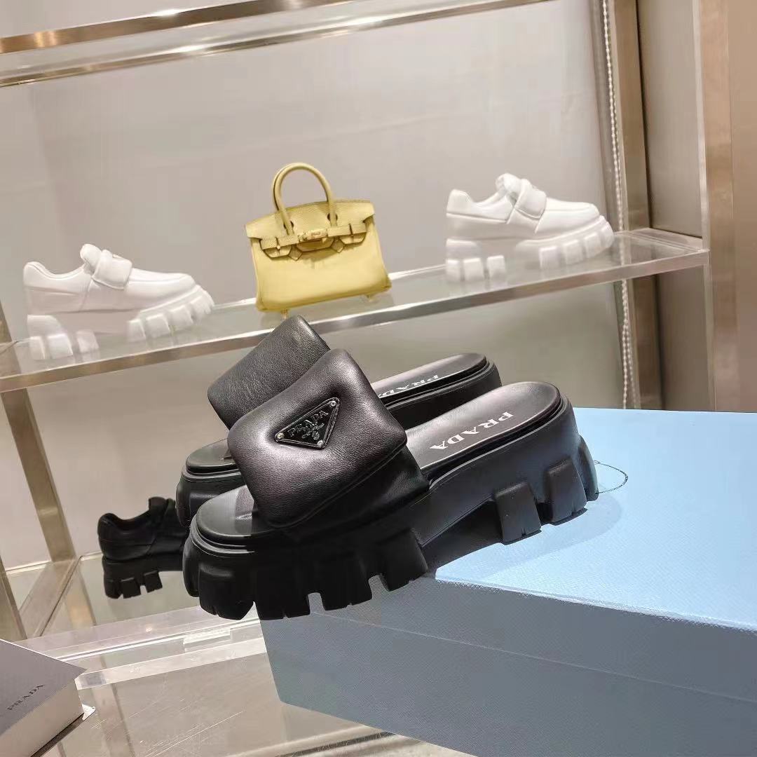 这款鞋子是AAAAA 1:1 质量 (非常棒). 使用了和原版一模一样的材料. 商标部分也保持了和普拉达/Prada一样. 图片拍摄是实物鞋子拍摄, 您所收到的实物保证和我们图片一模一样.