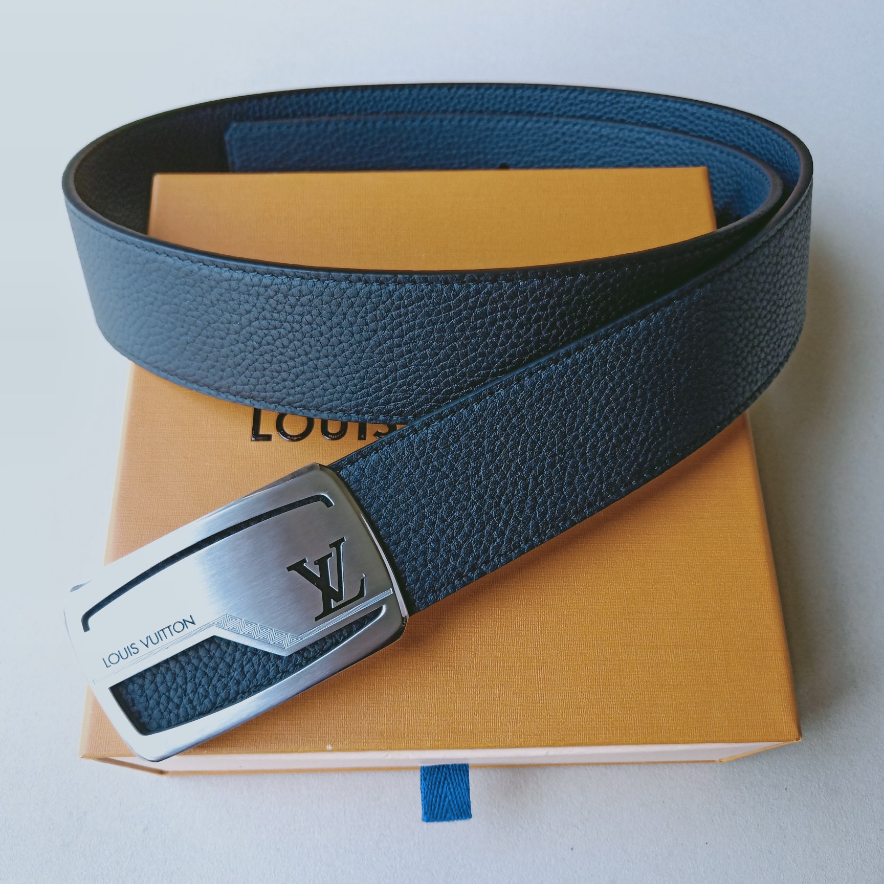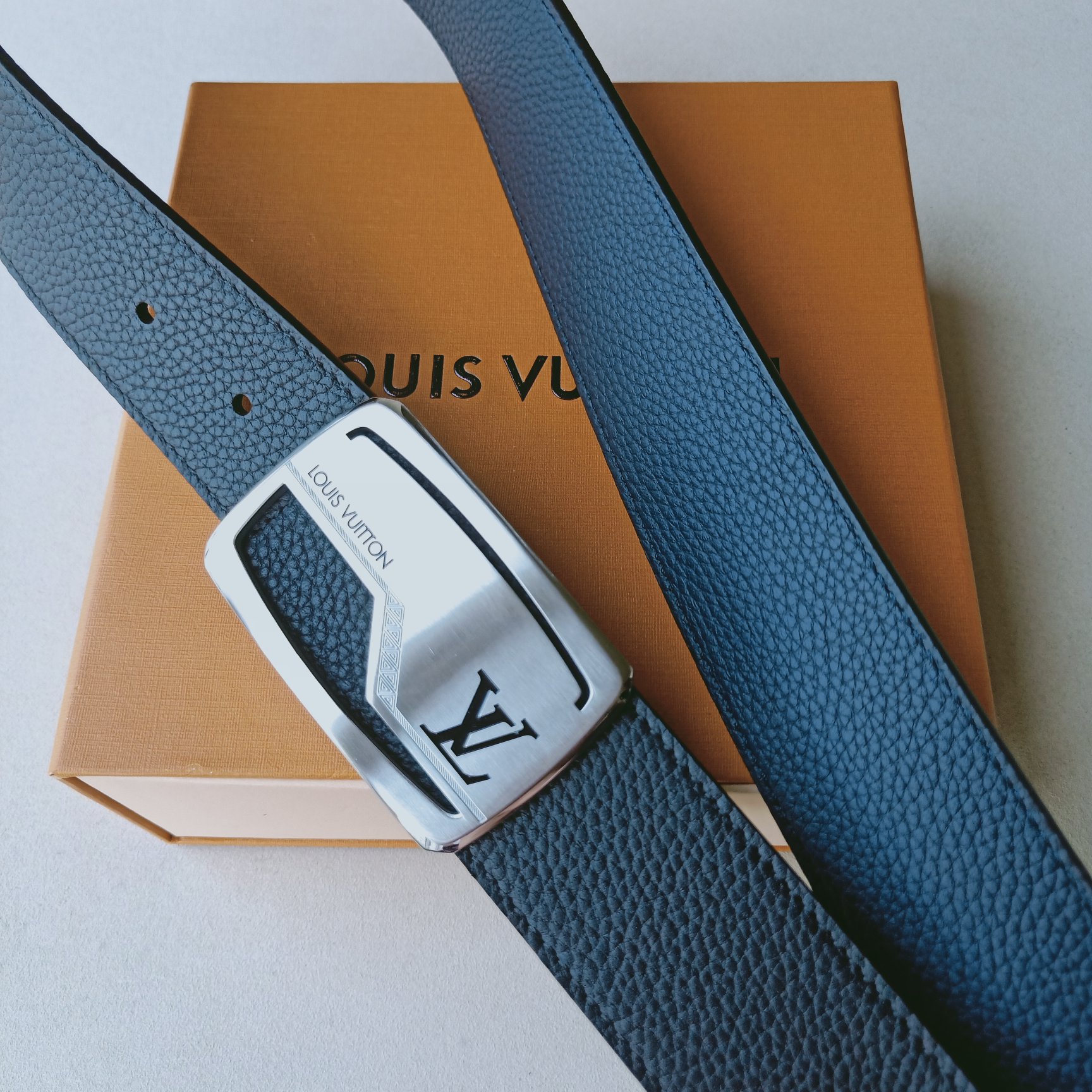 这款皮带是AAAAA 1:1 质量 (非常棒). 使用了和原版一模一样的材料. 商标部分也保持了和路易威登/Louis Vuitton一样. 图片拍摄是实物皮带拍摄, 您所收到的实物保证和我们图片一模一样.