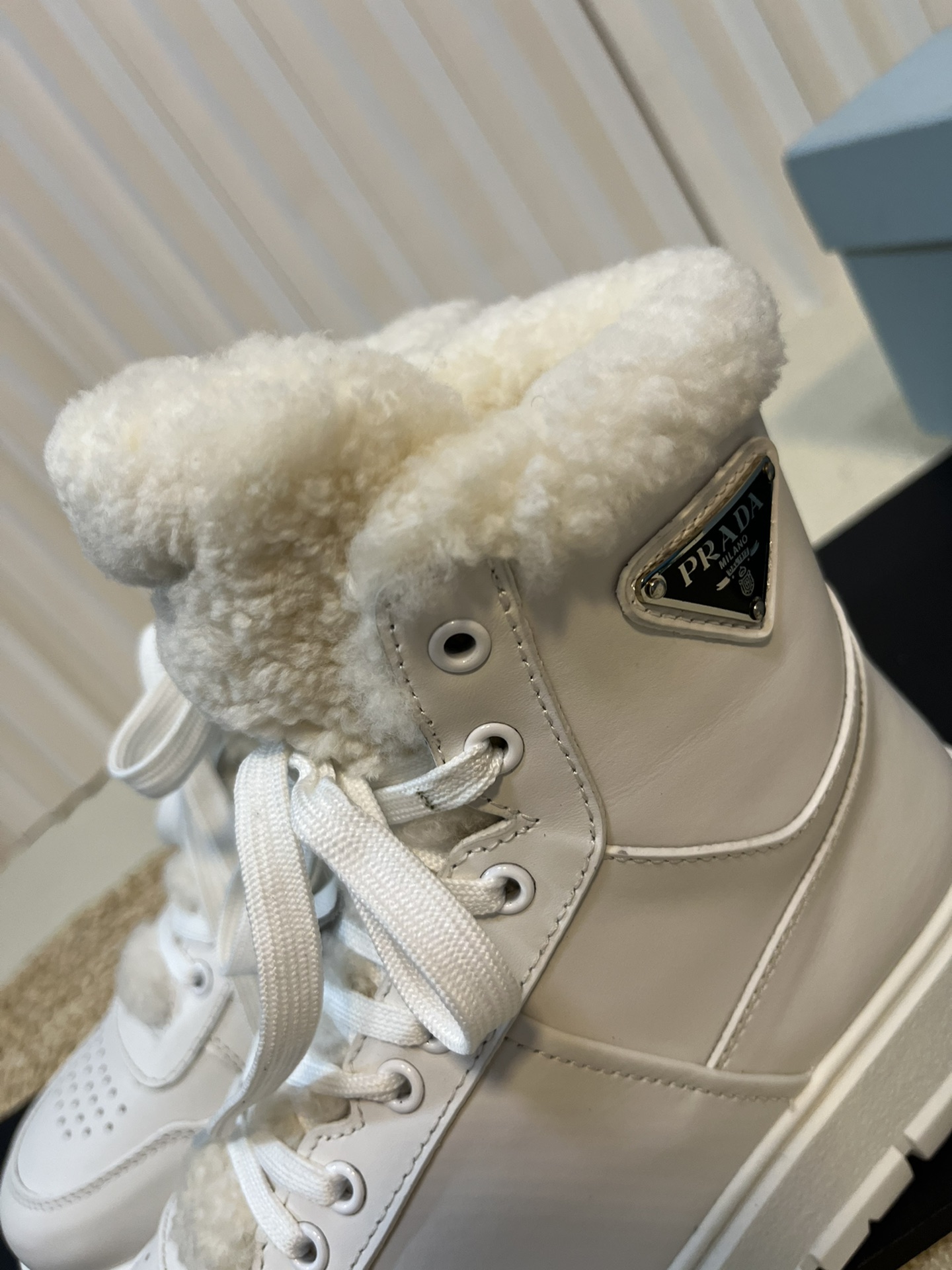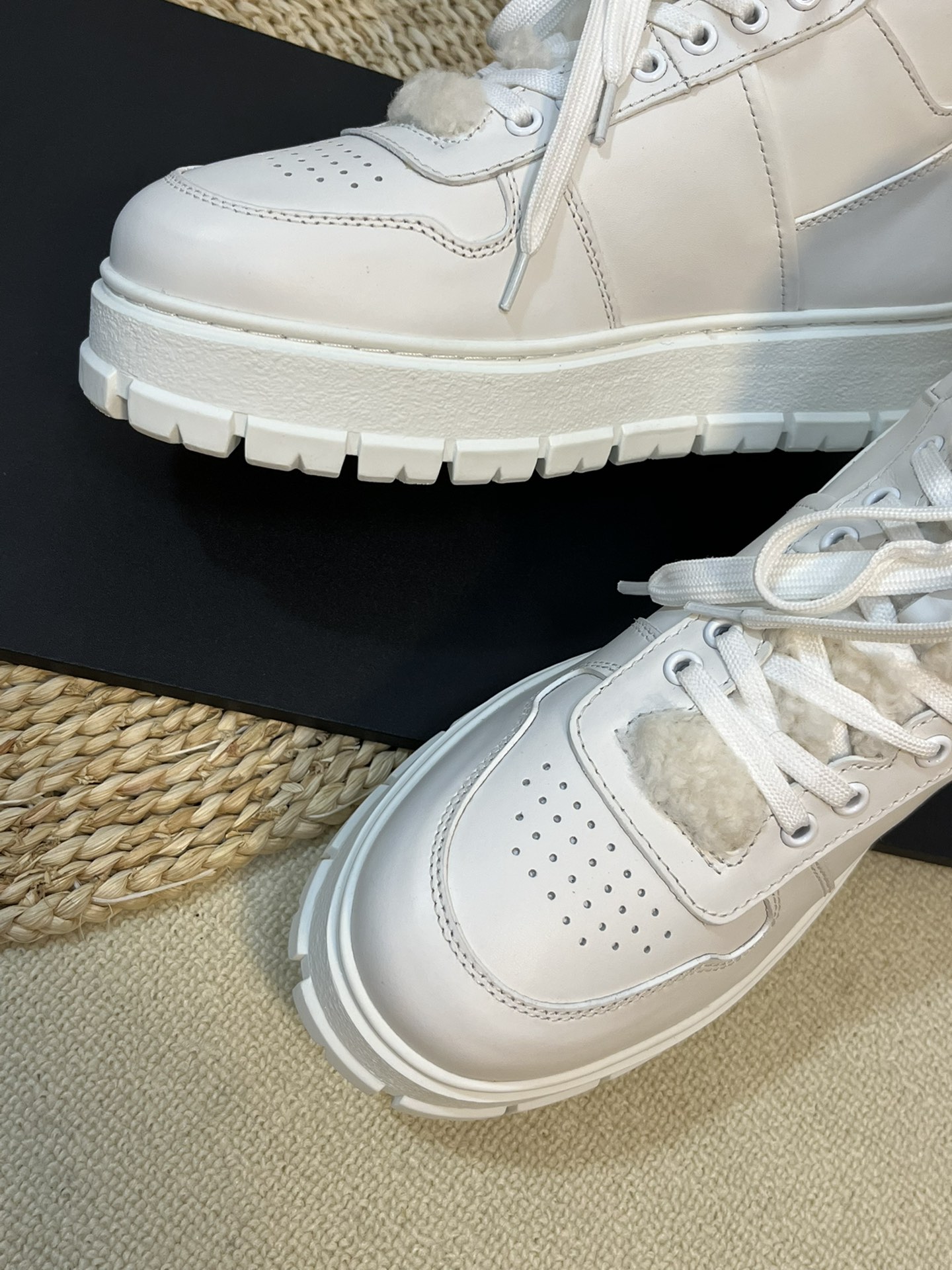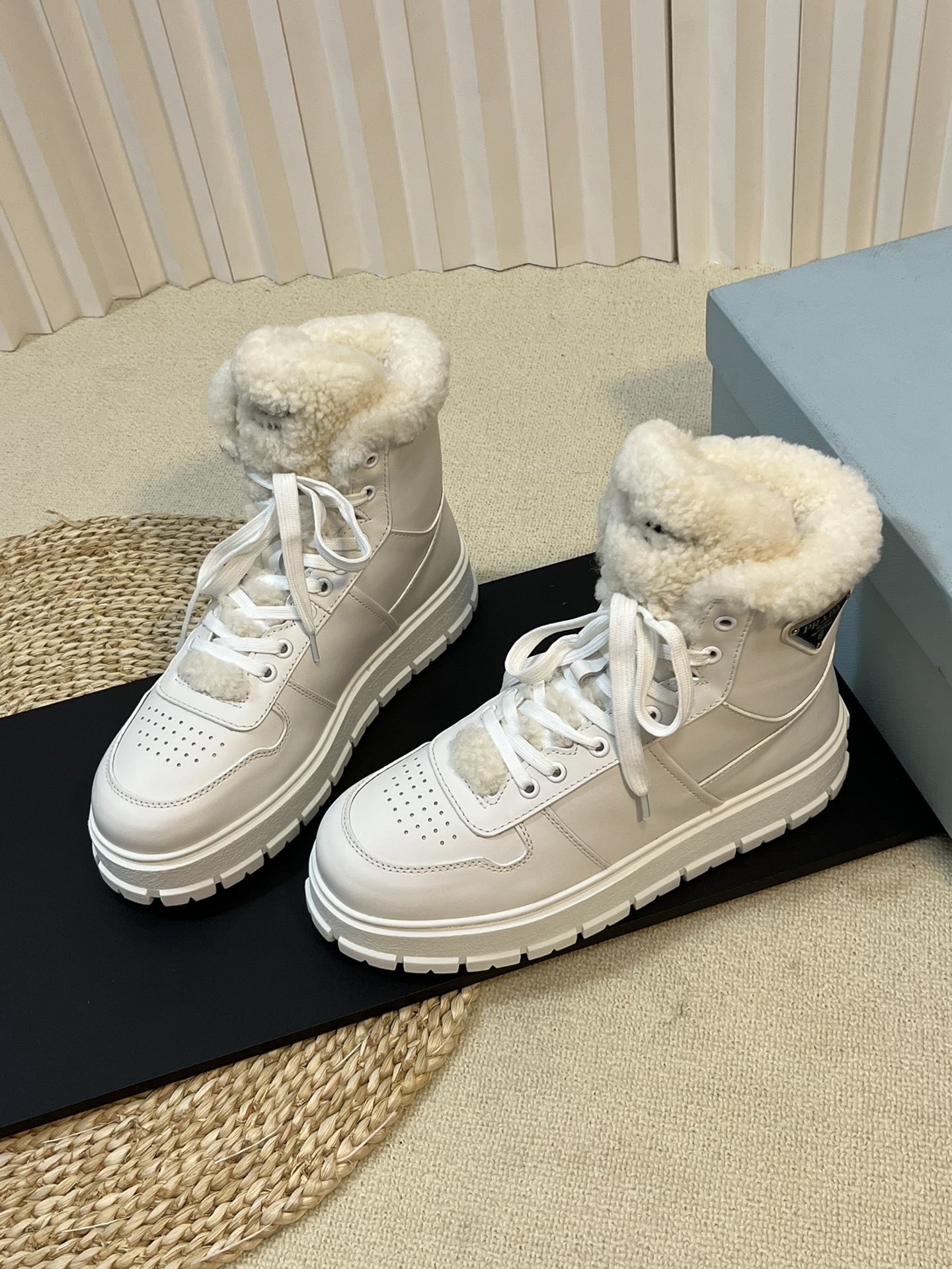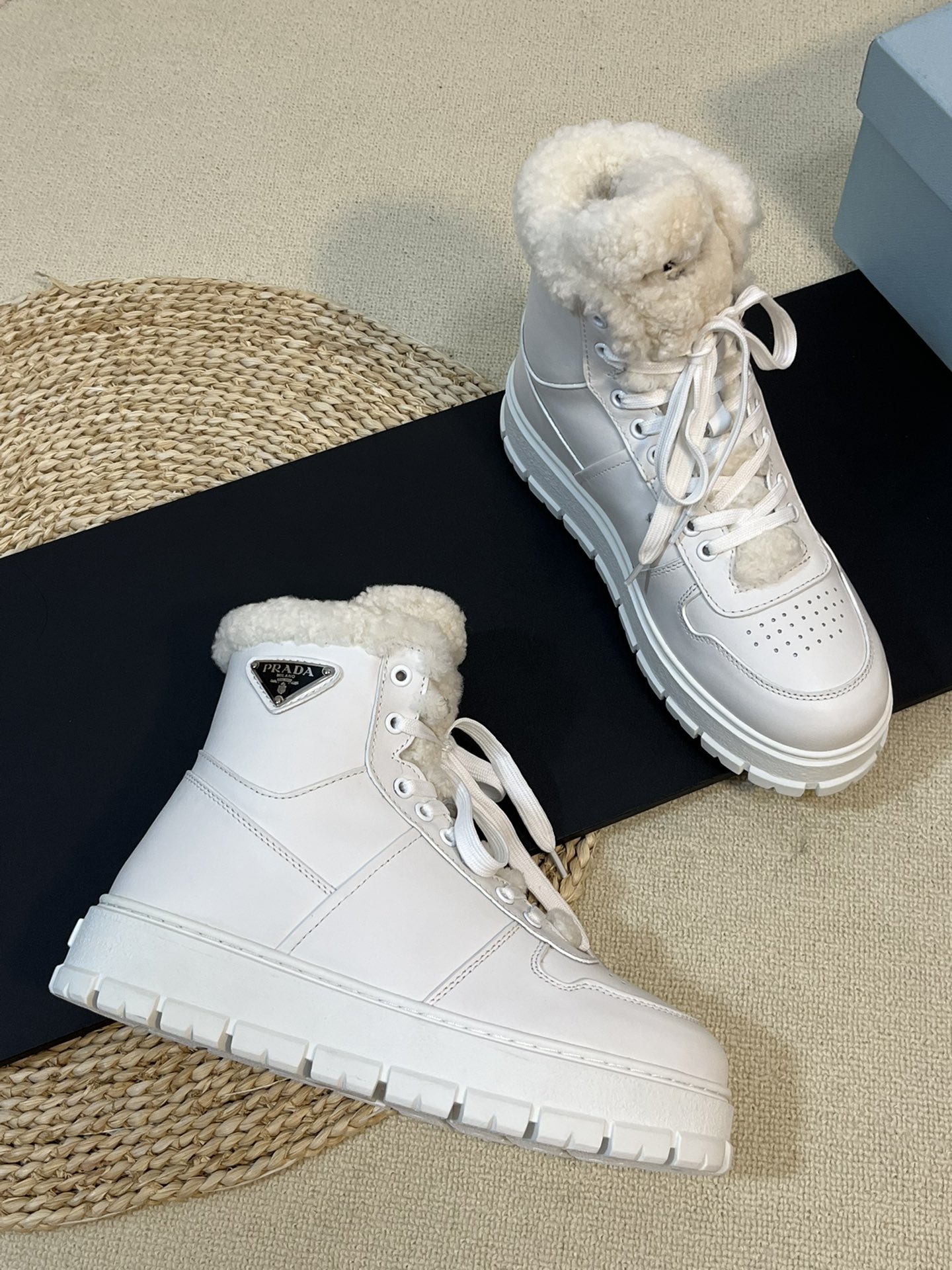 这款鞋子是AAAAA 1:1 质量 (非常棒). 使用了和原版一模一样的材料. 商标部分也保持了和普拉达/Prada一样. 图片拍摄是实物鞋子拍摄, 您所收到的实物保证和我们图片一模一样.