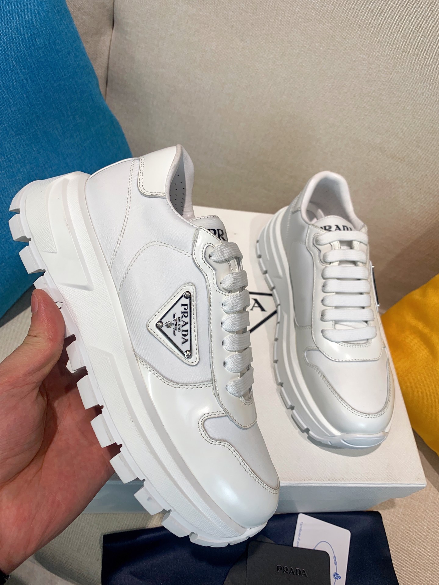 这款鞋子是AAAAA 1:1 质量 (非常棒). 使用了和原版一模一样的材料. 商标部分也保持了和普拉达/Prada一样. 图片拍摄是实物鞋子拍摄, 您所收到的实物保证和我们图片一模一样.