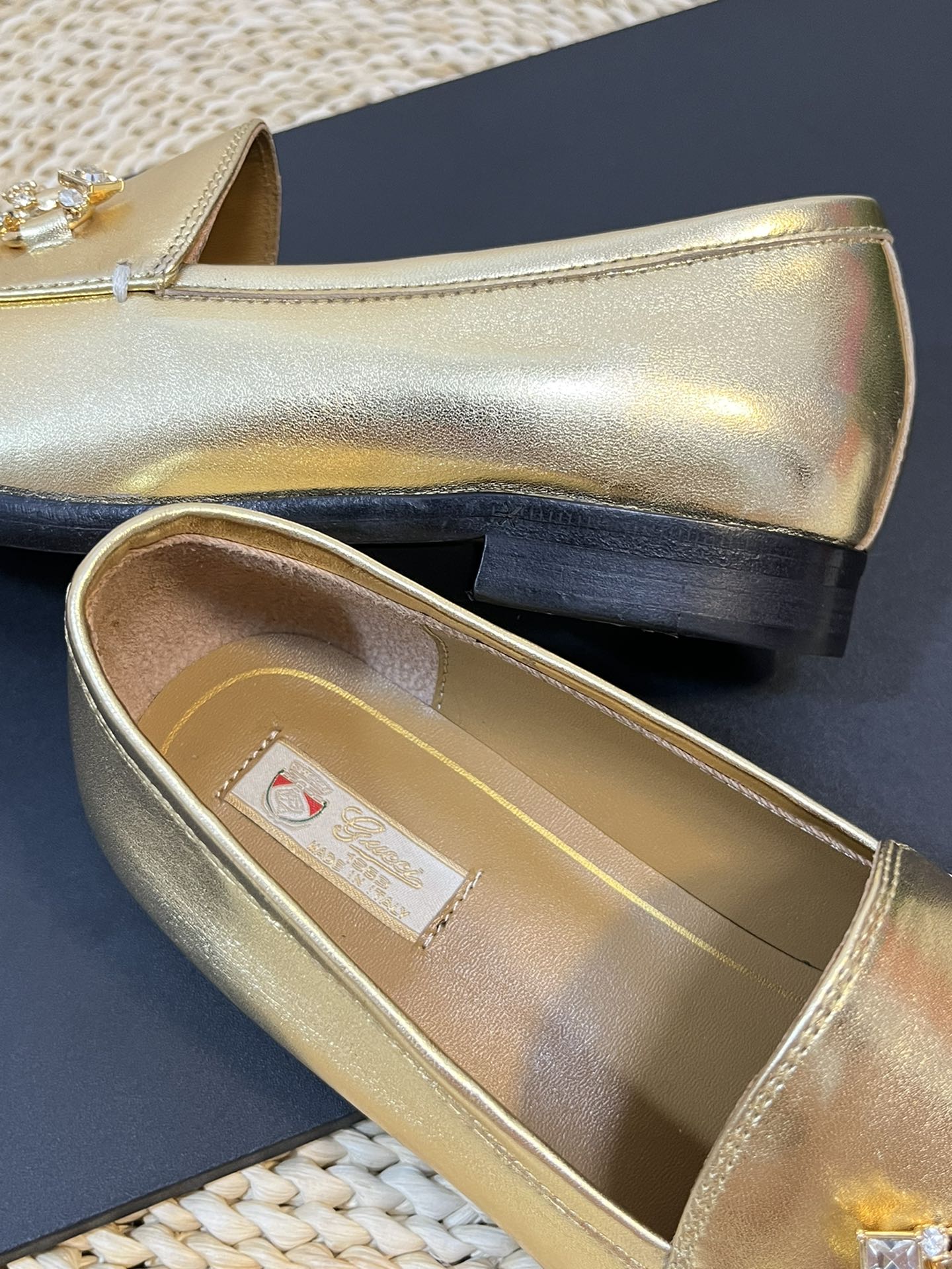 这款鞋子是AAAAA 1:1 质量 (非常棒). 使用了和原版一模一样的材料. 商标部分也保持了和古奇/Gucci一样. 图片拍摄是实物鞋子拍摄, 您所收到的实物保证和我们图片一模一样.