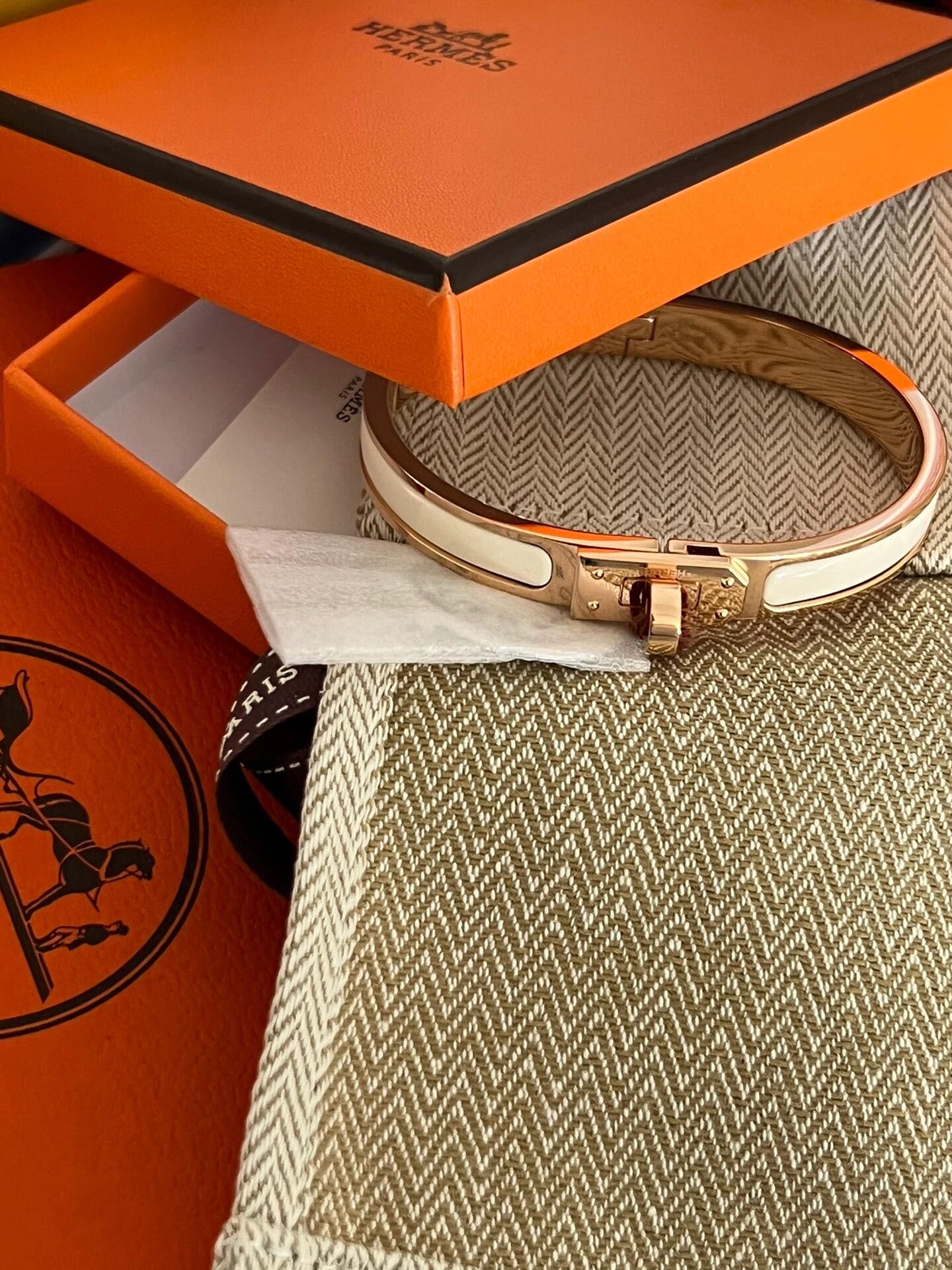 这款首饰是AAAAA 1:1 质量 (非常棒). 使用了和原版一模一样的材料. 商标部分也保持了和爱马仕/Hermes一样. 图片拍摄是实物首饰拍摄, 您所收到的实物保证和我们图片一模一样.