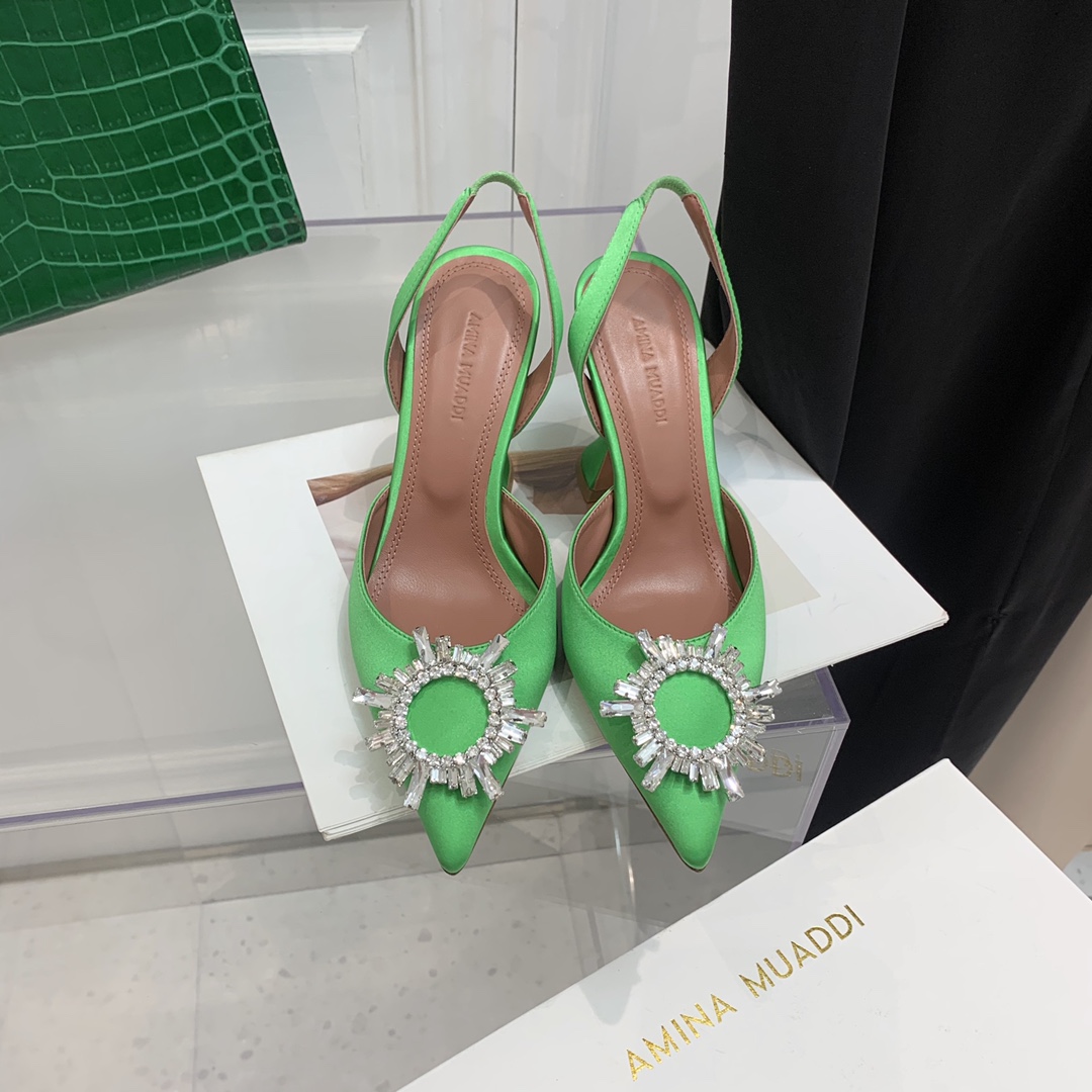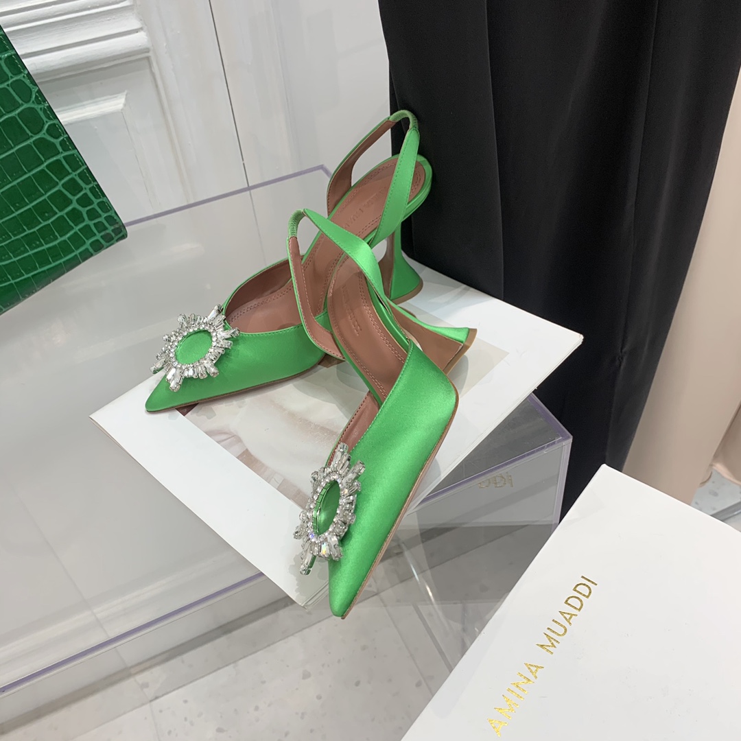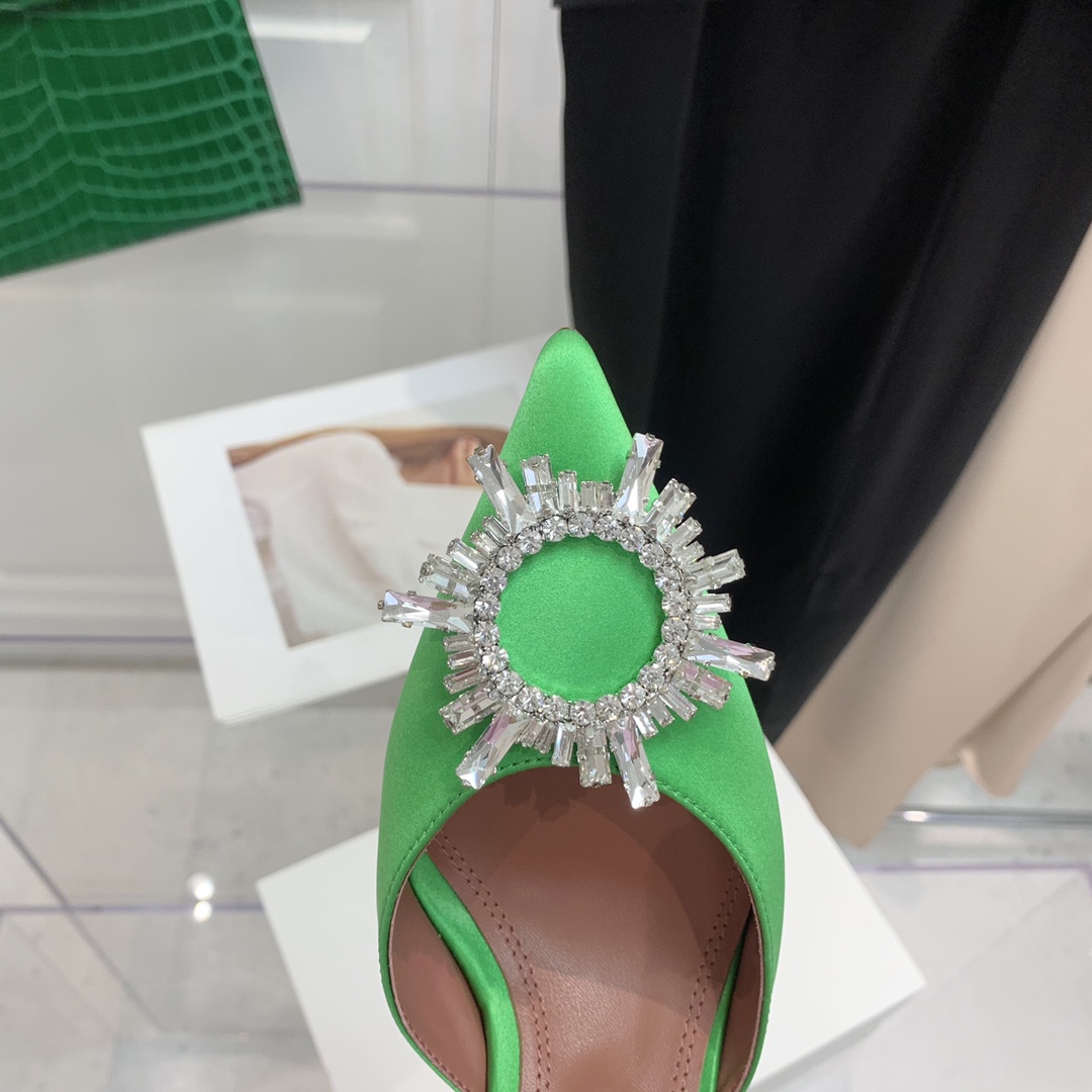 这款鞋子是AAAAA 1:1 质量 (非常棒). 使用了和原版一模一样的材料. 商标部分也保持了和Amina Muaddi一样. 图片拍摄是实物鞋子拍摄, 您所收到的实物保证和我们图片一模一样.