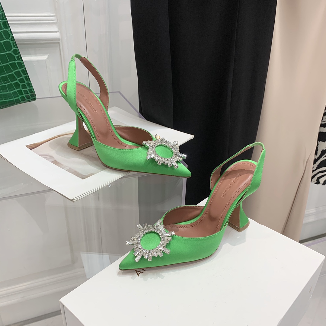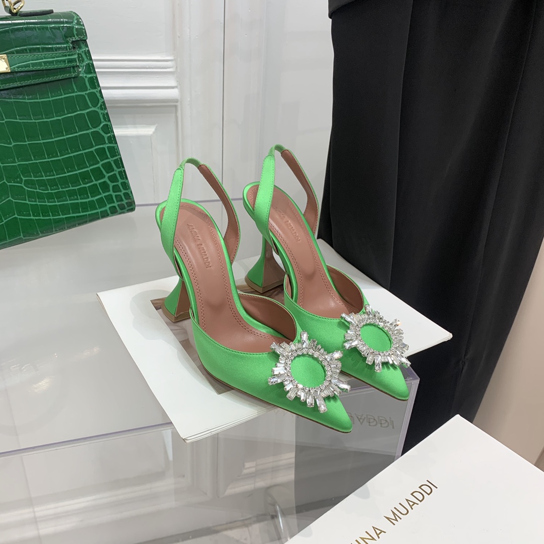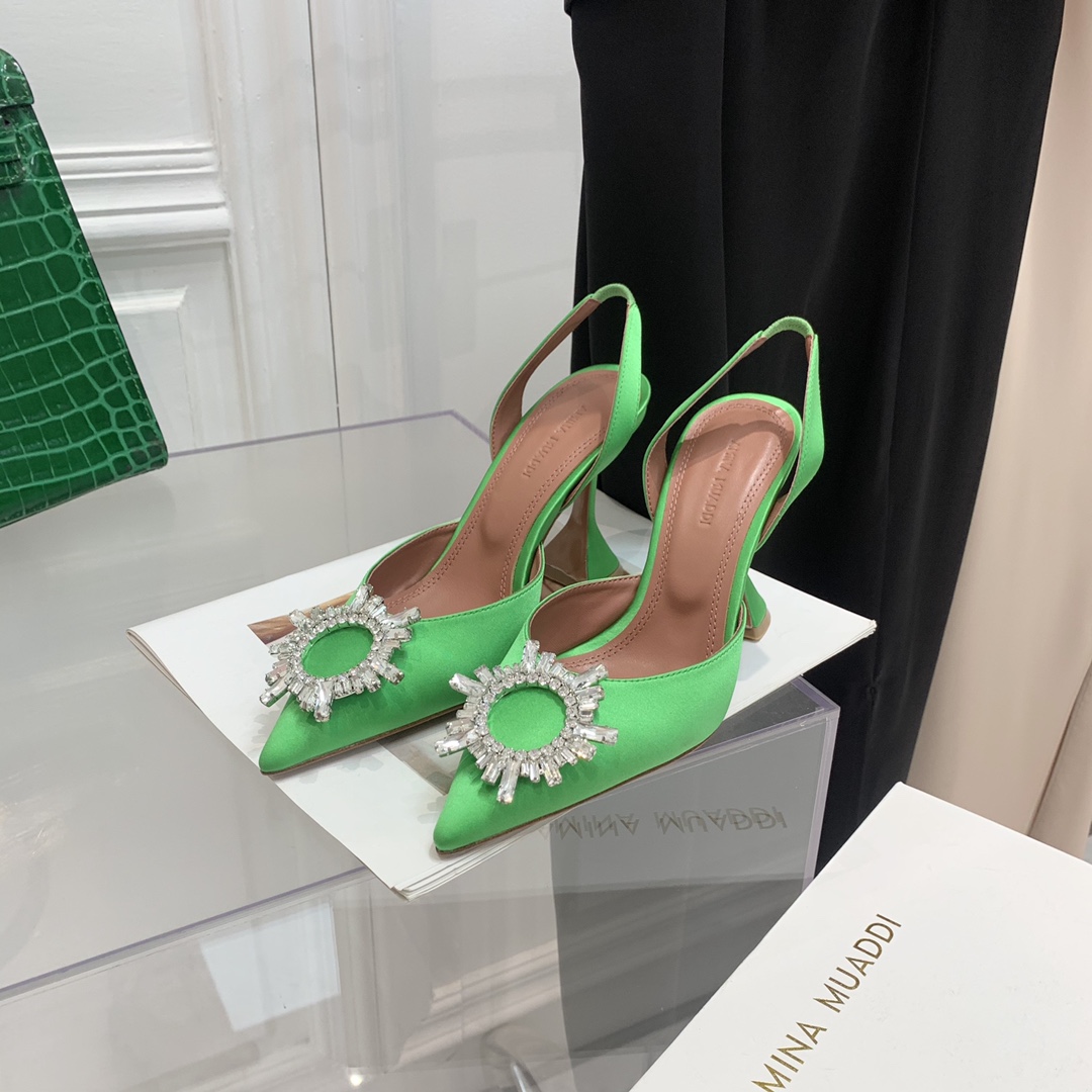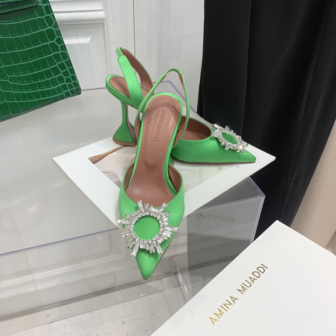 这款鞋子是AAAAA 1:1 质量 (非常棒). 使用了和原版一模一样的材料. 商标部分也保持了和Amina Muaddi一样. 图片拍摄是实物鞋子拍摄, 您所收到的实物保证和我们图片一模一样.