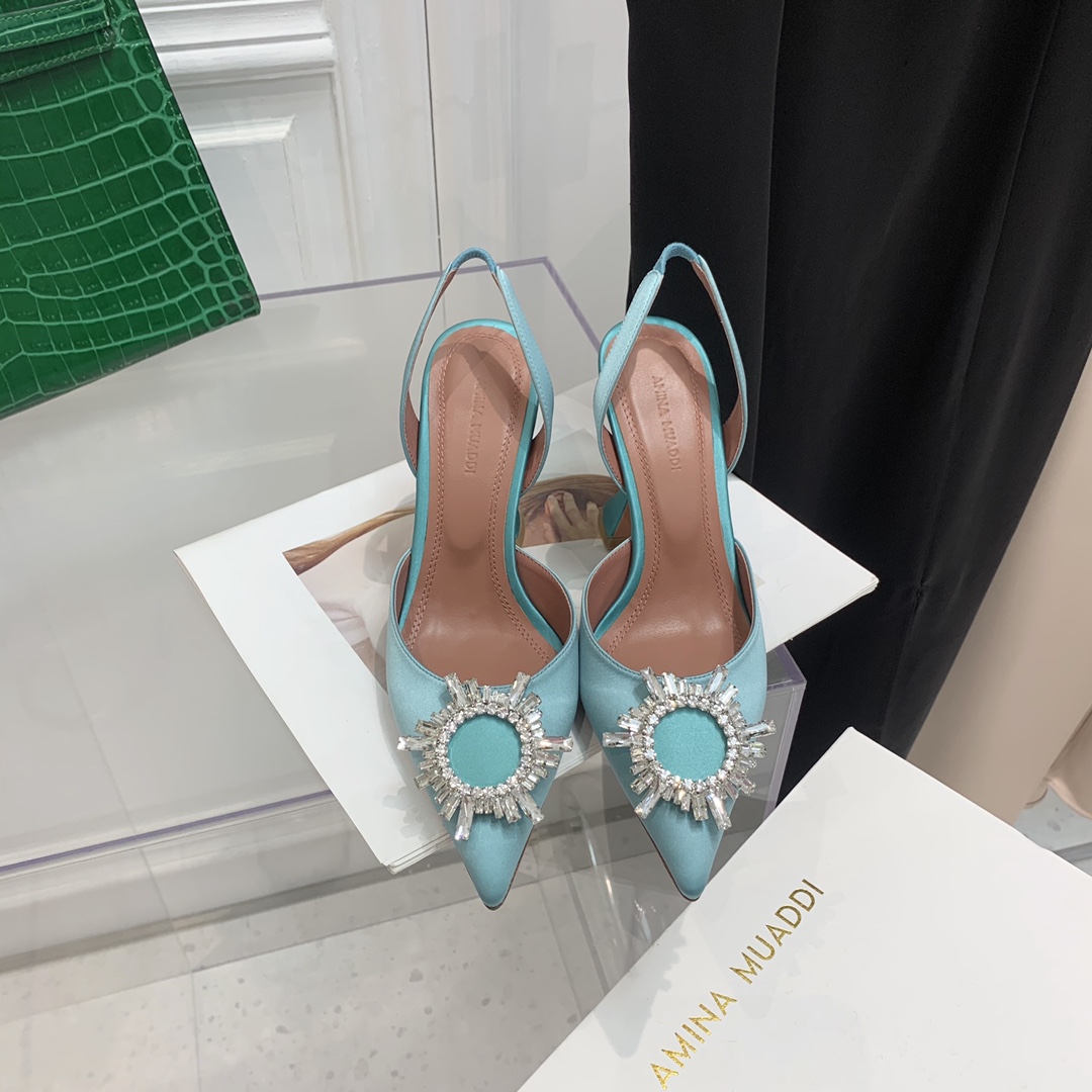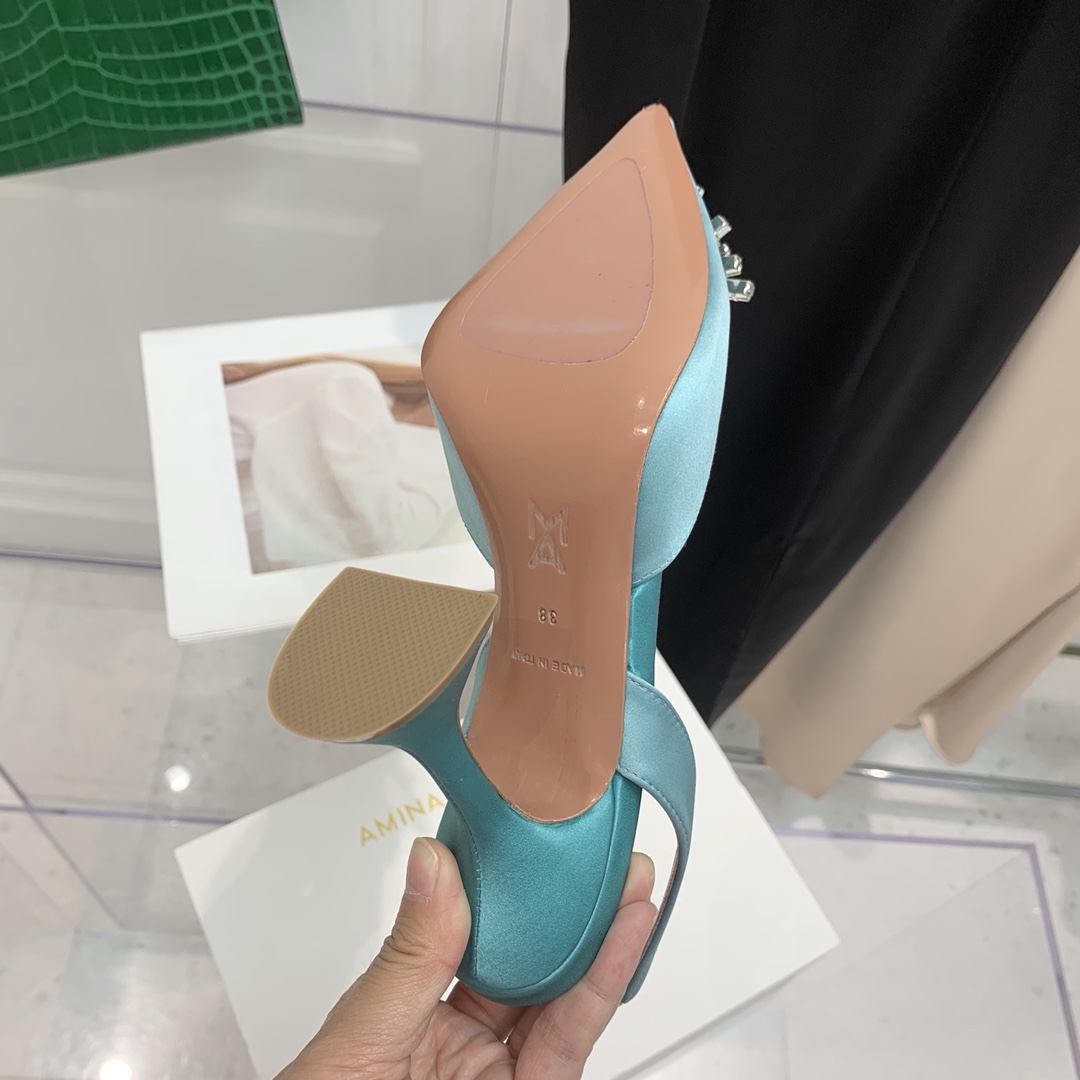这款鞋子是AAAAA 1:1 质量 (非常棒). 使用了和原版一模一样的材料. 商标部分也保持了和Amina Muaddi一样. 图片拍摄是实物鞋子拍摄, 您所收到的实物保证和我们图片一模一样.