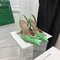 这款鞋子是AAAAA 1:1 质量 (非常棒). 使用了和原版一模一样的材料. 商标部分也保持了和Amina Muaddi一样. 图片拍摄是实物鞋子拍摄, 您所收到的实物保证和我们图片一模一样.