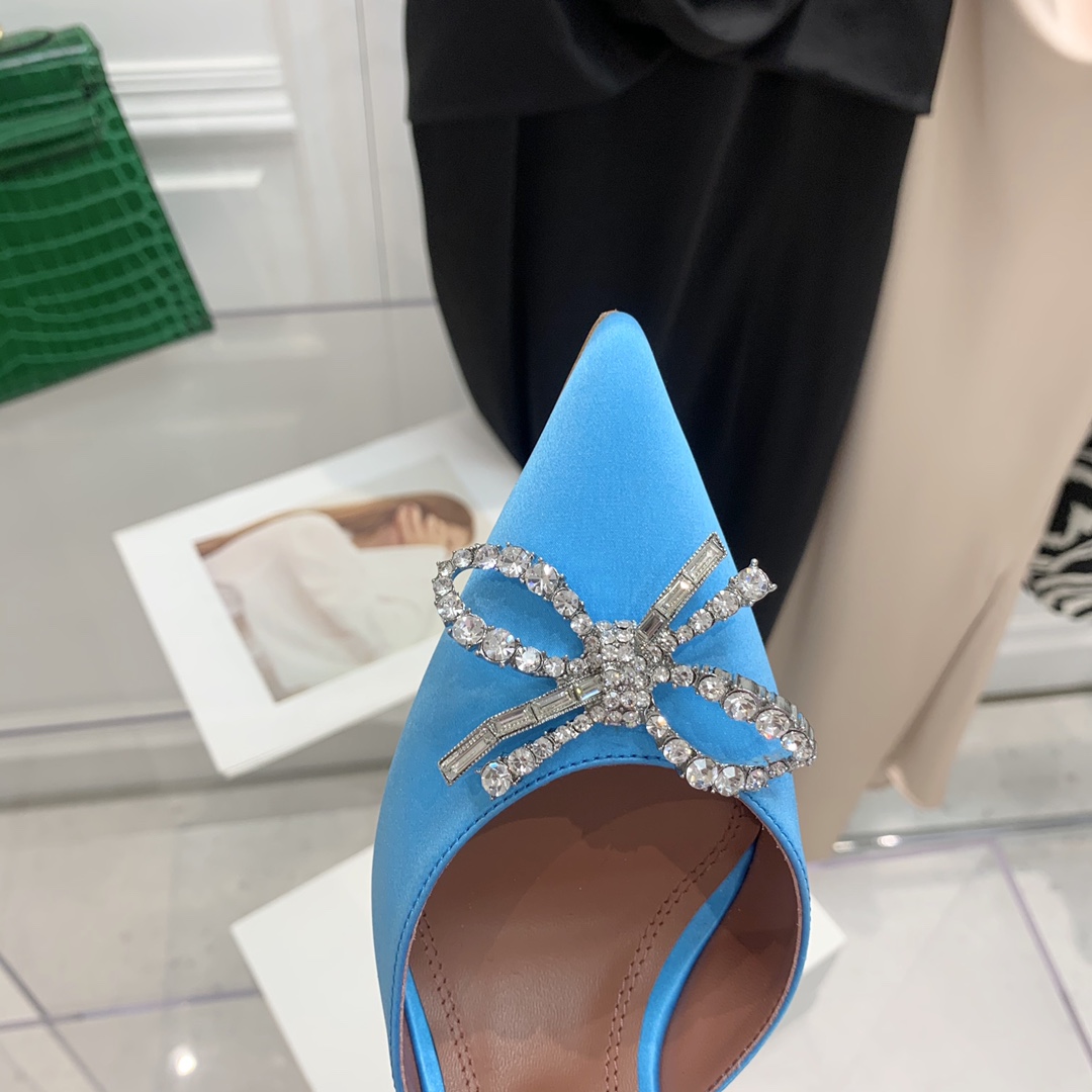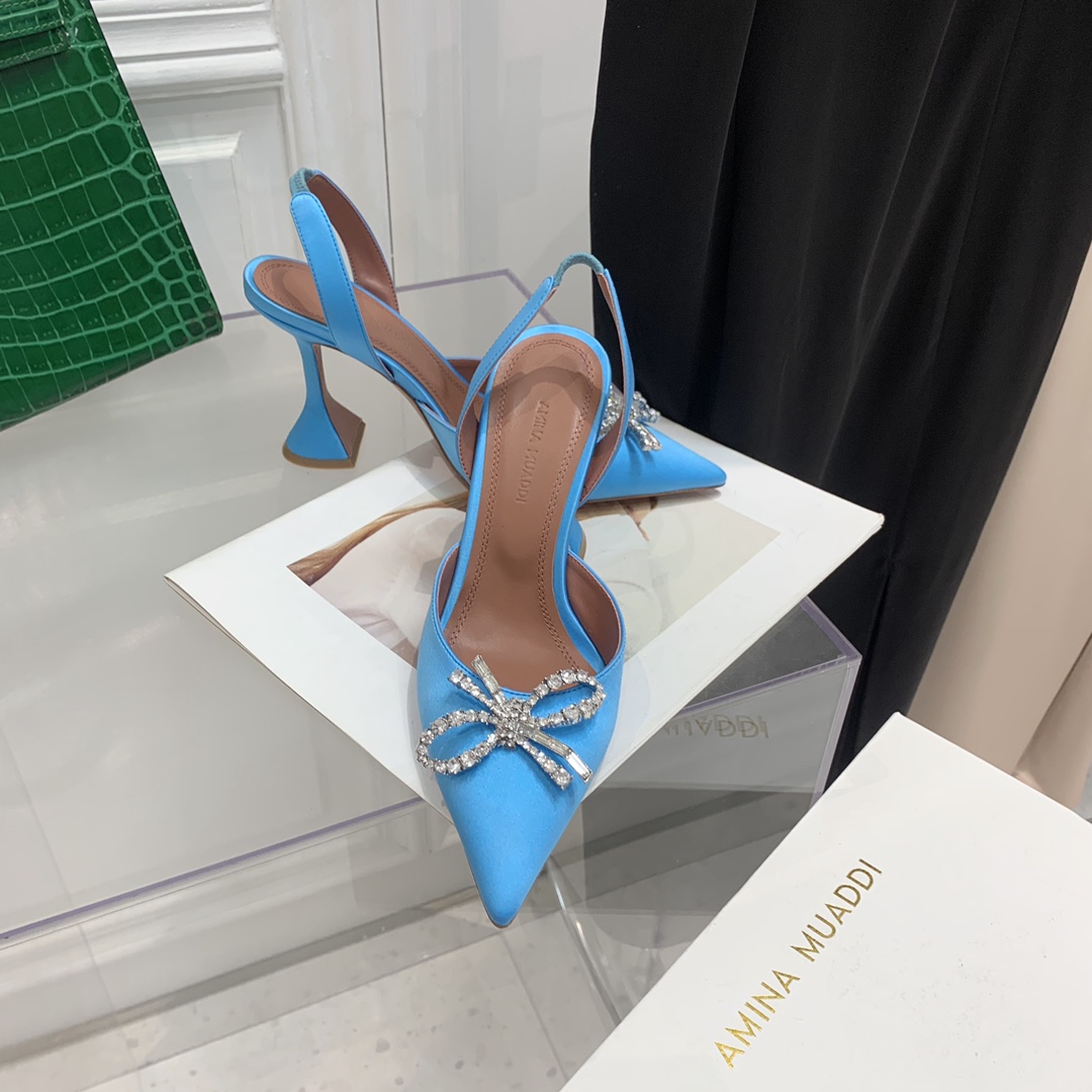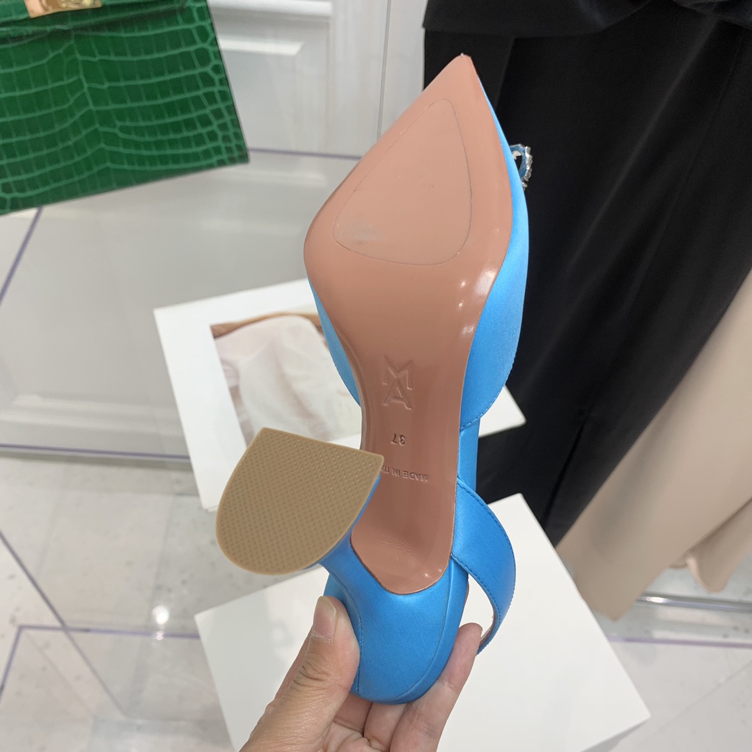 这款鞋子是AAAAA 1:1 质量 (非常棒). 使用了和原版一模一样的材料. 商标部分也保持了和Amina Muaddi一样. 图片拍摄是实物鞋子拍摄, 您所收到的实物保证和我们图片一模一样.