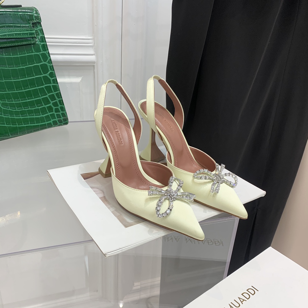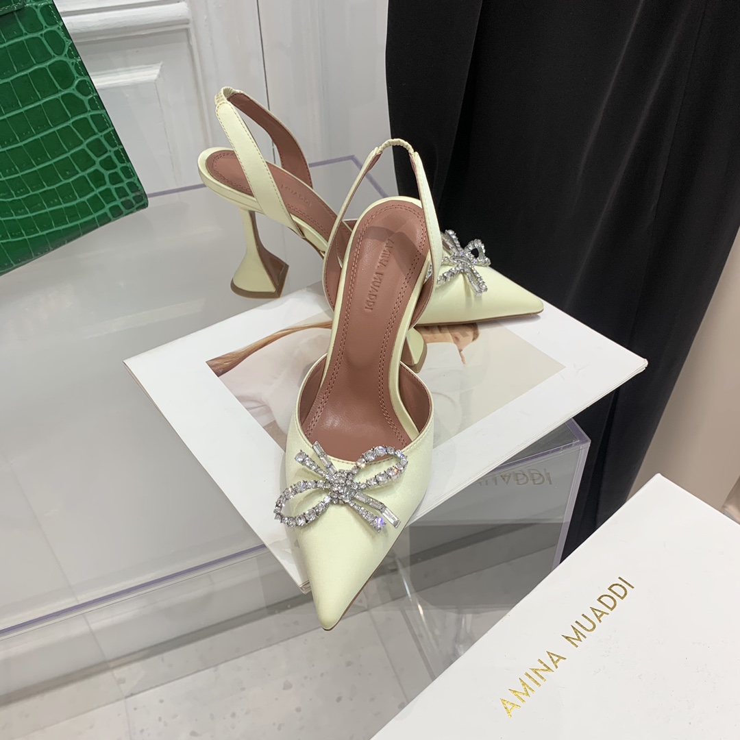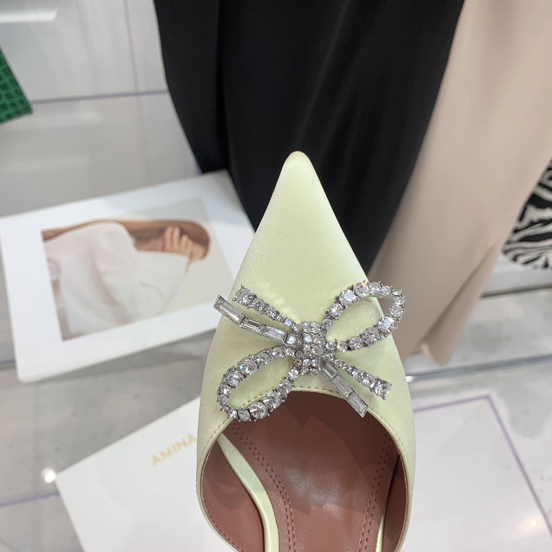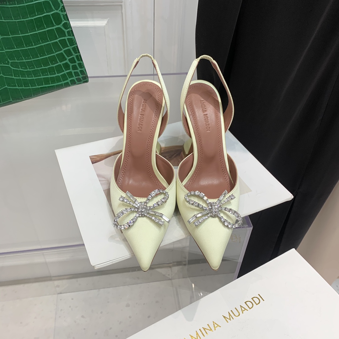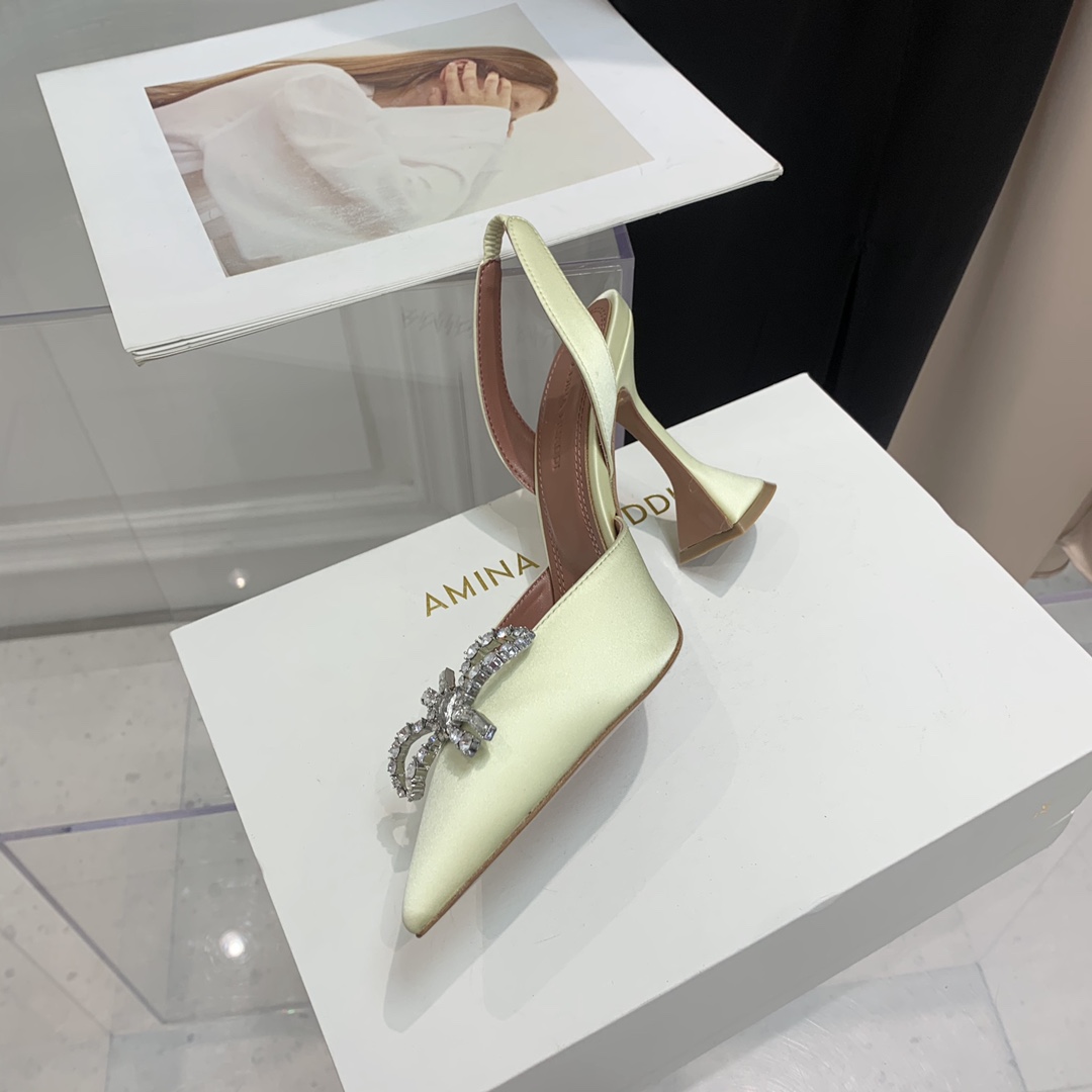 这款鞋子是AAAAA 1:1 质量 (非常棒). 使用了和原版一模一样的材料. 商标部分也保持了和Amina Muaddi一样. 图片拍摄是实物鞋子拍摄, 您所收到的实物保证和我们图片一模一样.