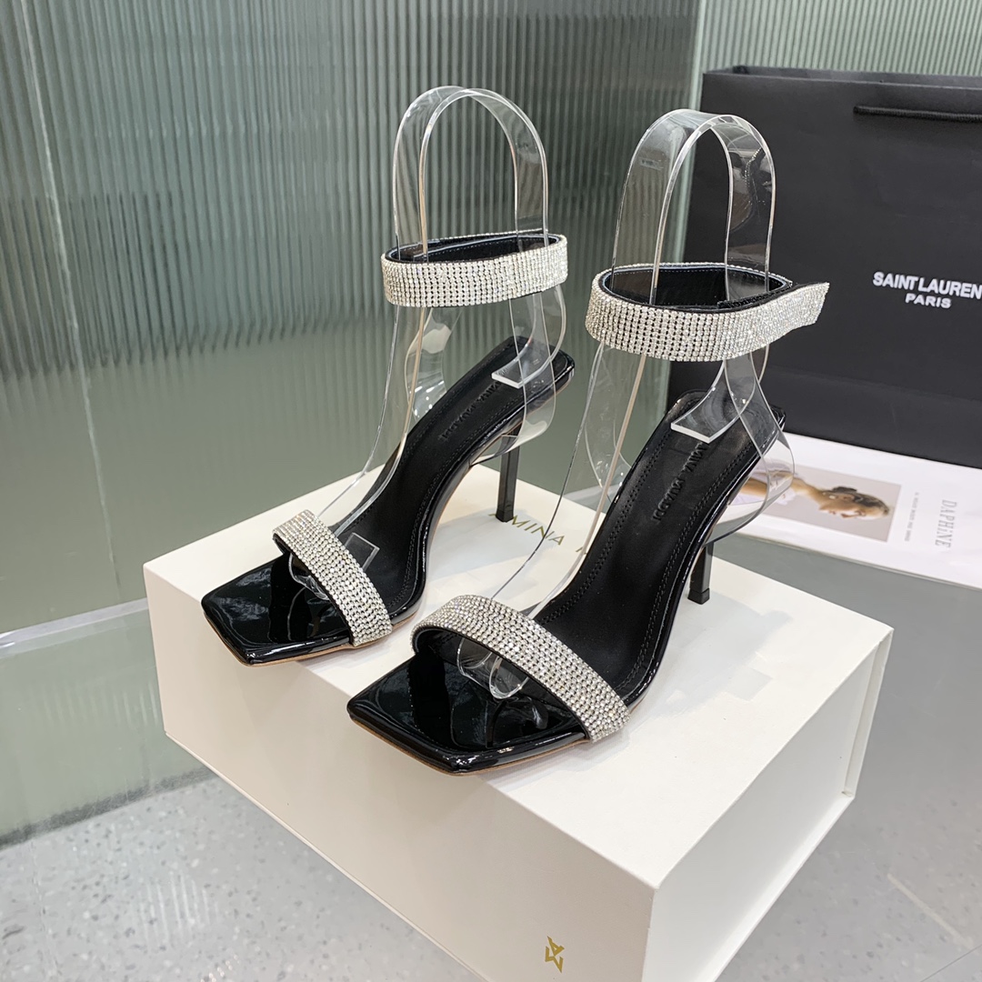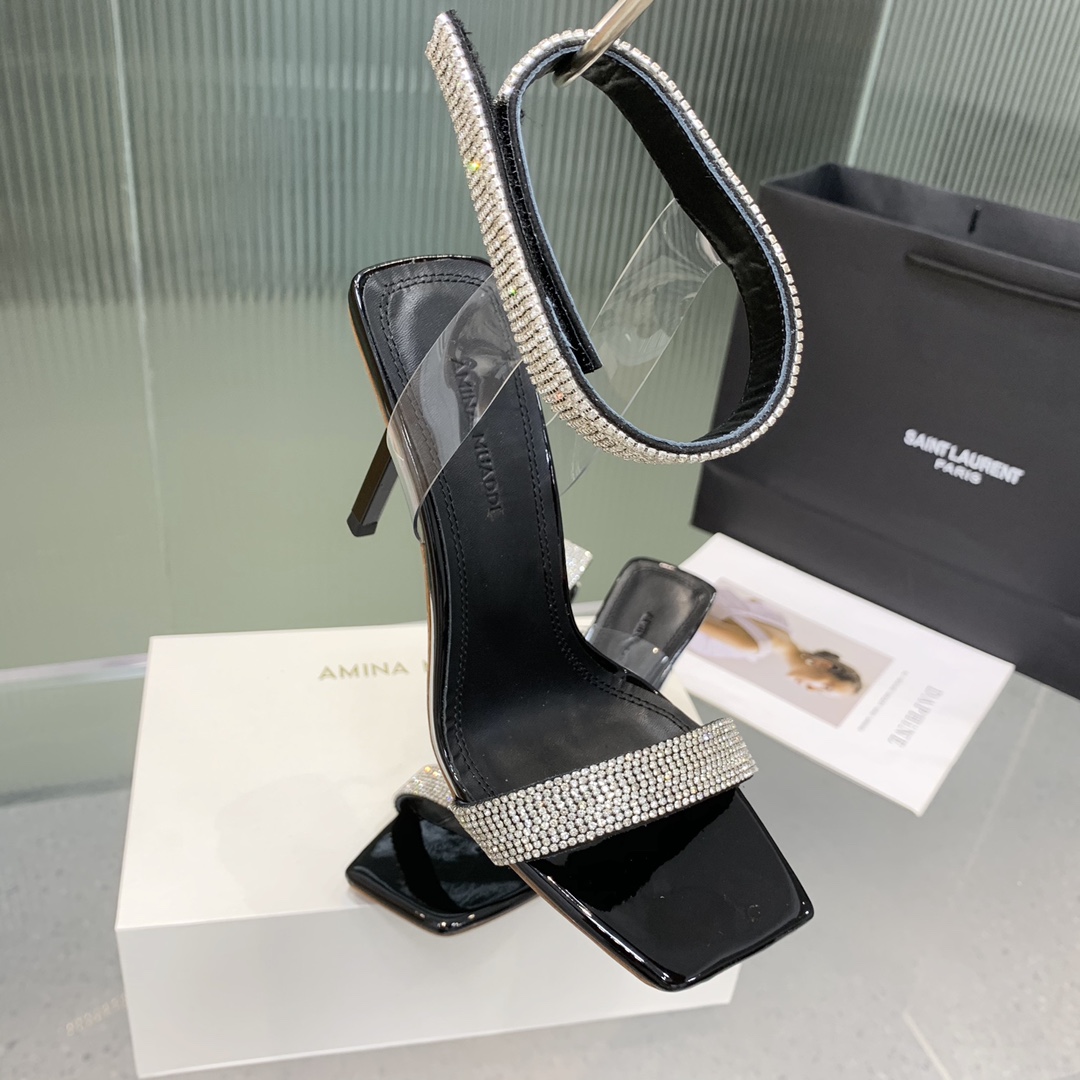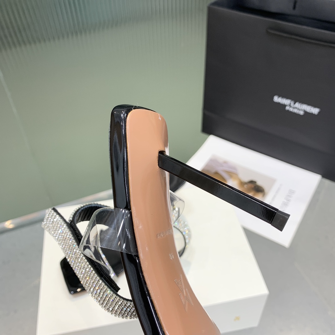这款鞋子是AAAAA 1:1 质量 (非常棒). 使用了和原版一模一样的材料. 商标部分也保持了和Amina Muaddi一样. 图片拍摄是实物鞋子拍摄, 您所收到的实物保证和我们图片一模一样.