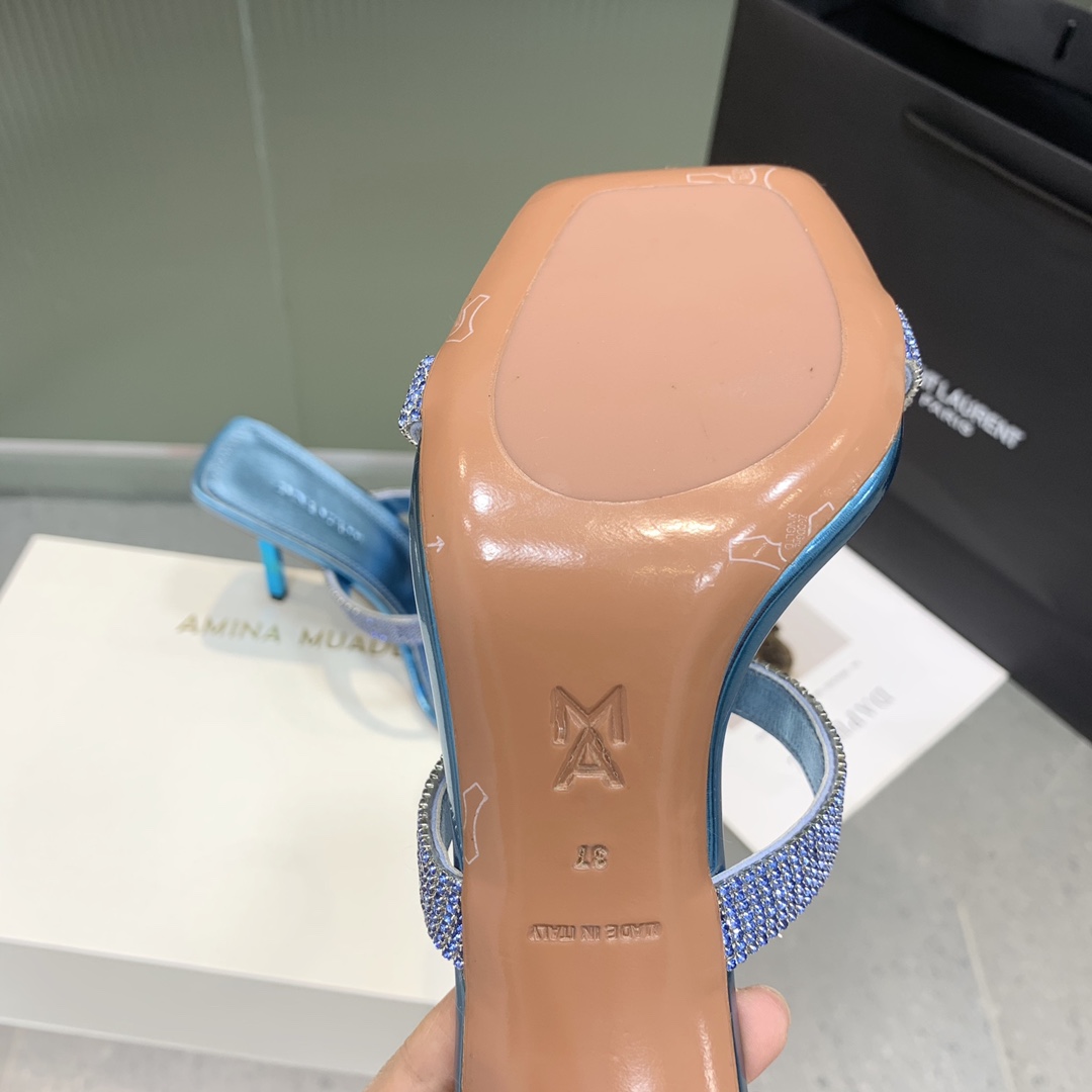这款鞋子是AAAAA 1:1 质量 (非常棒). 使用了和原版一模一样的材料. 商标部分也保持了和Amina Muaddi一样. 图片拍摄是实物鞋子拍摄, 您所收到的实物保证和我们图片一模一样.