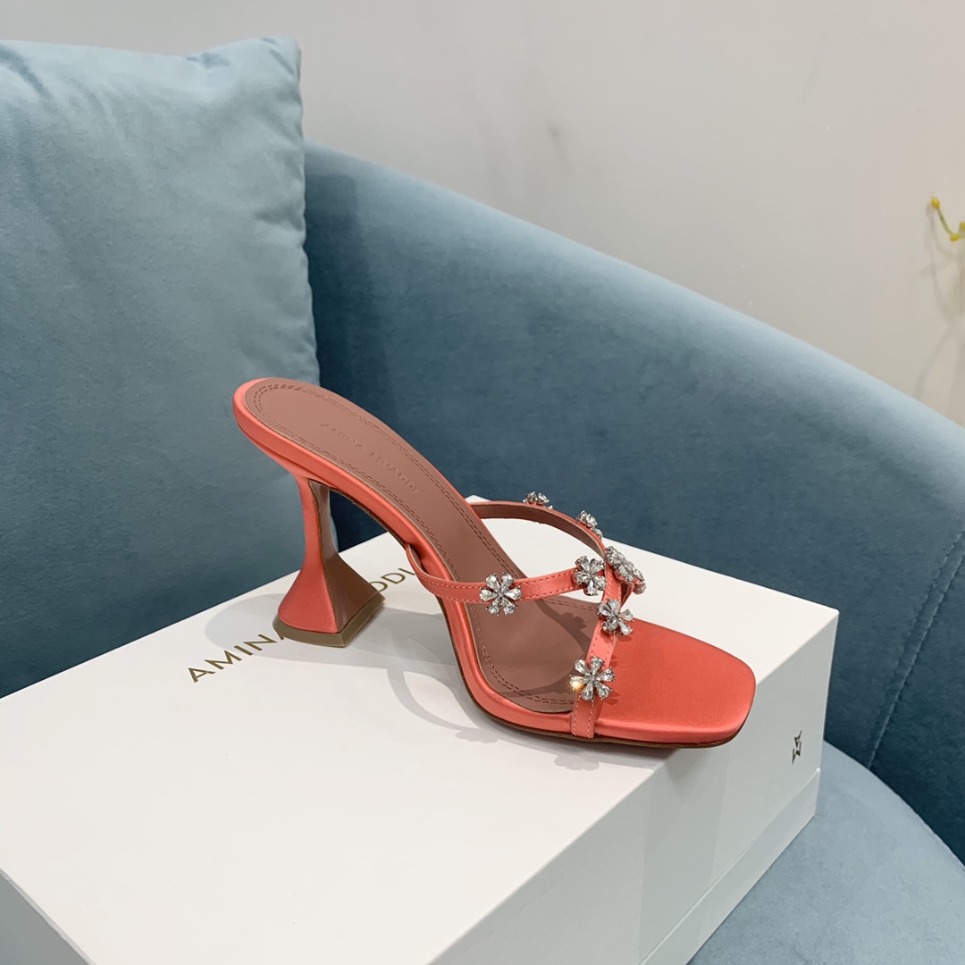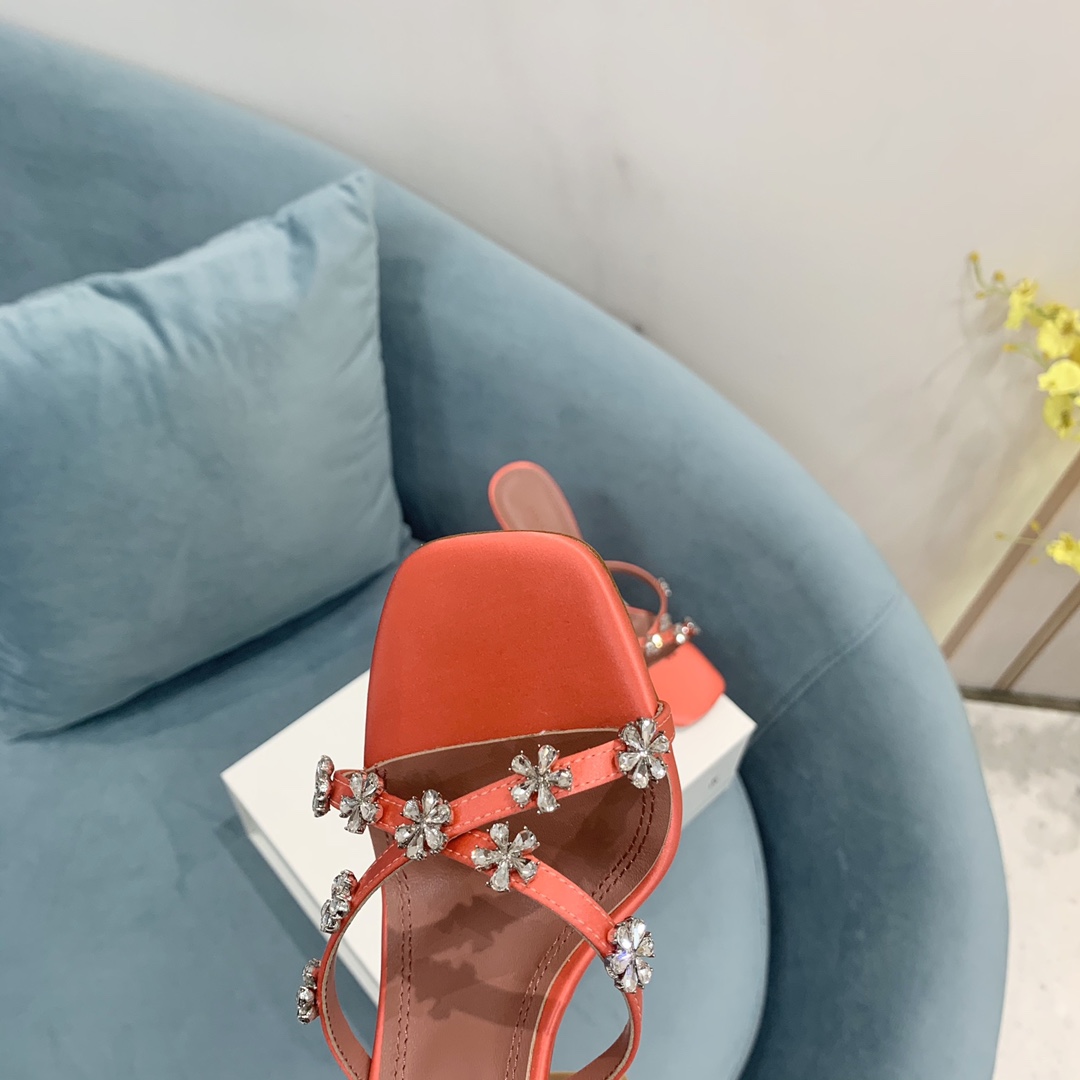 这款鞋子是AAAAA 1:1 质量 (非常棒). 使用了和原版一模一样的材料. 商标部分也保持了和Amina Muaddi一样. 图片拍摄是实物鞋子拍摄, 您所收到的实物保证和我们图片一模一样.