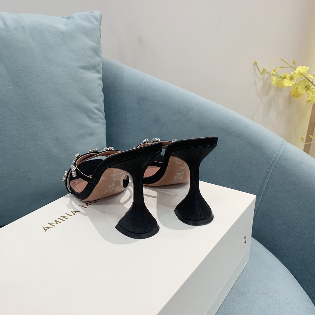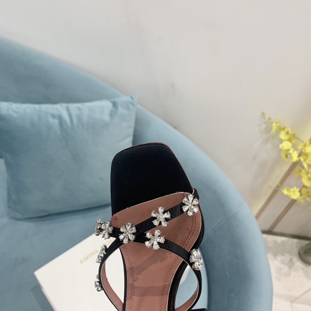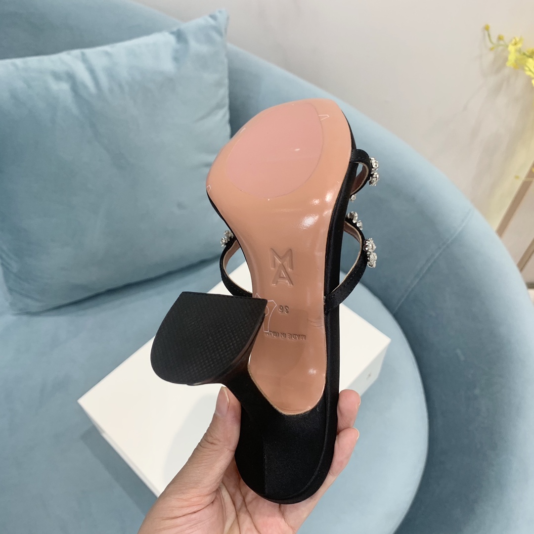 这款鞋子是AAAAA 1:1 质量 (非常棒). 使用了和原版一模一样的材料. 商标部分也保持了和Amina Muaddi一样. 图片拍摄是实物鞋子拍摄, 您所收到的实物保证和我们图片一模一样.