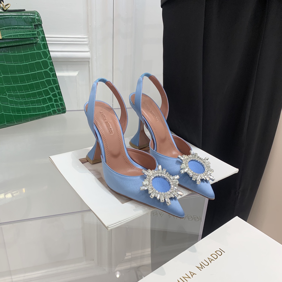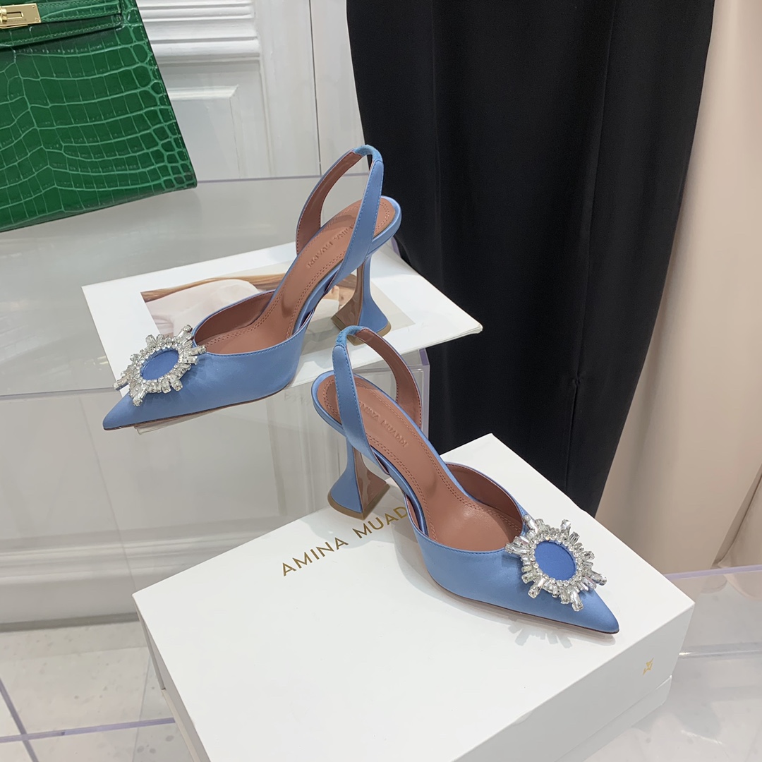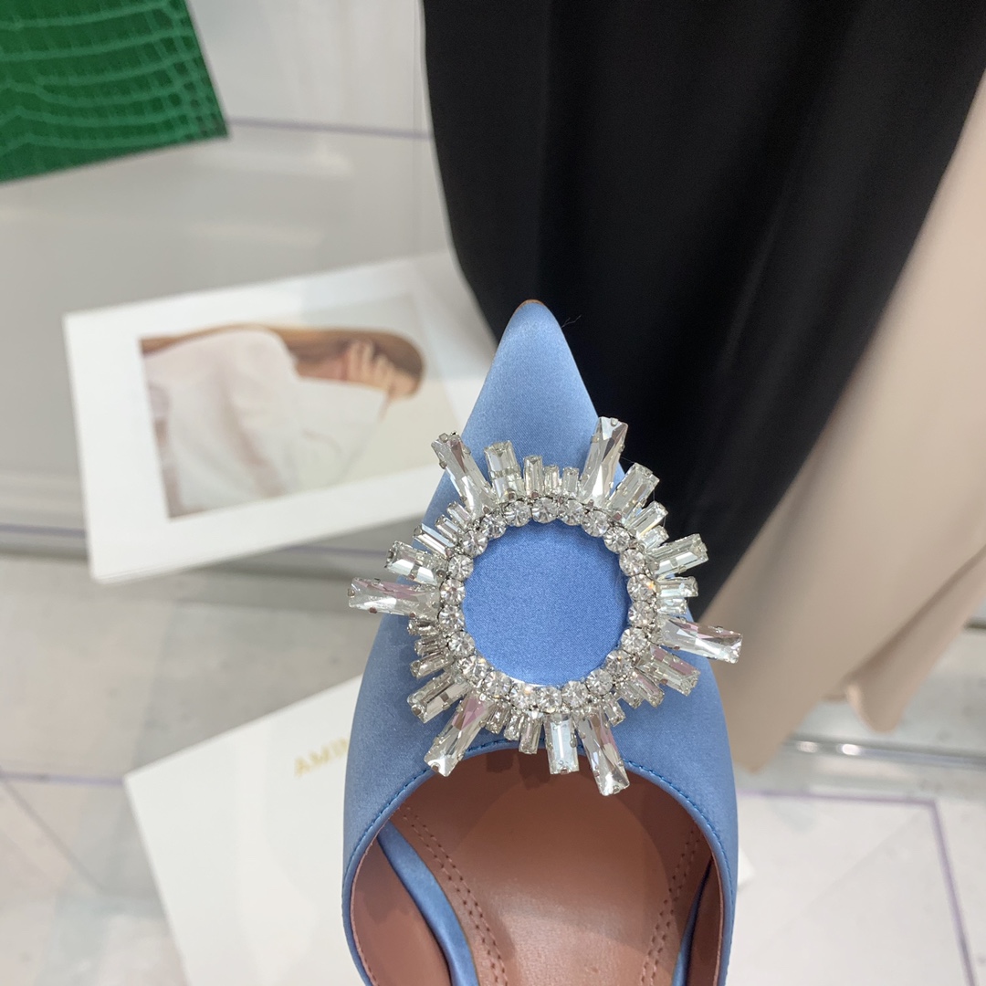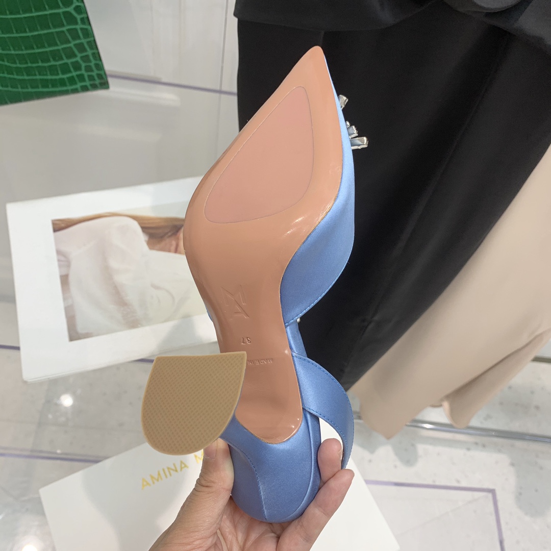 这款鞋子是AAAAA 1:1 质量 (非常棒). 使用了和原版一模一样的材料. 商标部分也保持了和Amina Muaddi一样. 图片拍摄是实物鞋子拍摄, 您所收到的实物保证和我们图片一模一样.