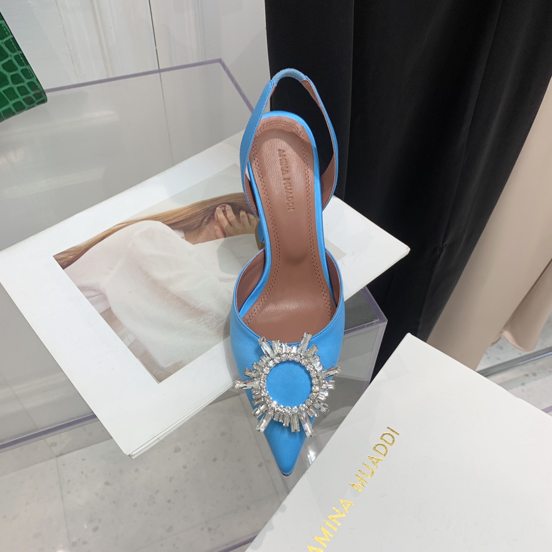 这款鞋子是AAAAA 1:1 质量 (非常棒). 使用了和原版一模一样的材料. 商标部分也保持了和Amina Muaddi一样. 图片拍摄是实物鞋子拍摄, 您所收到的实物保证和我们图片一模一样.