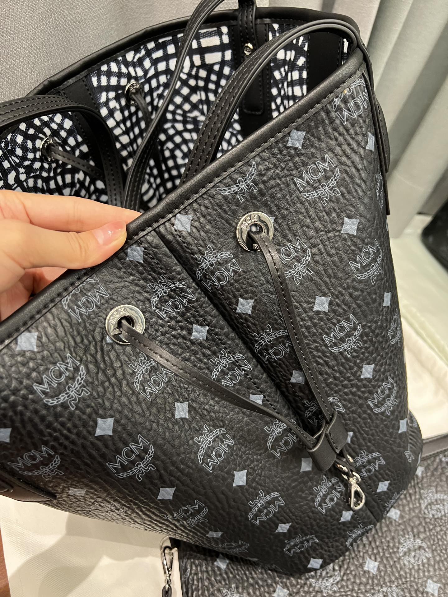 这款包包是AAAAA 1:1 质量 (非常棒). 使用了和原版一模一样的材料. 商标部分也保持了和Man crush Monday(MCM)一样. 图片拍摄是实物包包拍摄, 您所收到的实物保证和我们图片一模一样.
