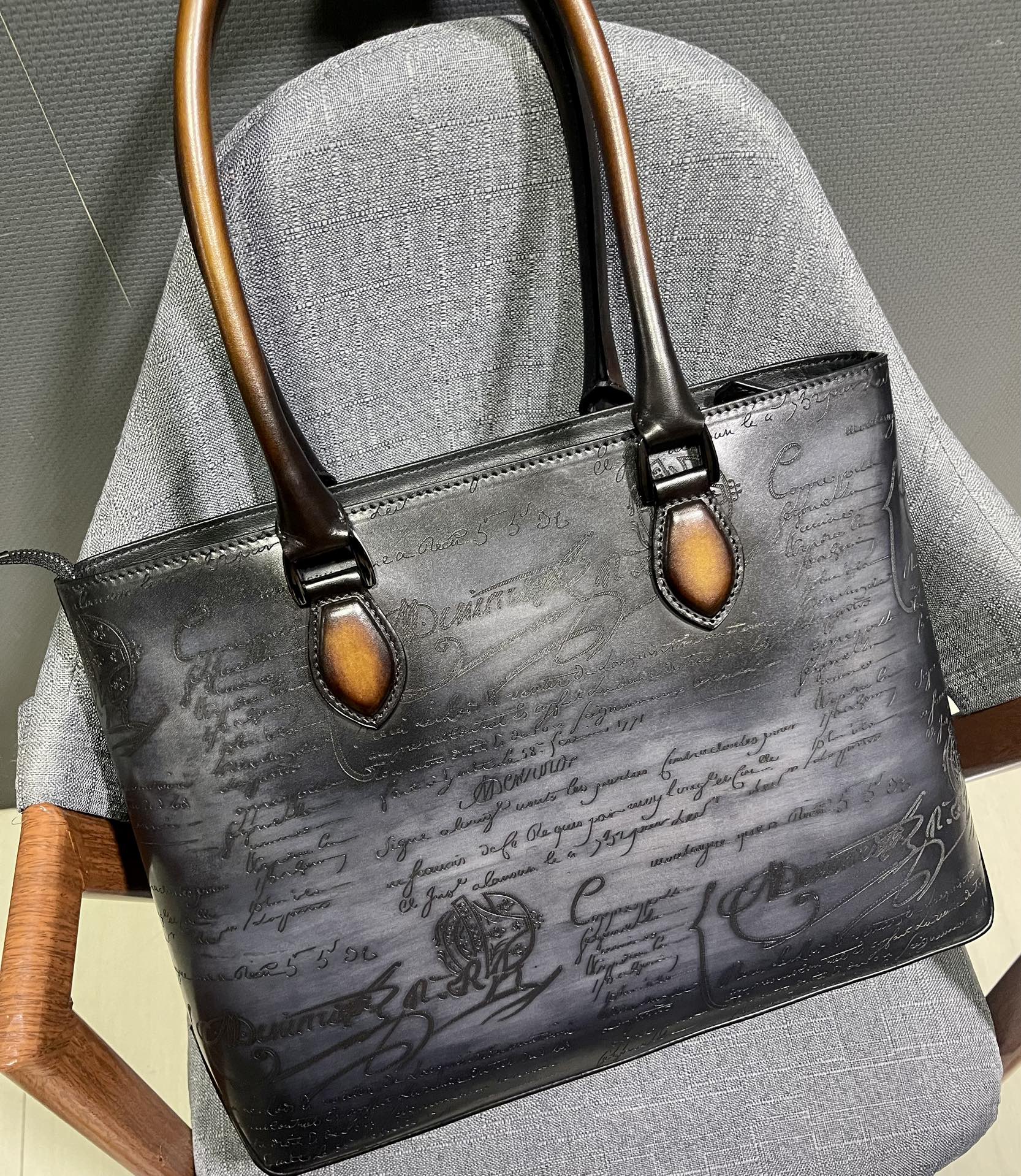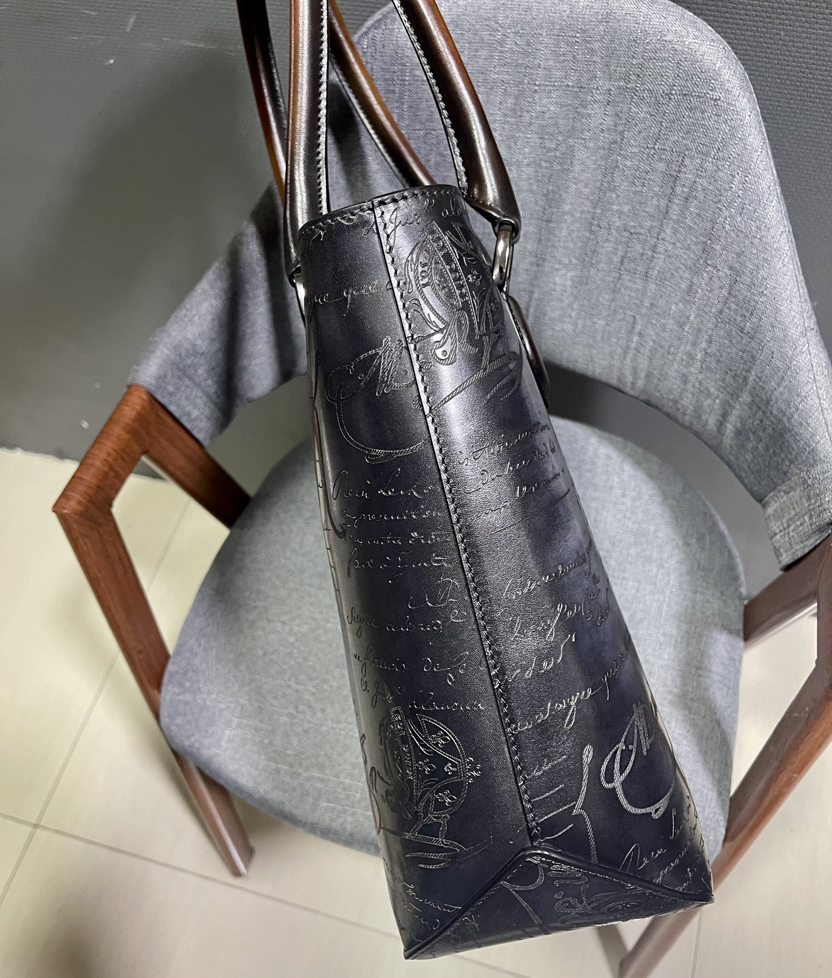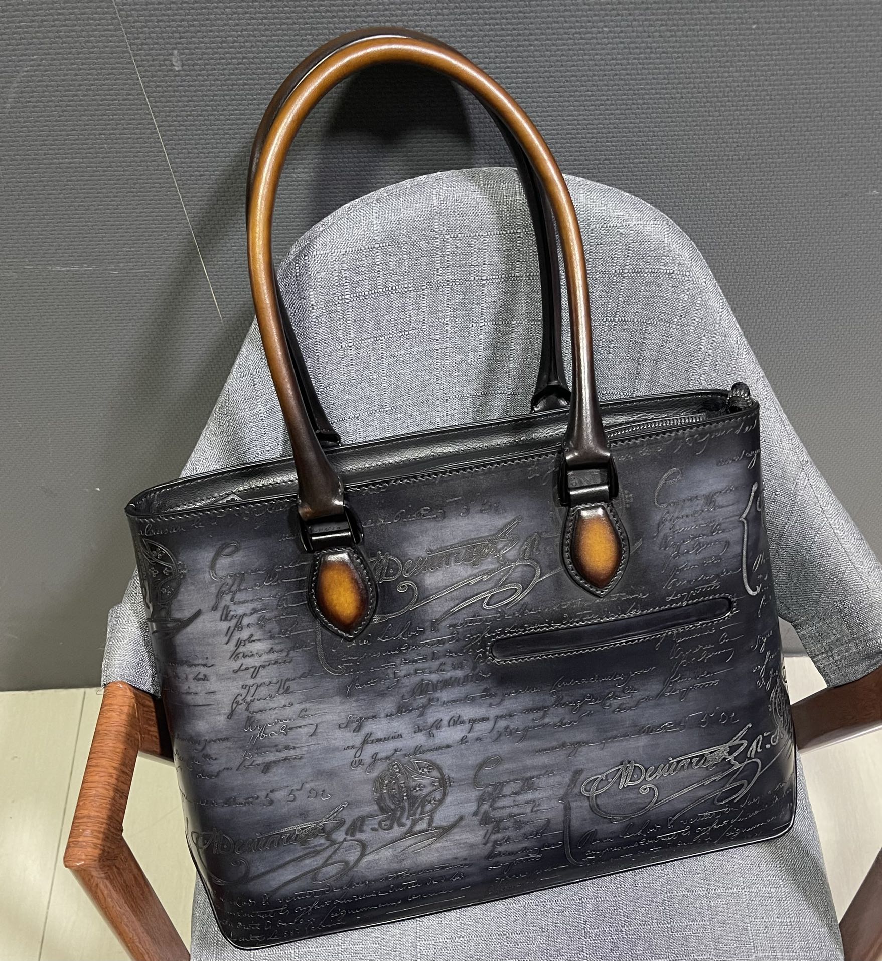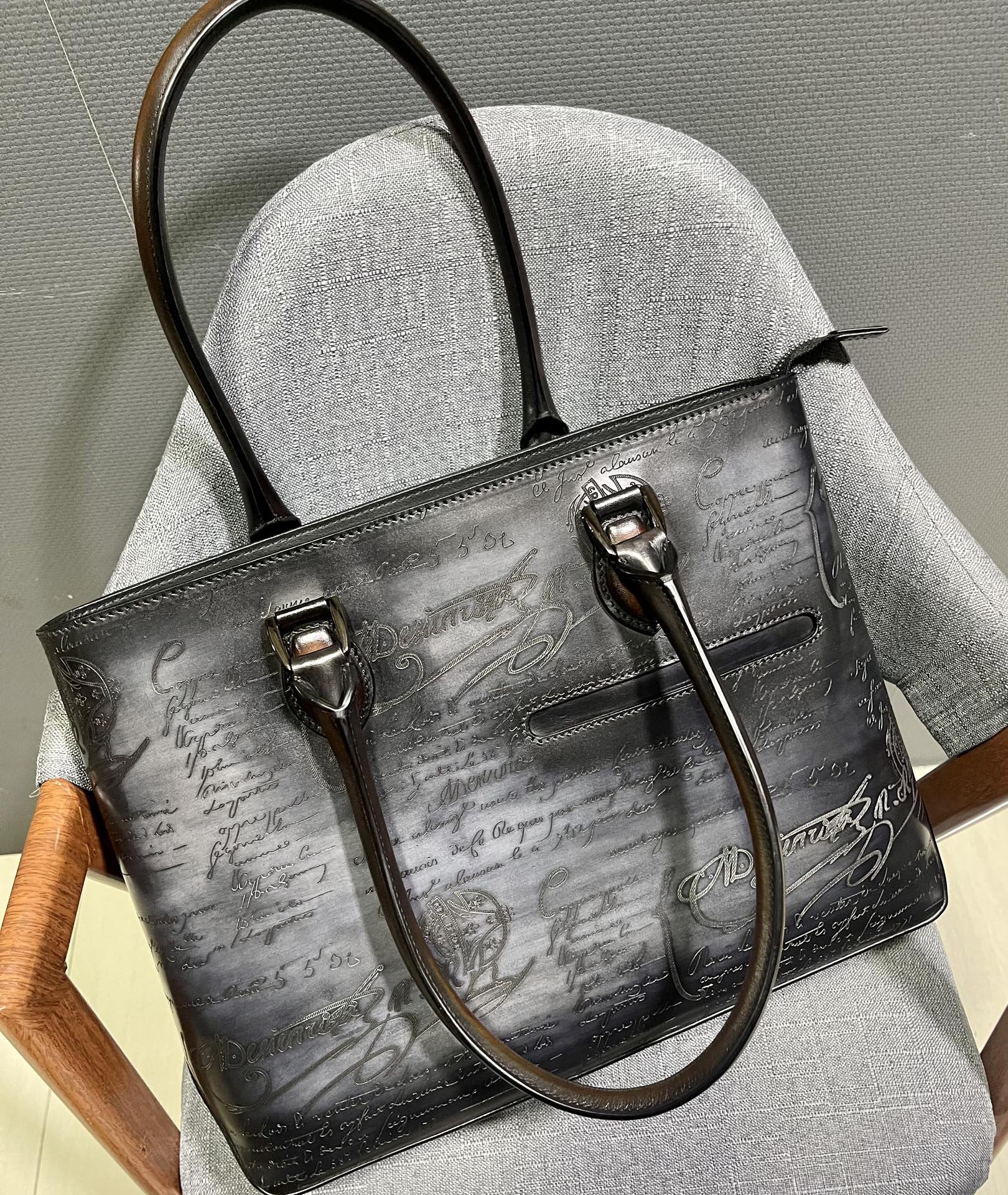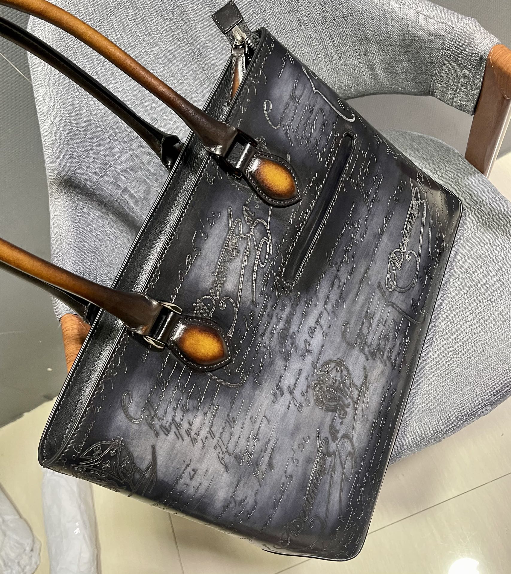 这款包包是AAAAA 1:1 质量 (非常棒). 使用了和原版一模一样的材料. 商标部分也保持了和Berluti一样. 图片拍摄是实物包包拍摄, 您所收到的实物保证和我们图片一模一样.