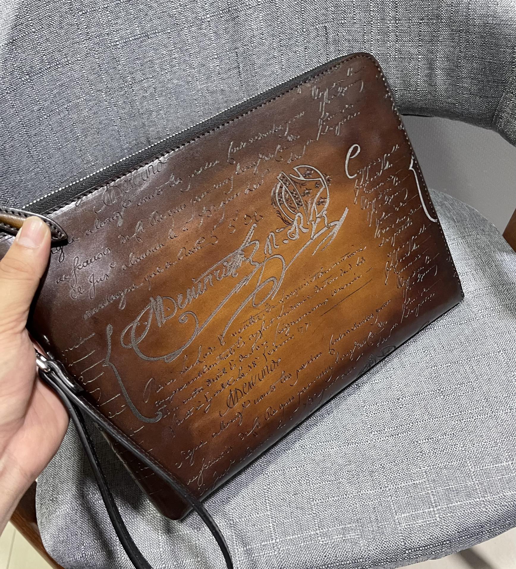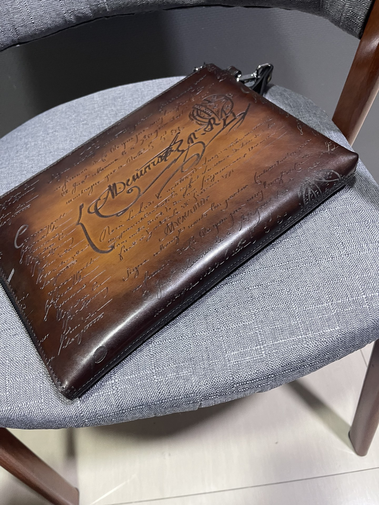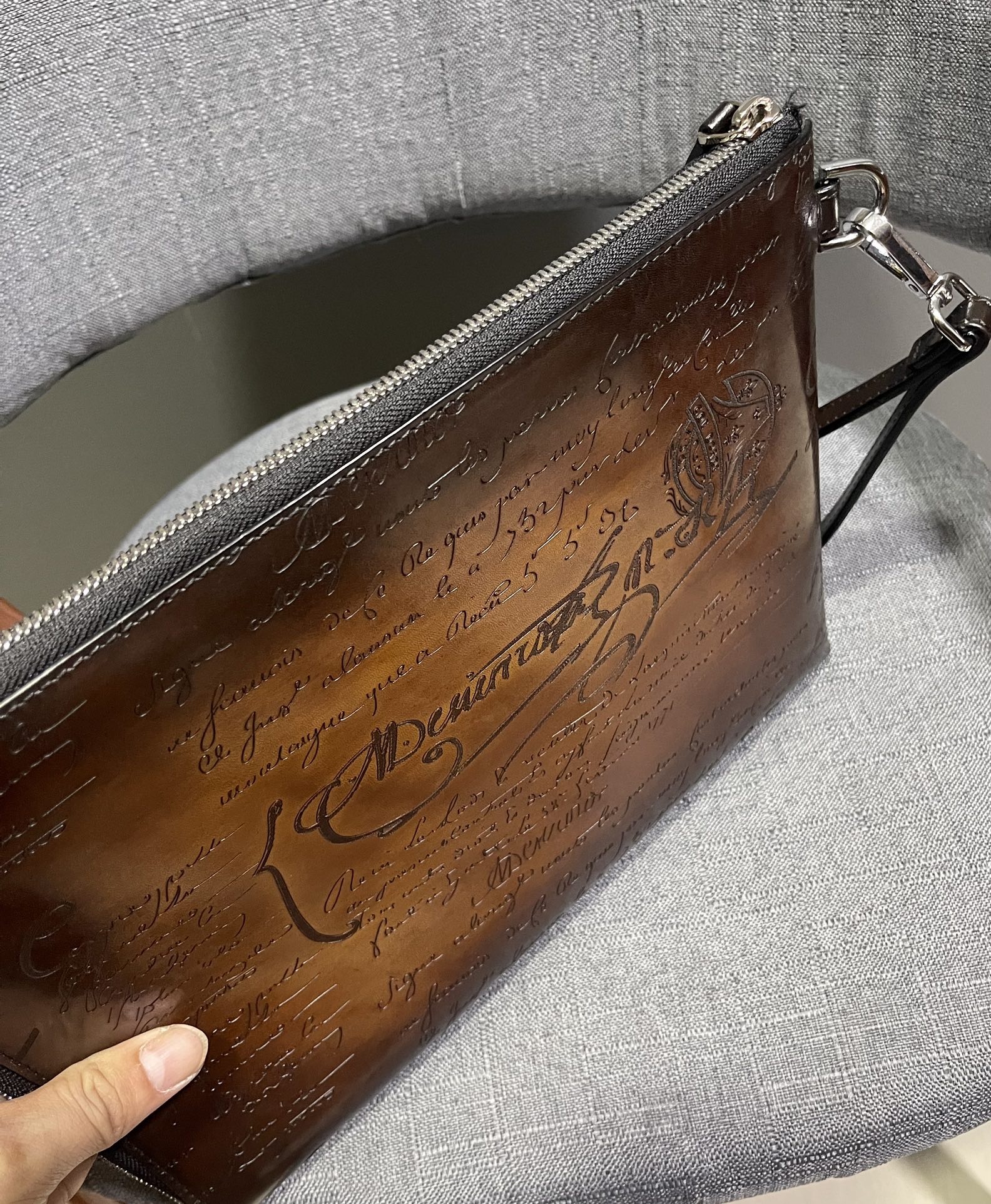 这款包包是AAAAA 1:1 质量 (非常棒). 使用了和原版一模一样的材料. 商标部分也保持了和Berluti一样. 图片拍摄是实物包包拍摄, 您所收到的实物保证和我们图片一模一样.