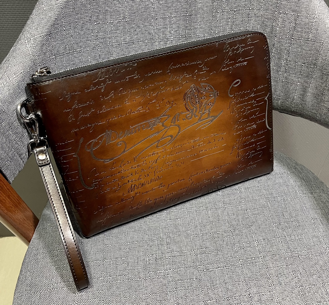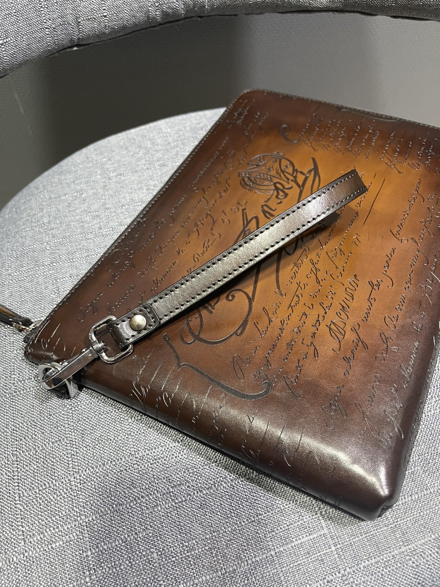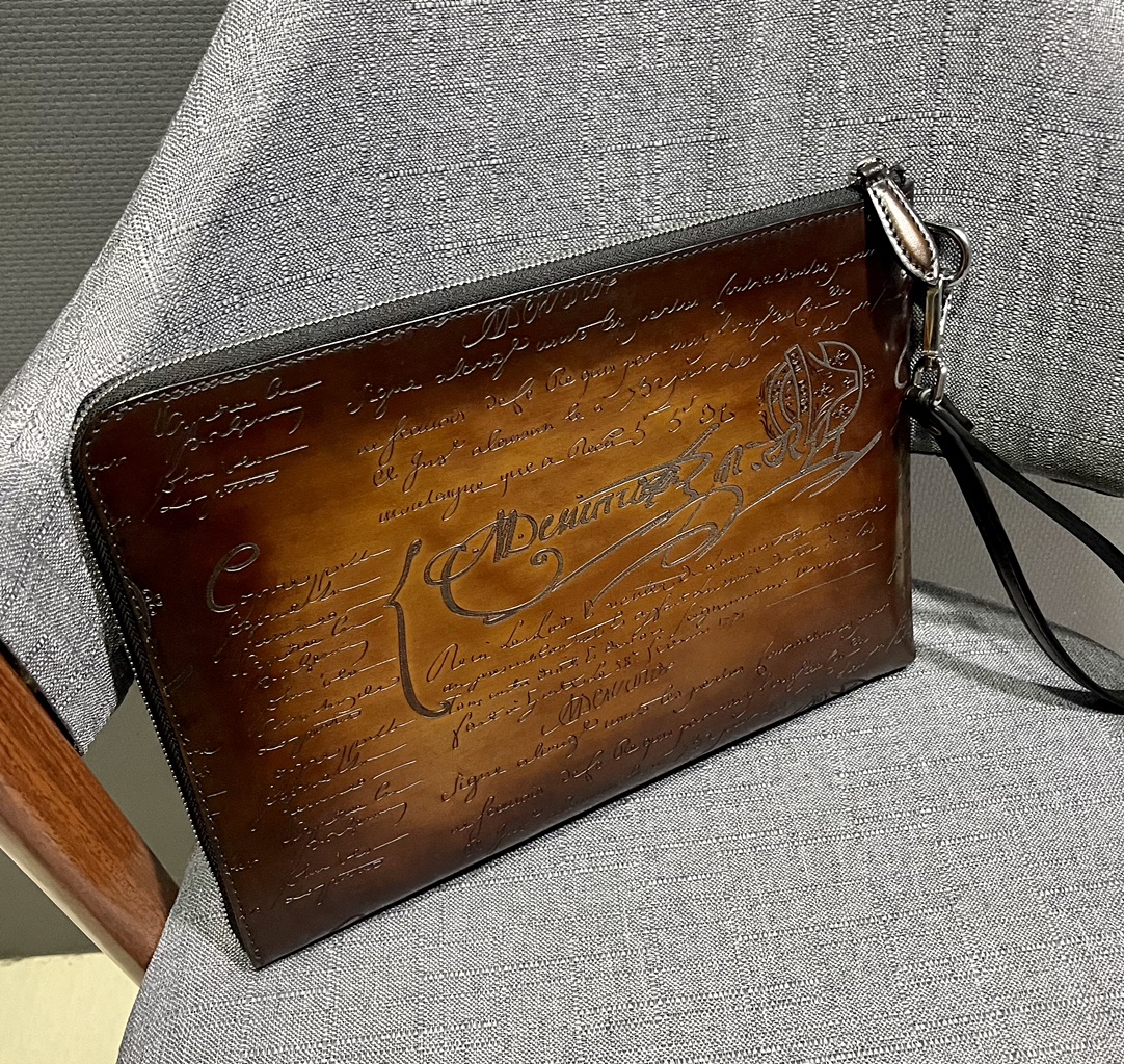 这款包包是AAAAA 1:1 质量 (非常棒). 使用了和原版一模一样的材料. 商标部分也保持了和Berluti一样. 图片拍摄是实物包包拍摄, 您所收到的实物保证和我们图片一模一样.