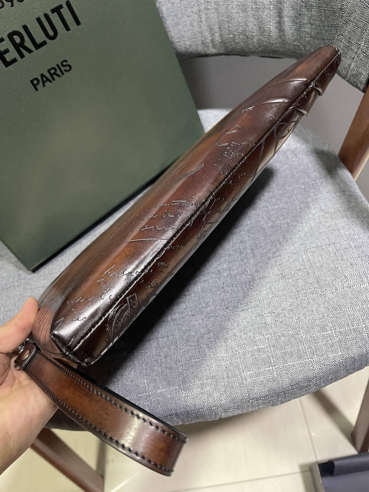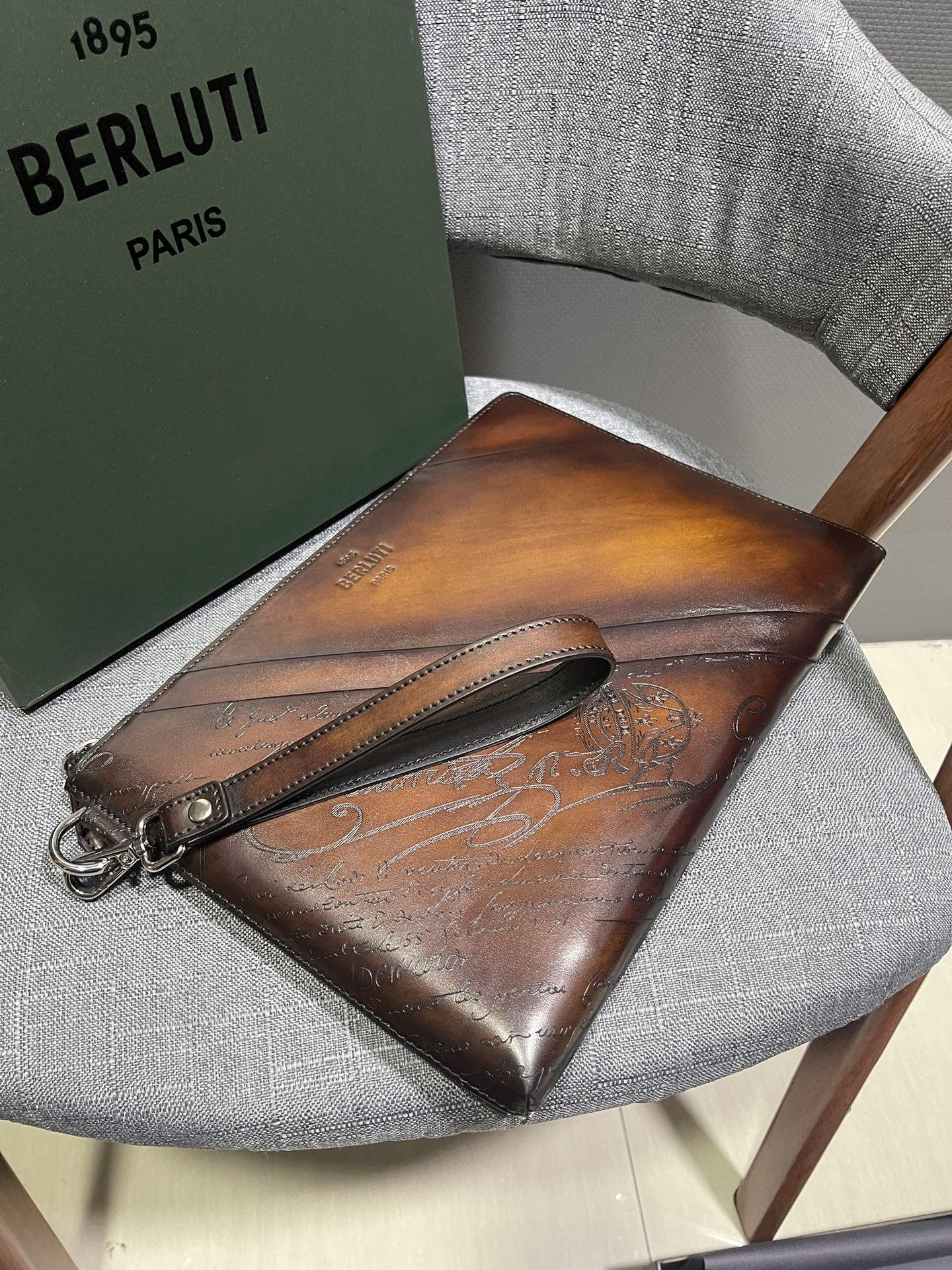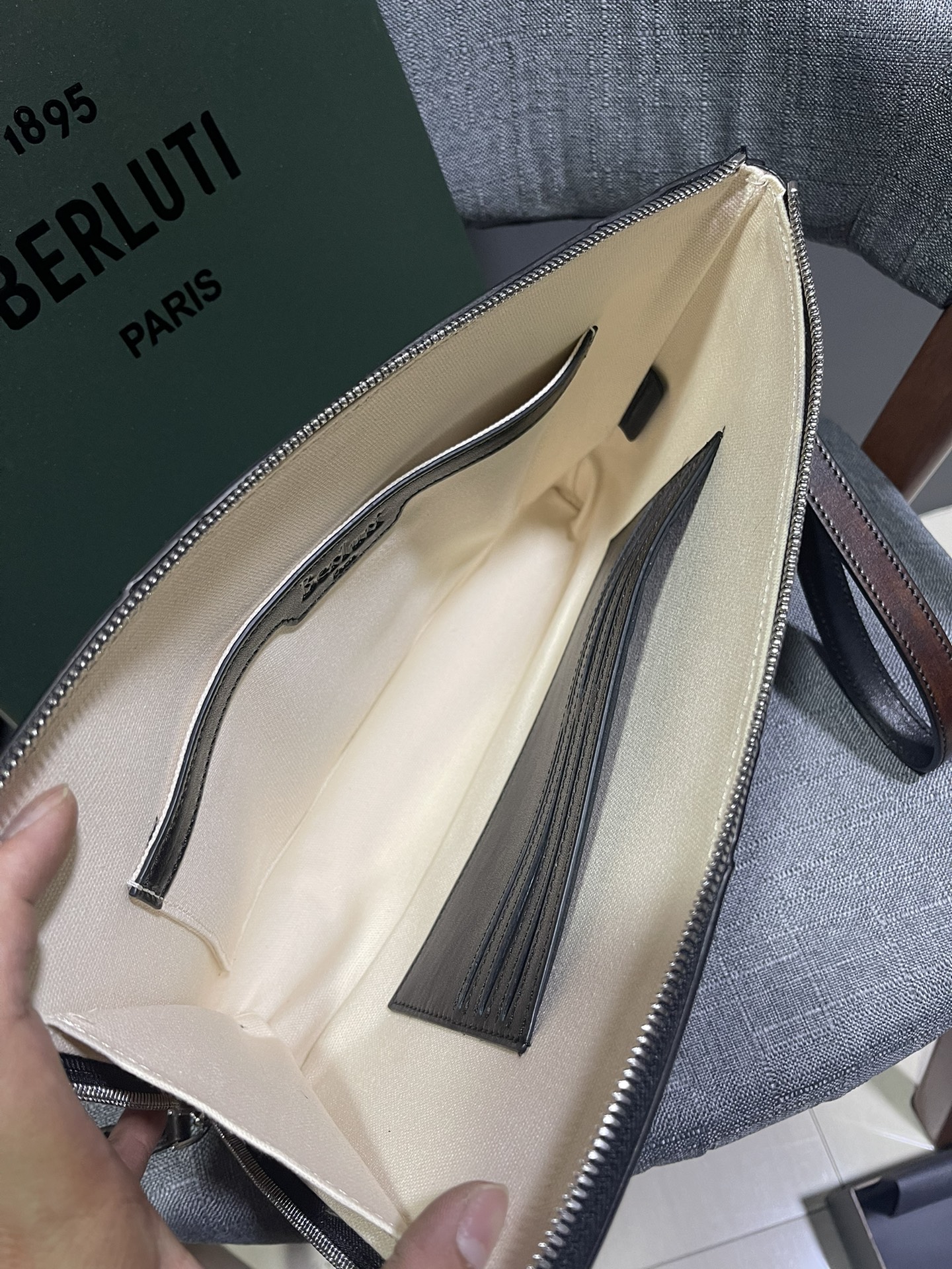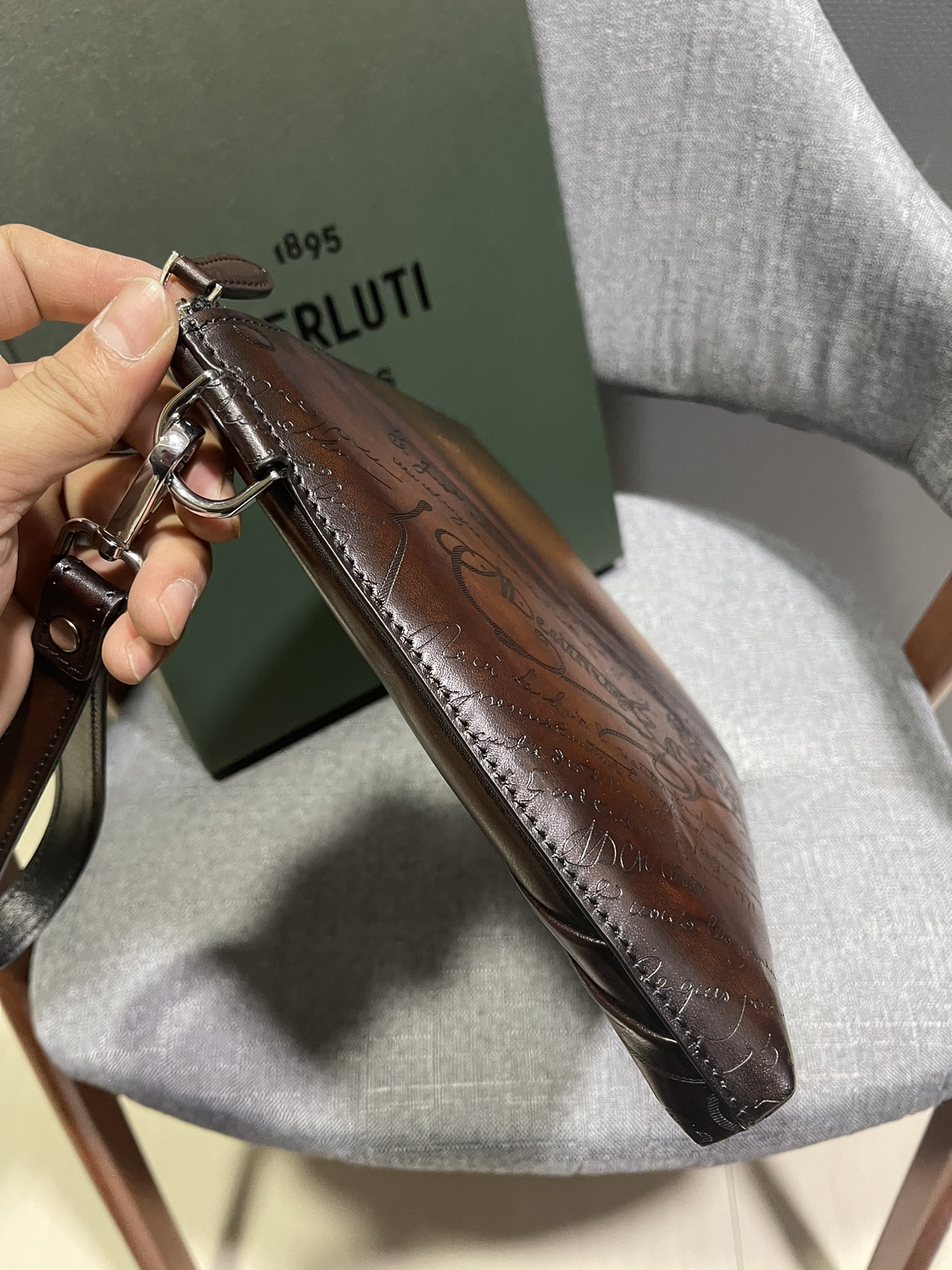 这款包包是AAAAA 1:1 质量 (非常棒). 使用了和原版一模一样的材料. 商标部分也保持了和Berluti一样. 图片拍摄是实物包包拍摄, 您所收到的实物保证和我们图片一模一样.