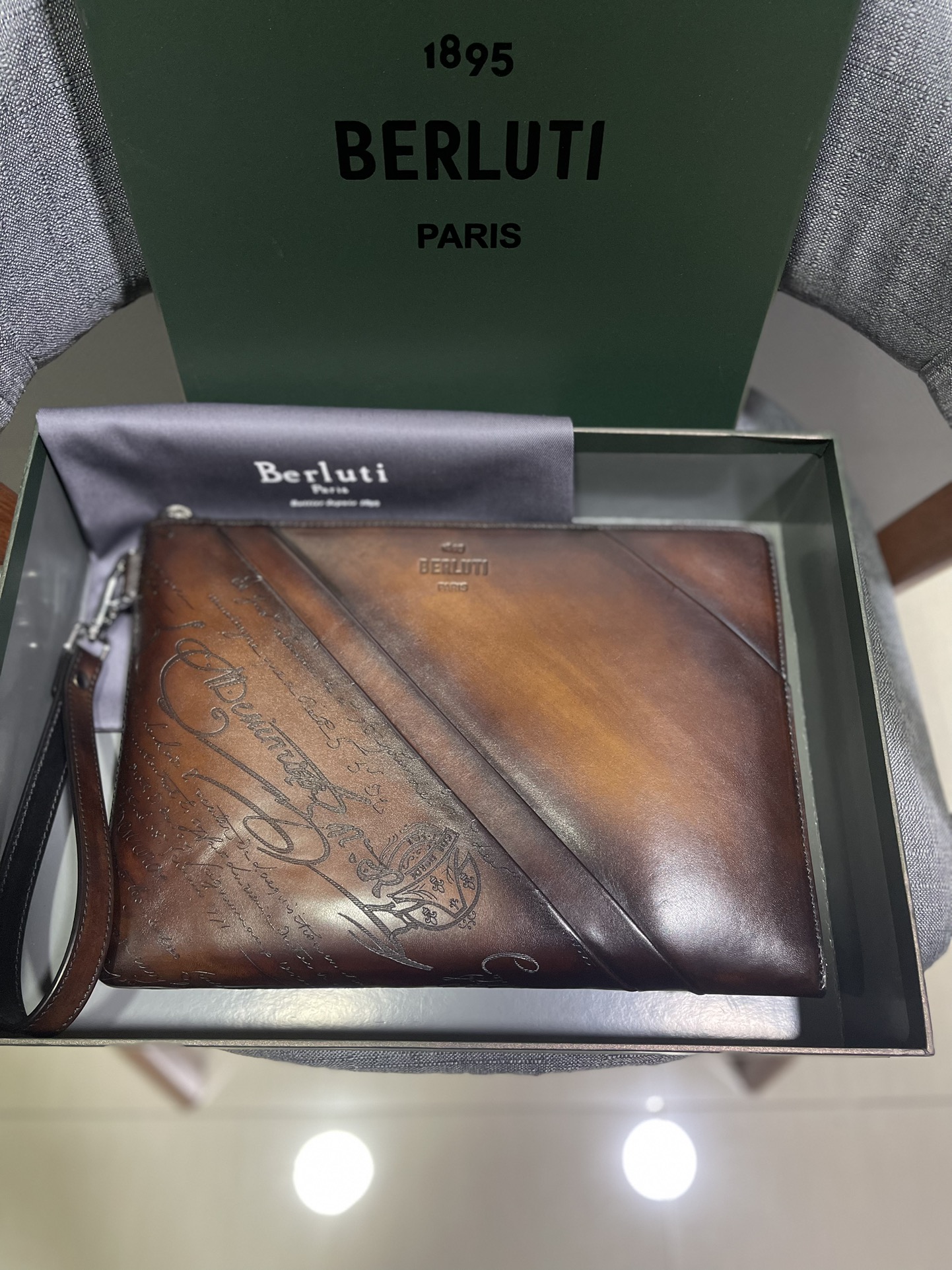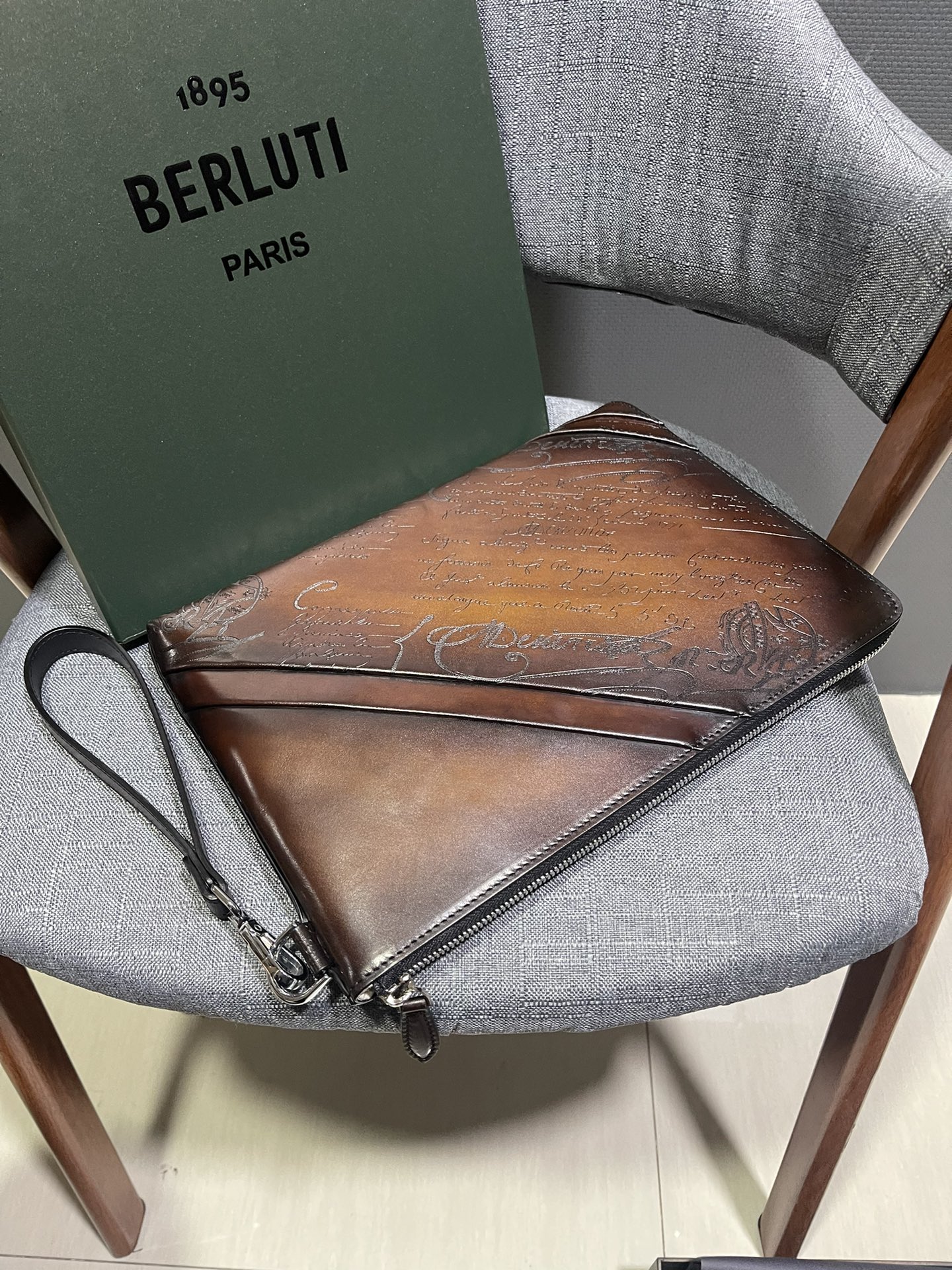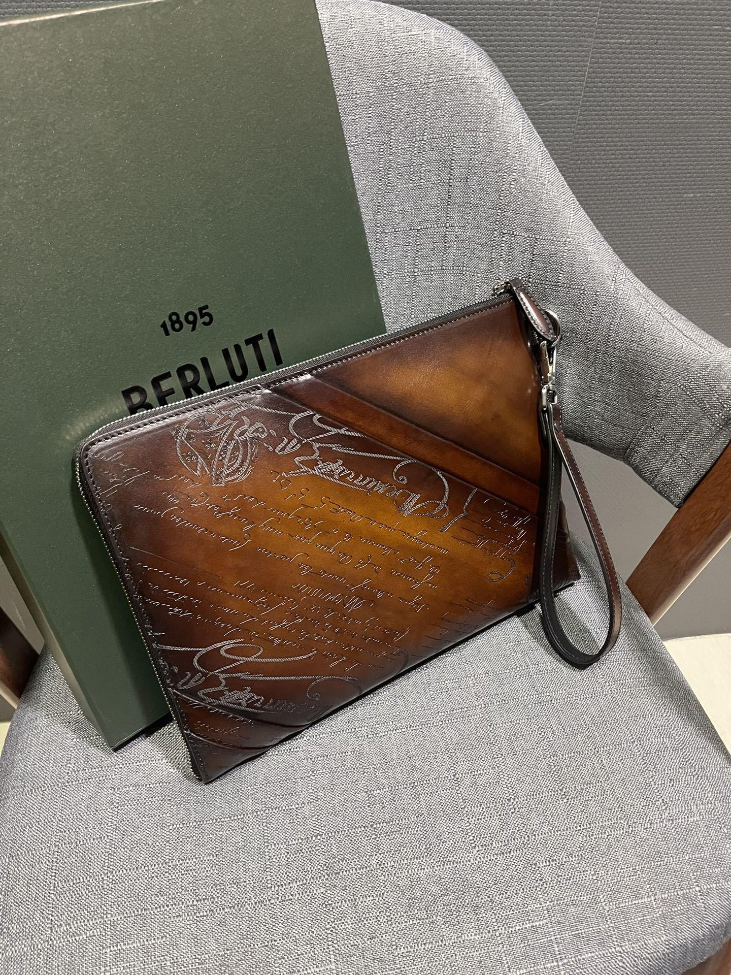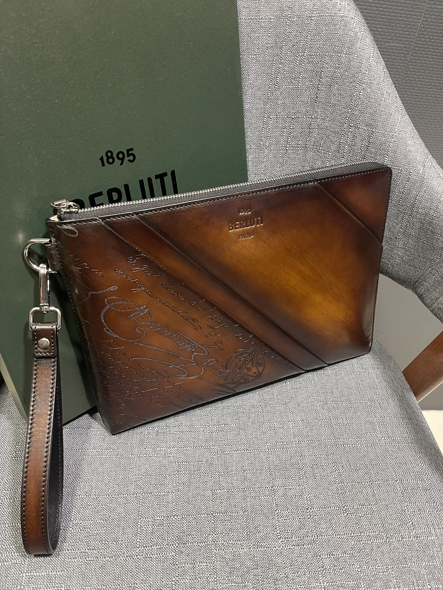 这款包包是AAAAA 1:1 质量 (非常棒). 使用了和原版一模一样的材料. 商标部分也保持了和Berluti一样. 图片拍摄是实物包包拍摄, 您所收到的实物保证和我们图片一模一样.