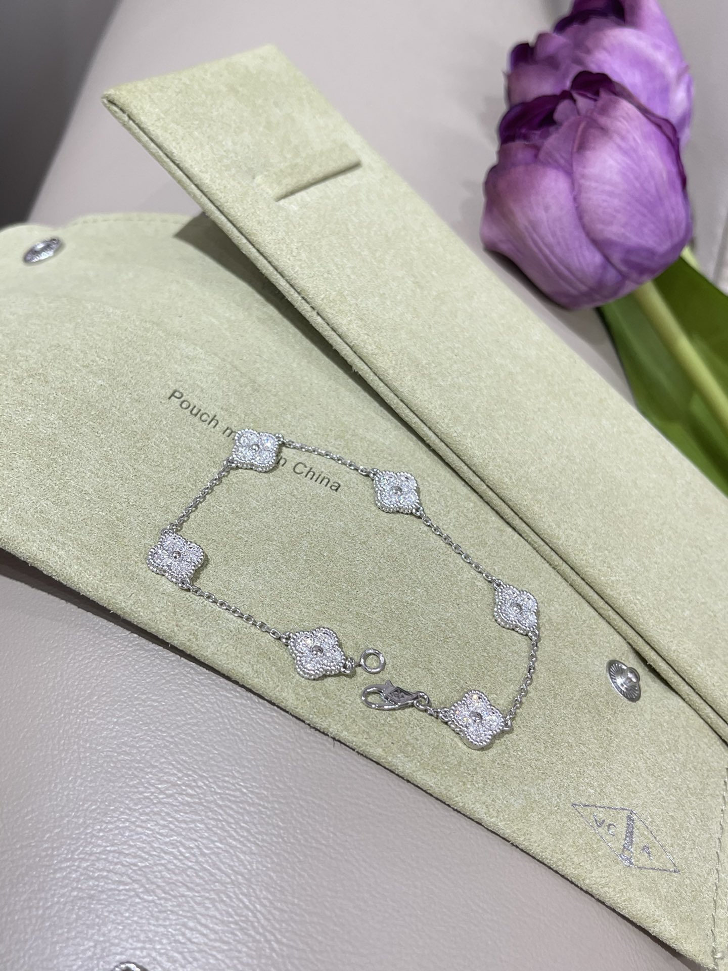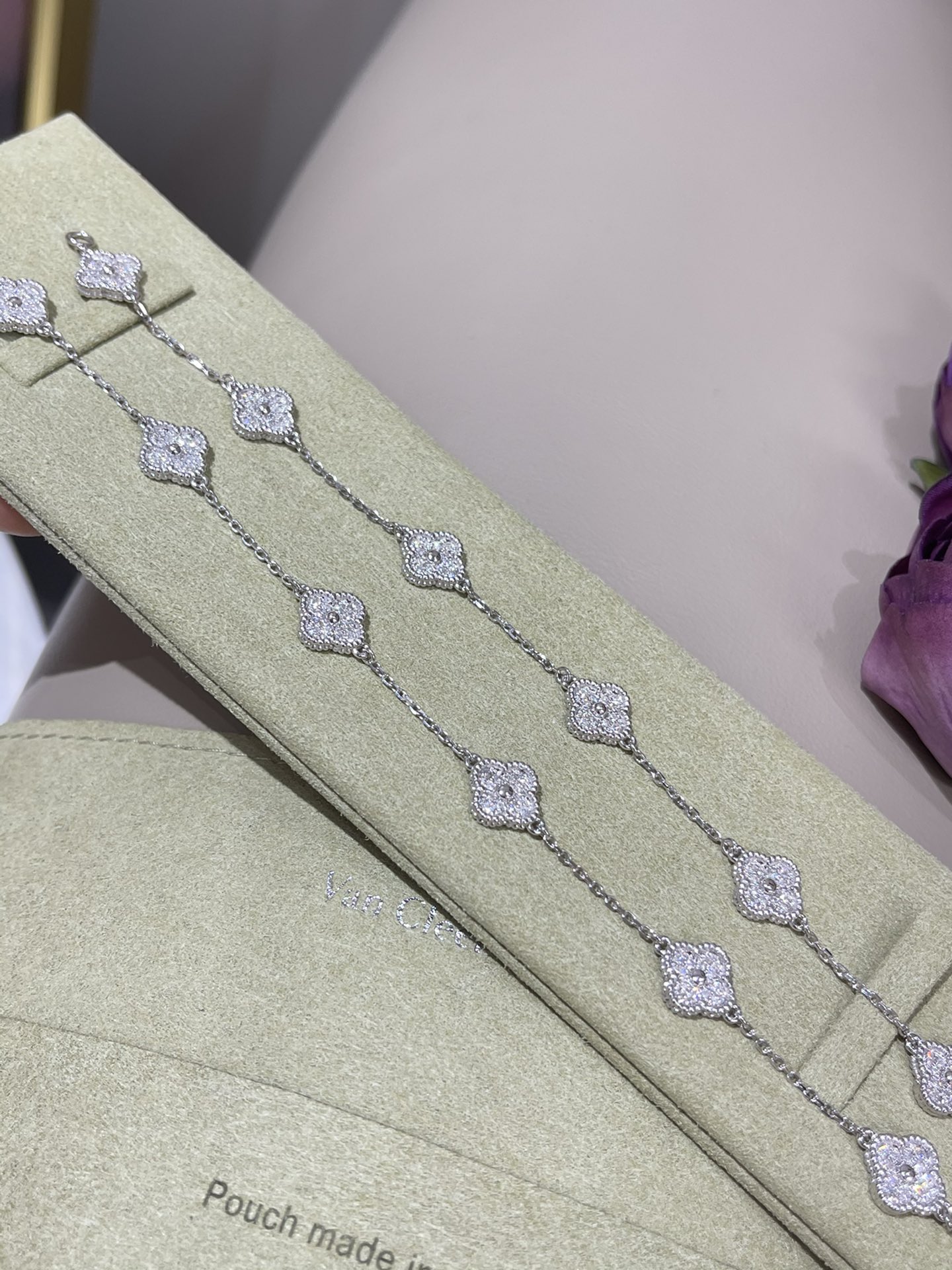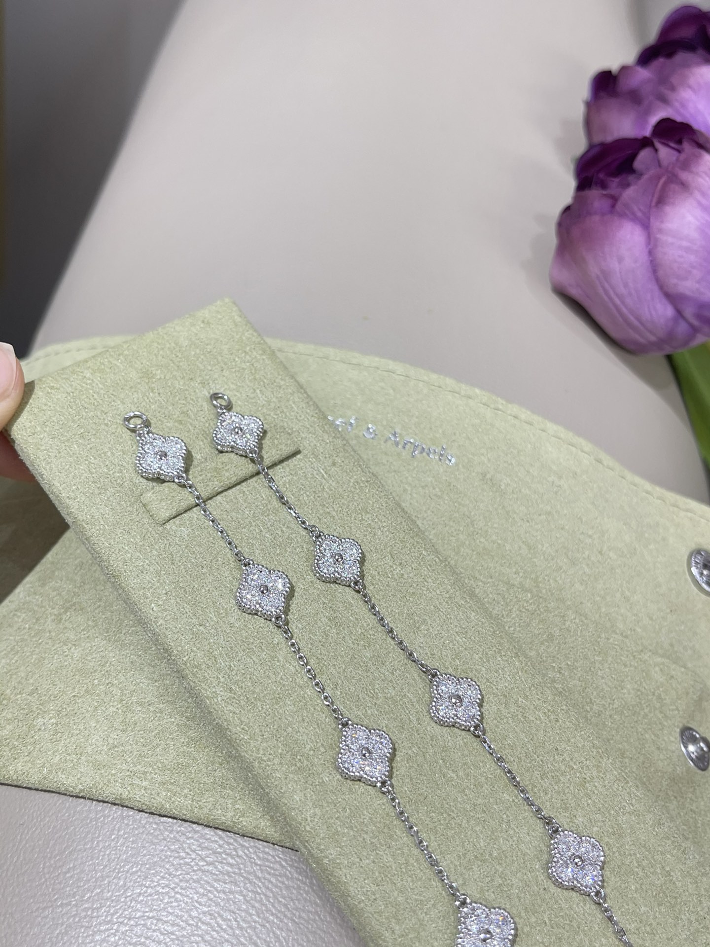 这款首饰是AAAAA 1:1 质量 (非常棒). 使用了和原版一模一样的材料. 商标部分也保持了和梵克雅宝/Van Cleef & Arpels一样. 图片拍摄是实物首饰拍摄, 您所收到的实物保证和我们图片一模一样.