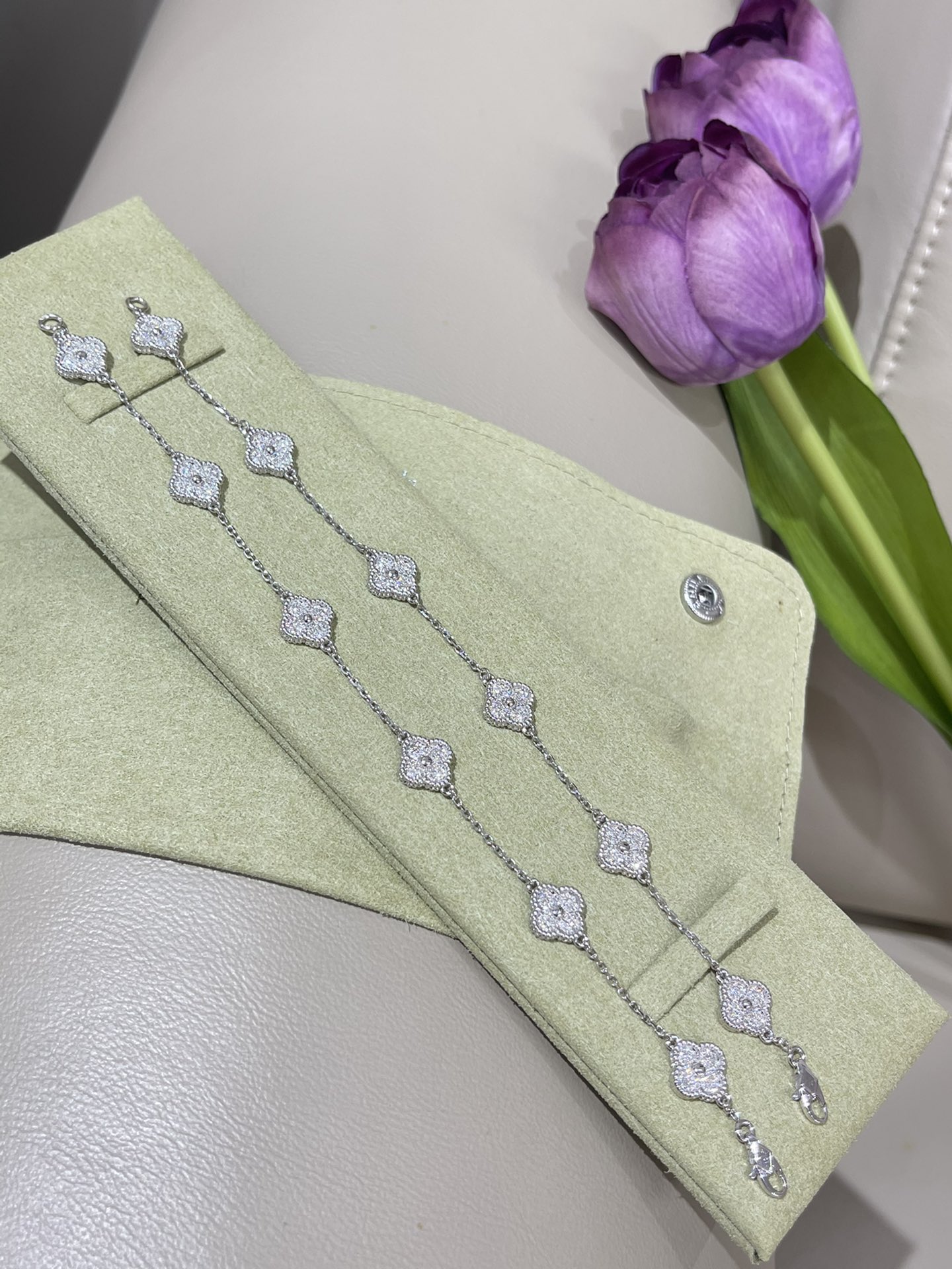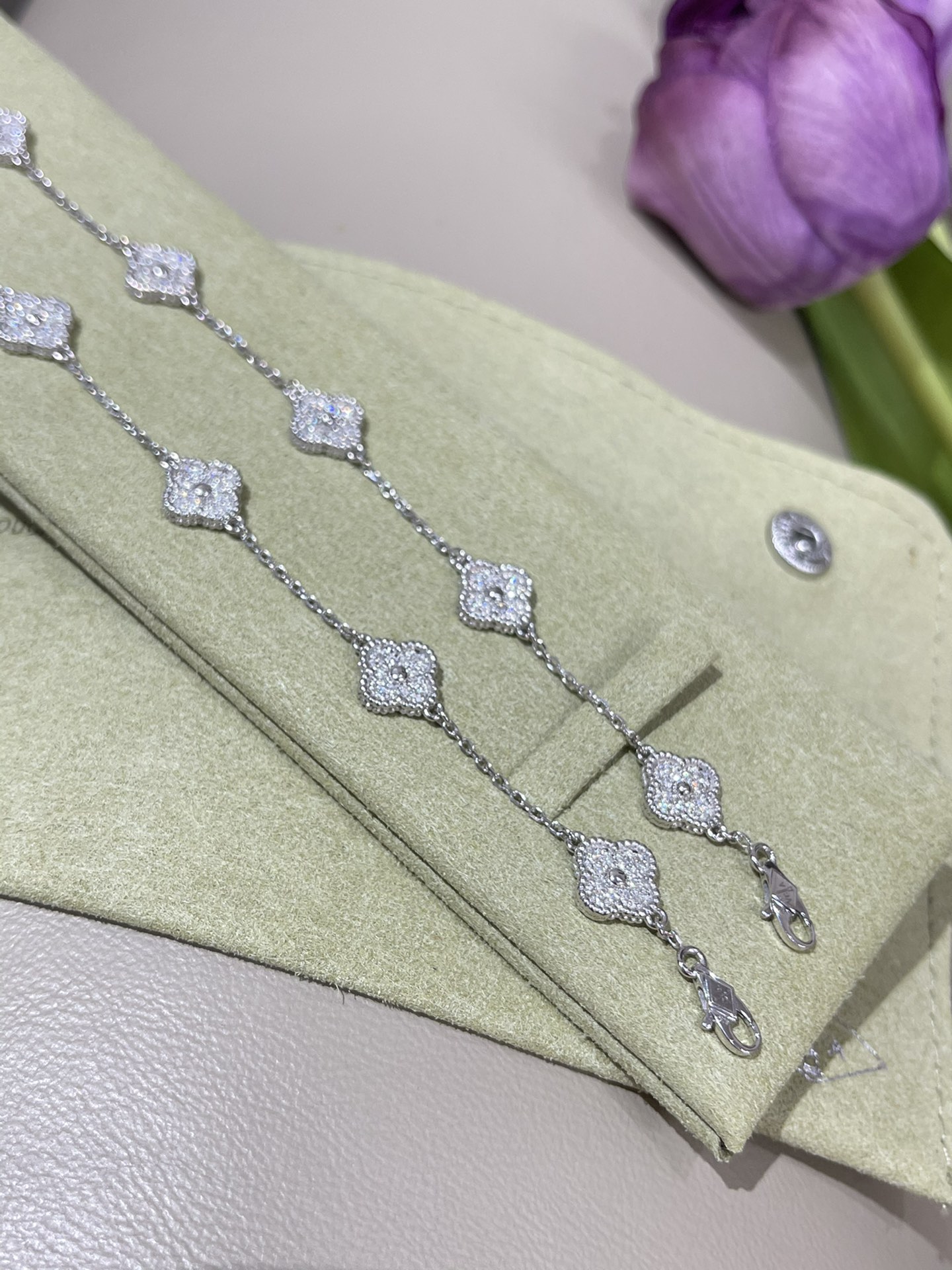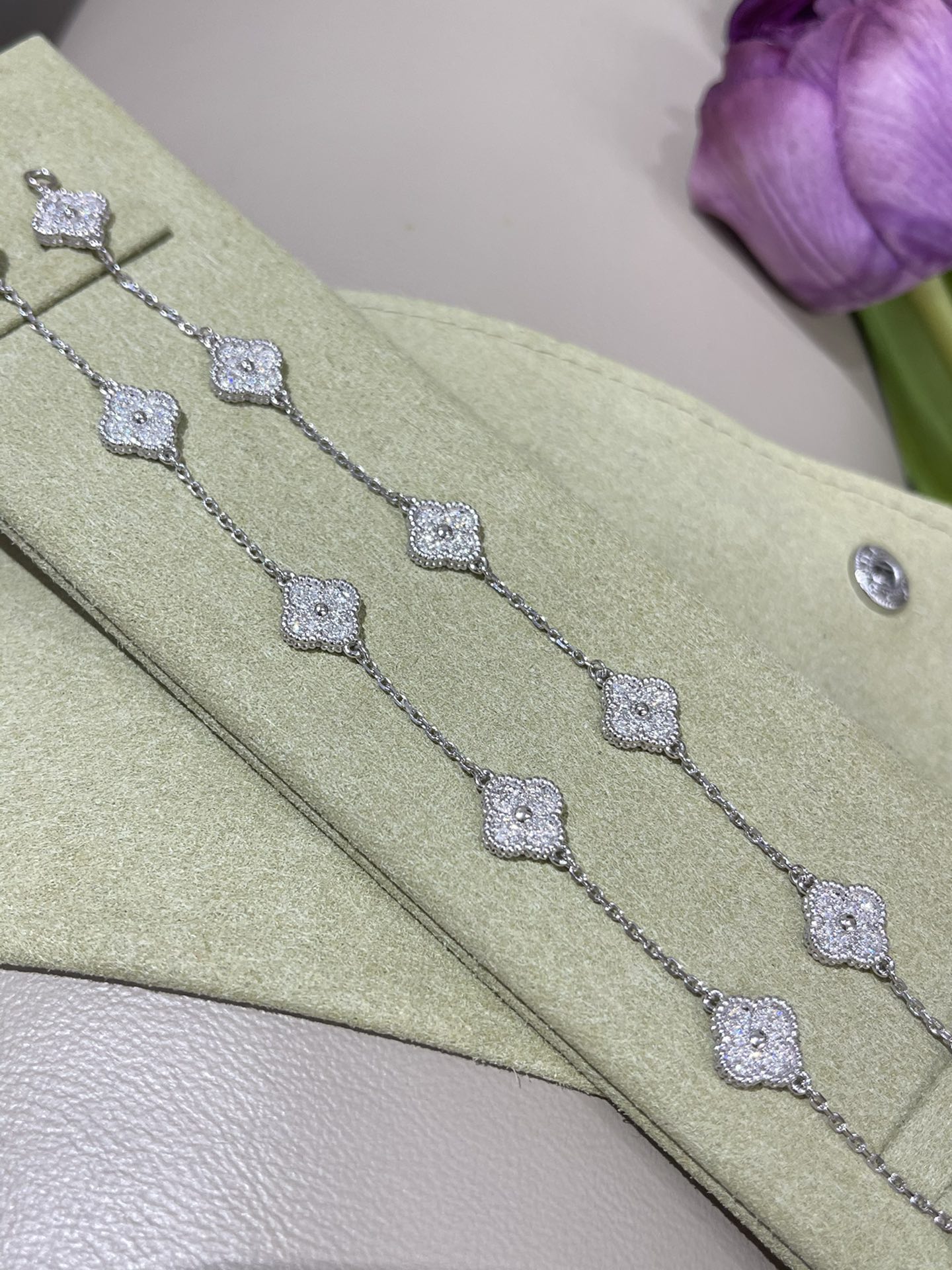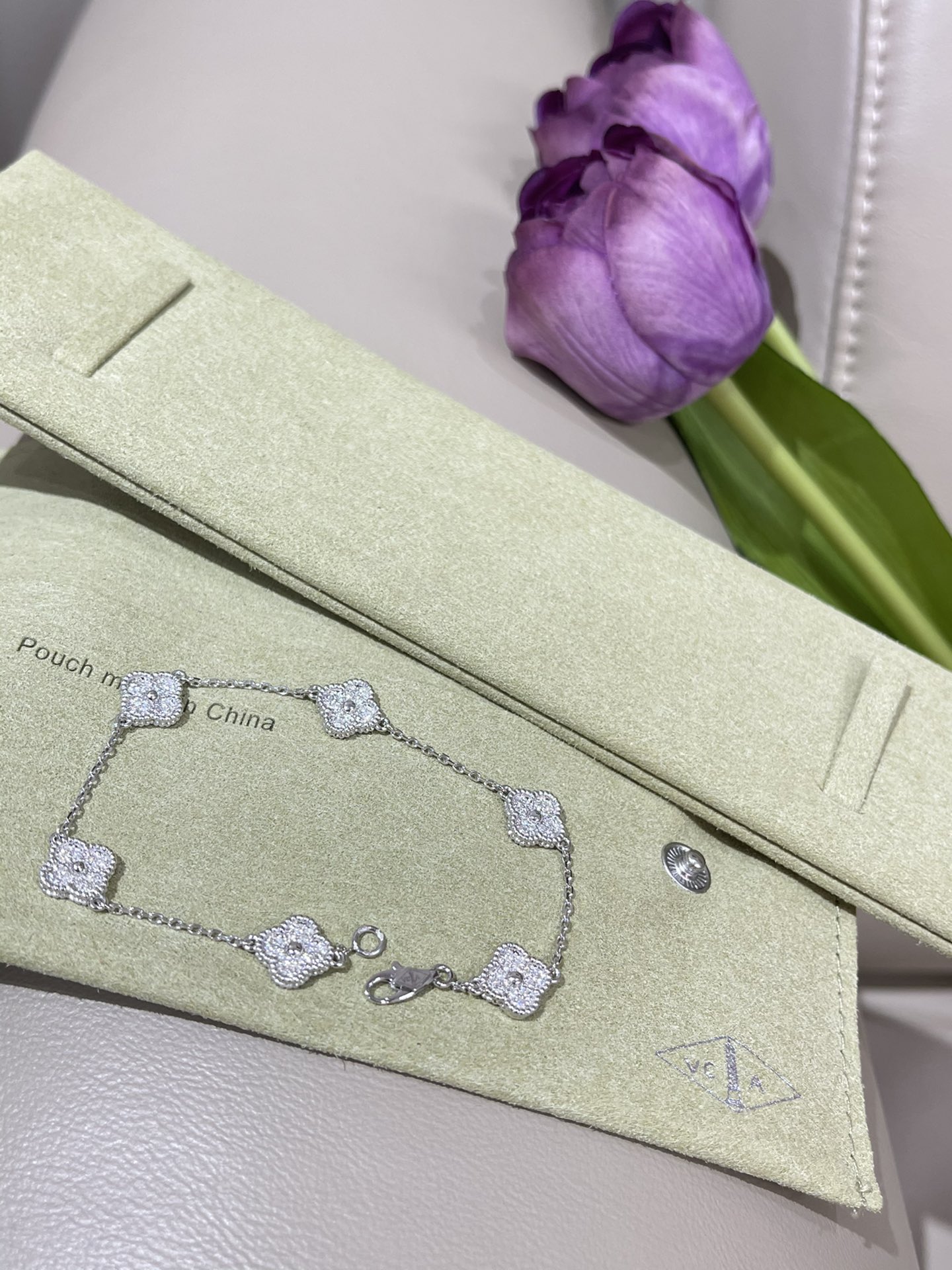 这款首饰是AAAAA 1:1 质量 (非常棒). 使用了和原版一模一样的材料. 商标部分也保持了和梵克雅宝/Van Cleef & Arpels一样. 图片拍摄是实物首饰拍摄, 您所收到的实物保证和我们图片一模一样.