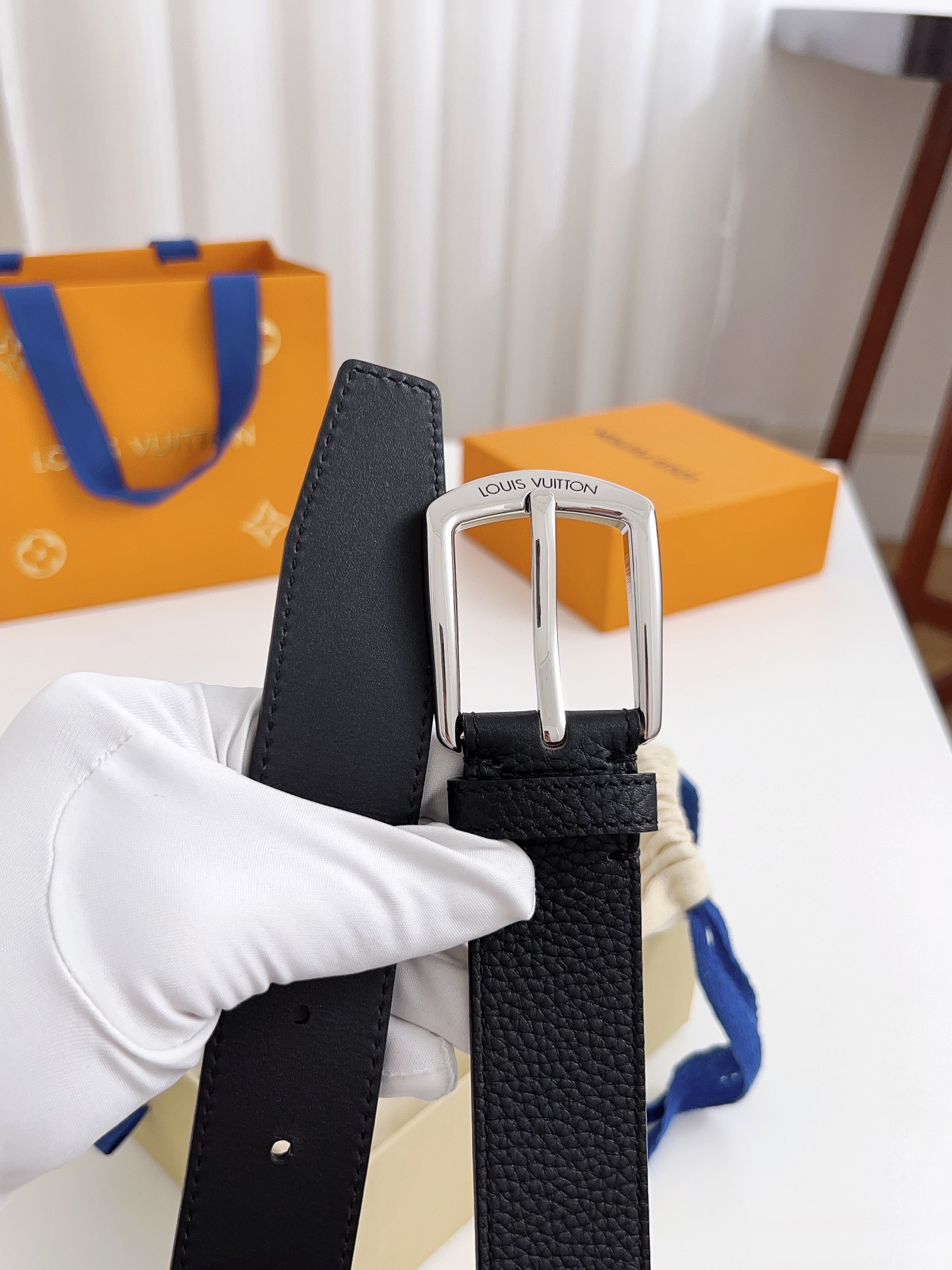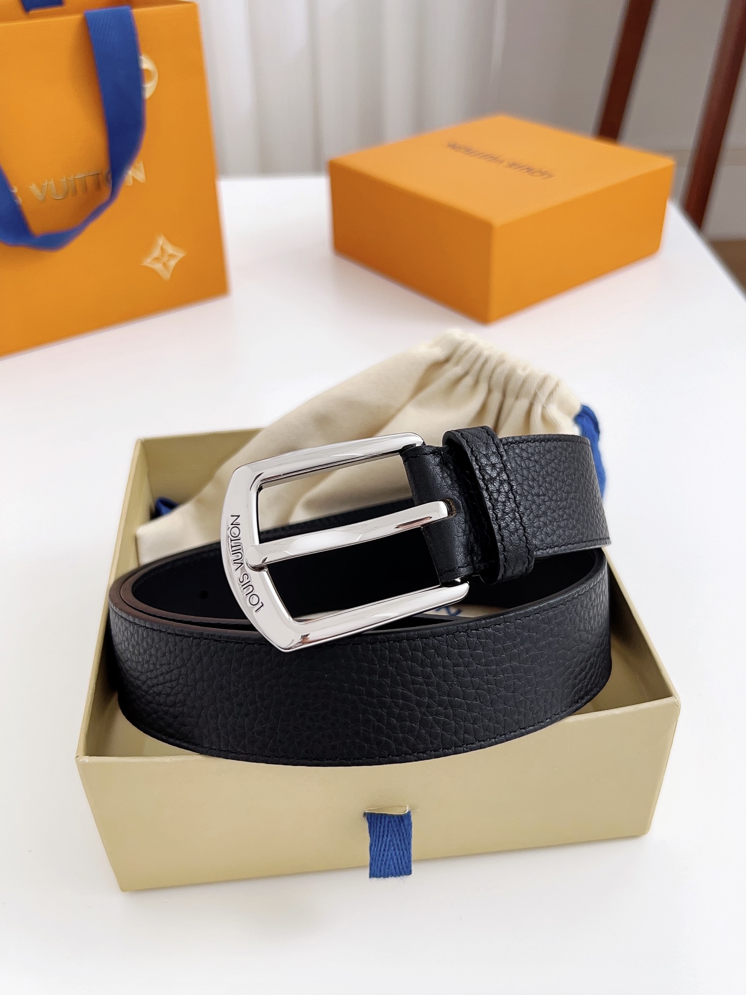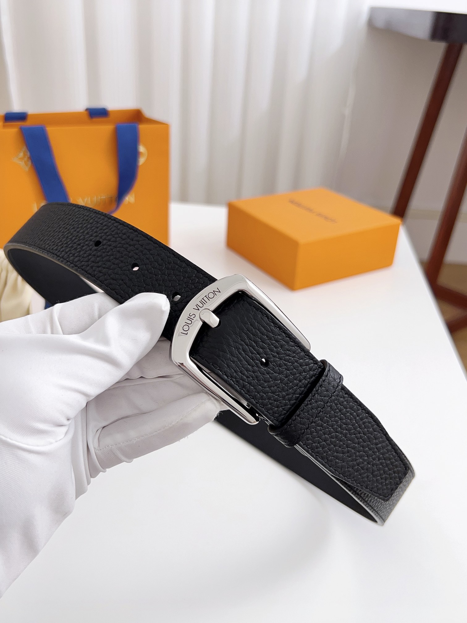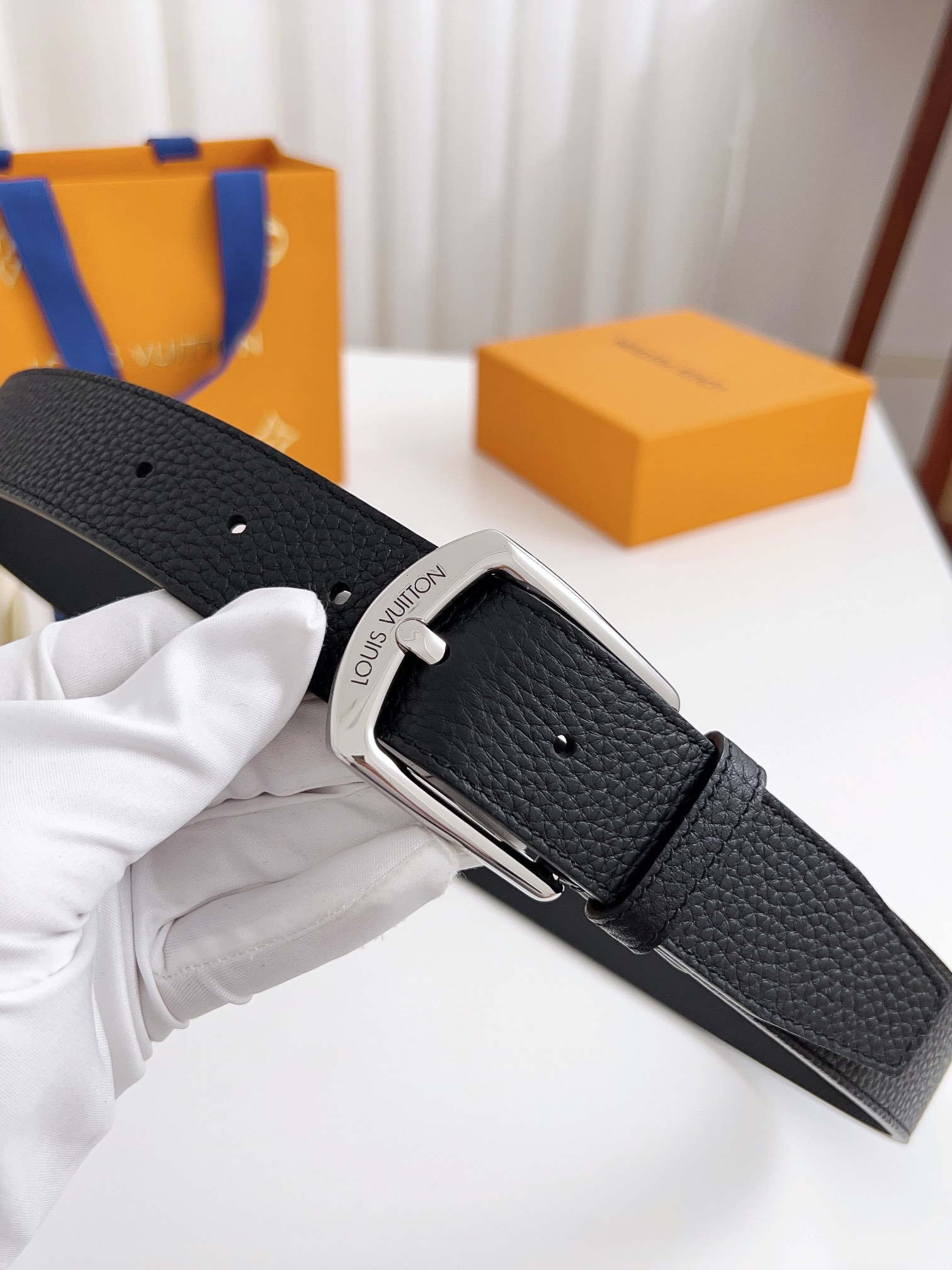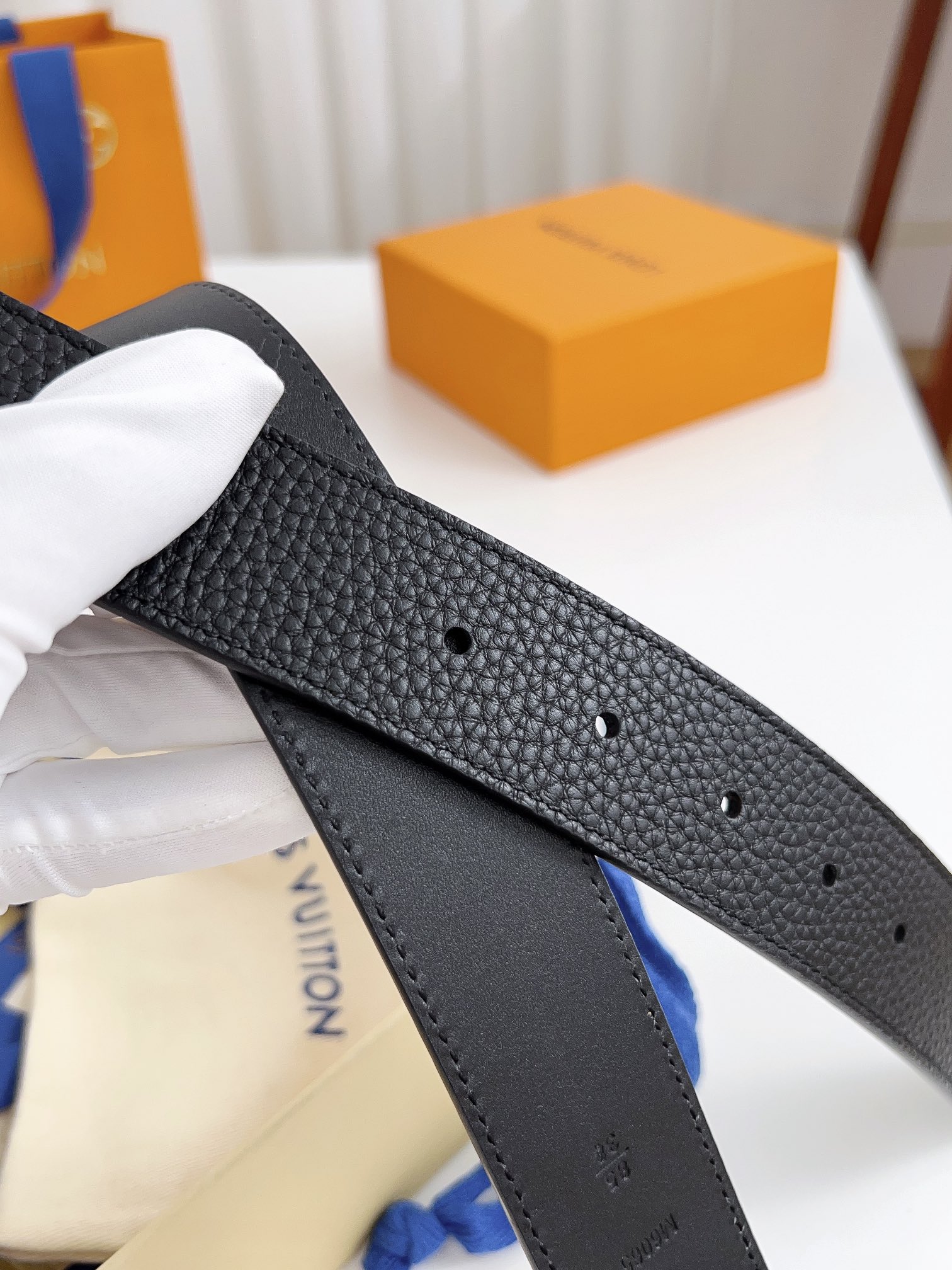 这款皮带是AAAAA 1:1 质量 (非常棒). 使用了和原版一模一样的材料. 商标部分也保持了和路易威登/Louis Vuitton一样. 图片拍摄是实物皮带拍摄, 您所收到的实物保证和我们图片一模一样.