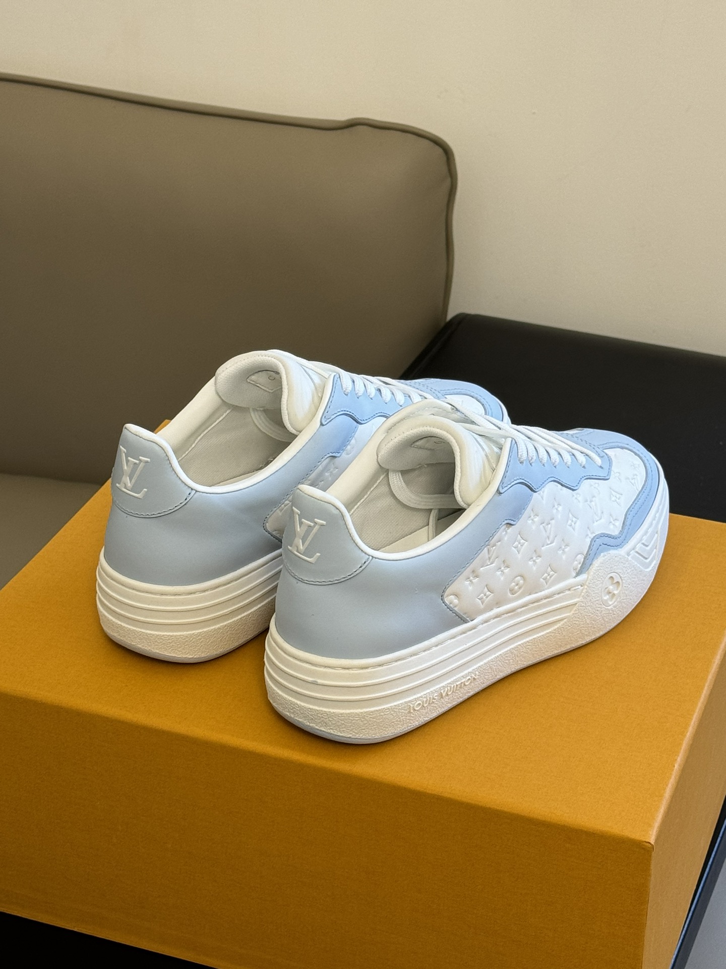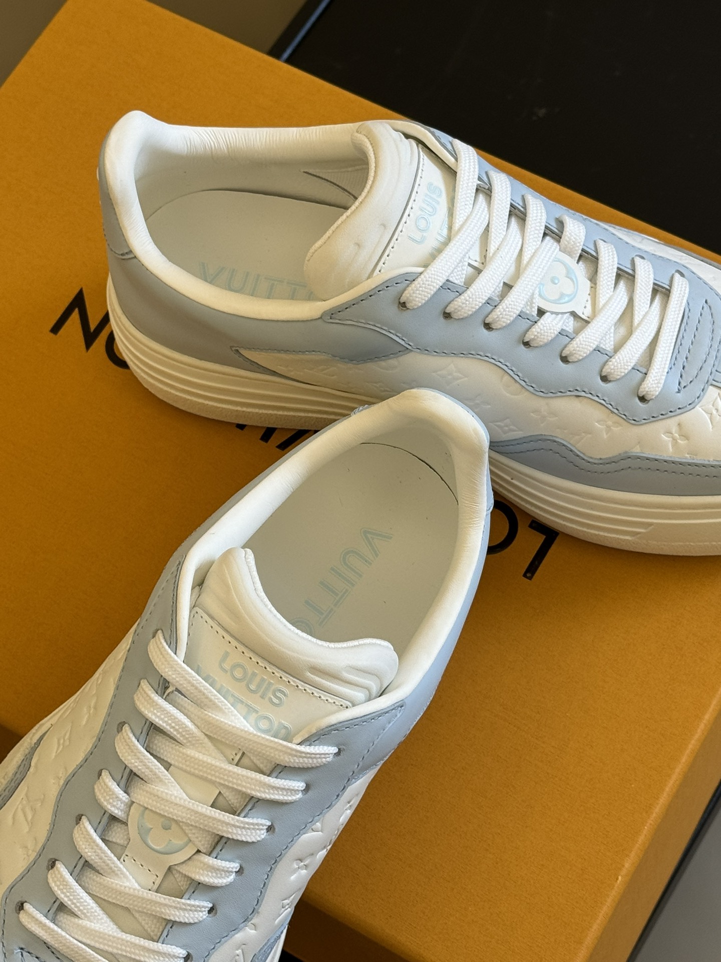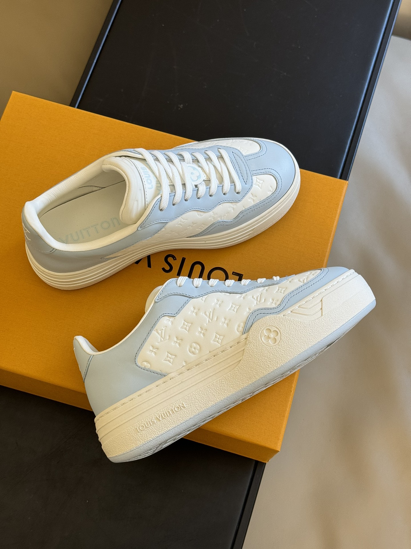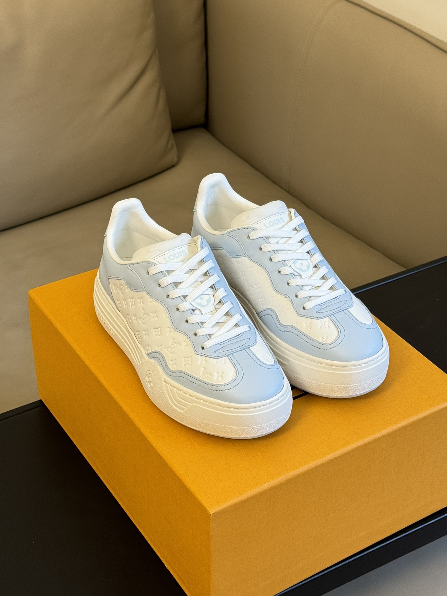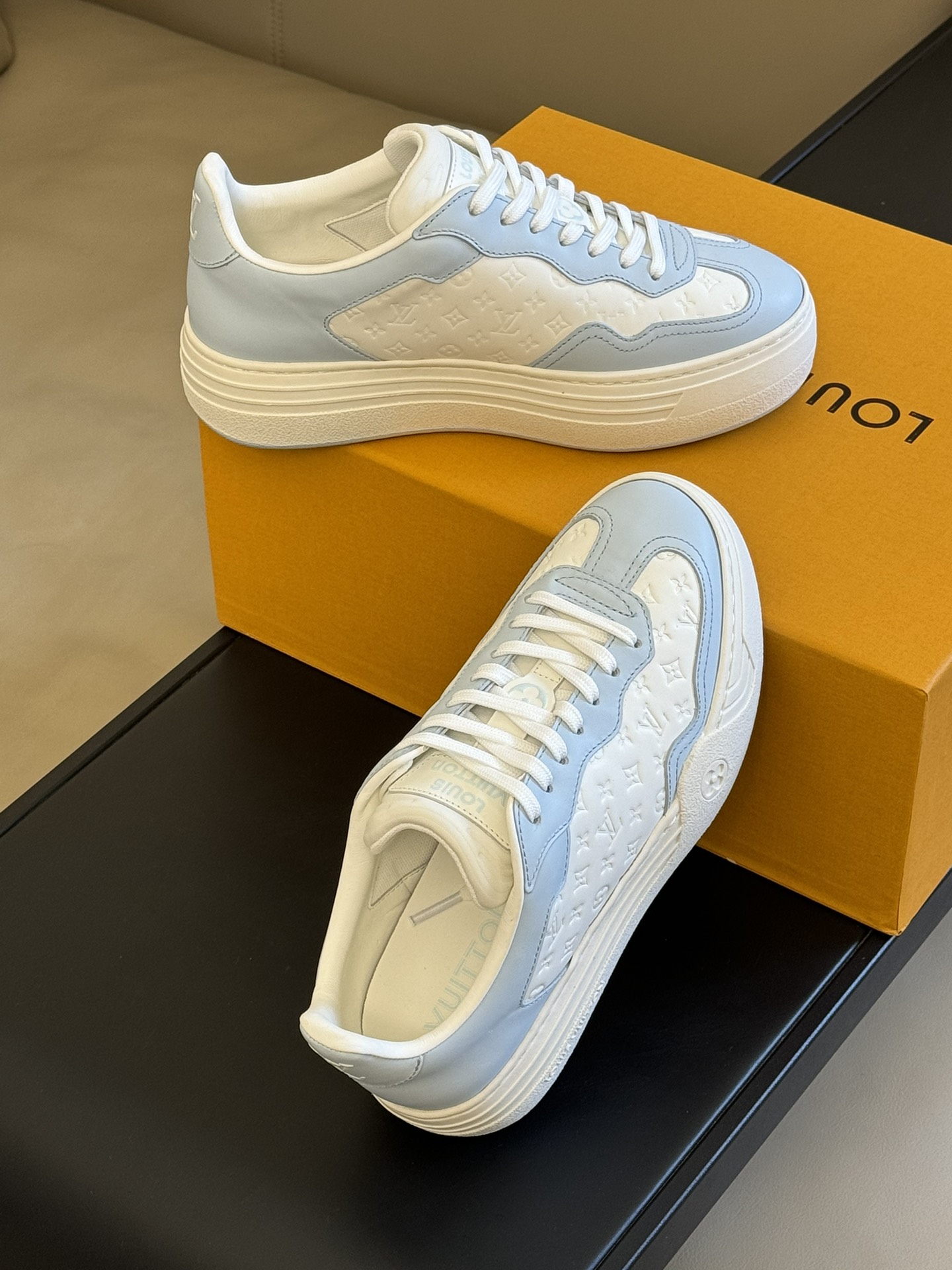 这款鞋子是AAAAA 1:1 质量 (非常棒). 使用了和原版一模一样的材料. 商标部分也保持了和路易威登/Louis Vuitton一样. 图片拍摄是实物鞋子拍摄, 您所收到的实物保证和我们图片一模一样.