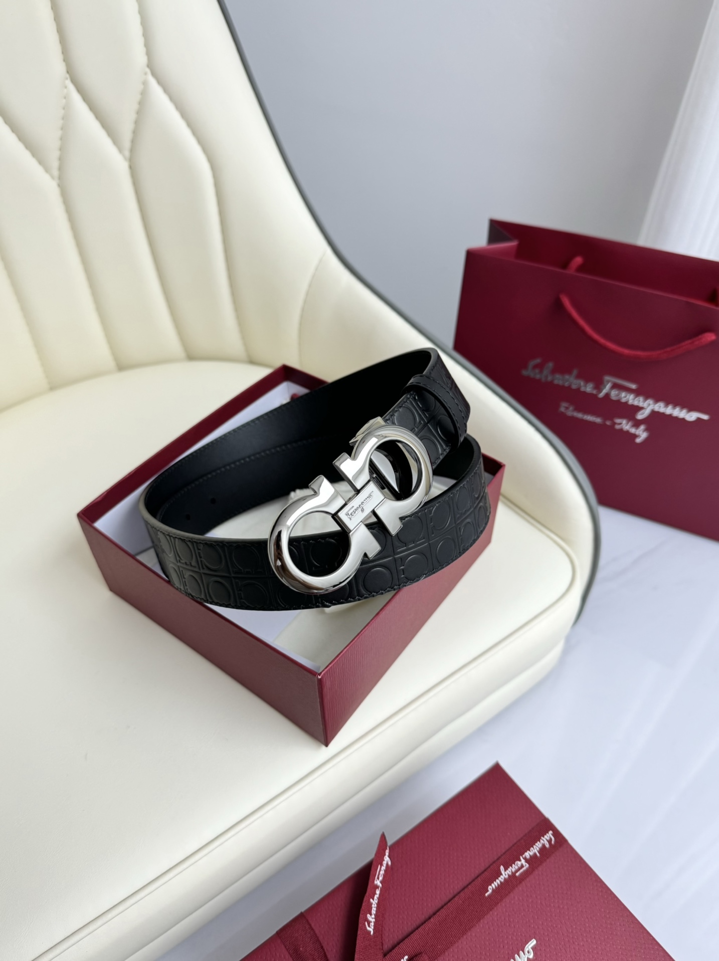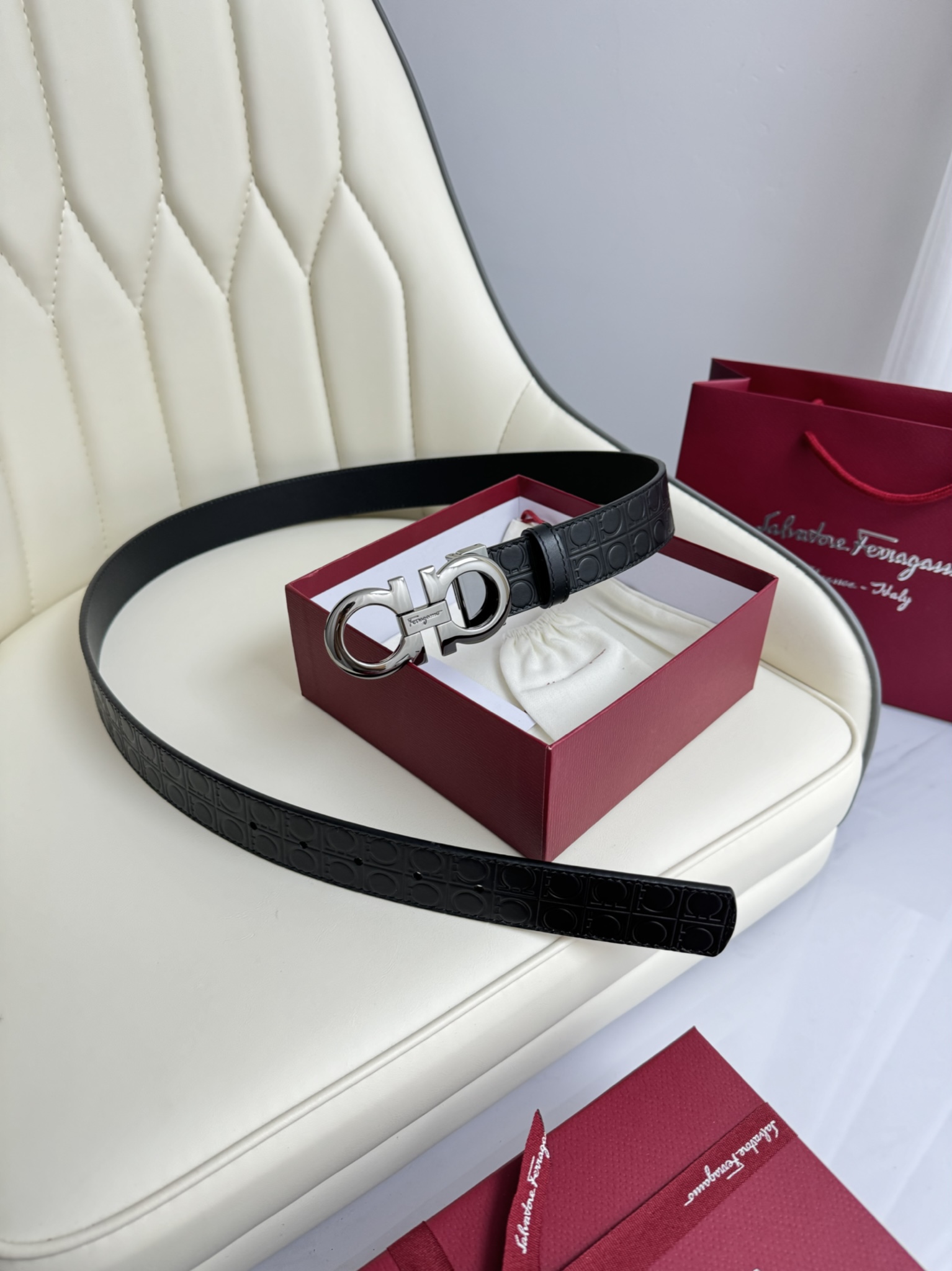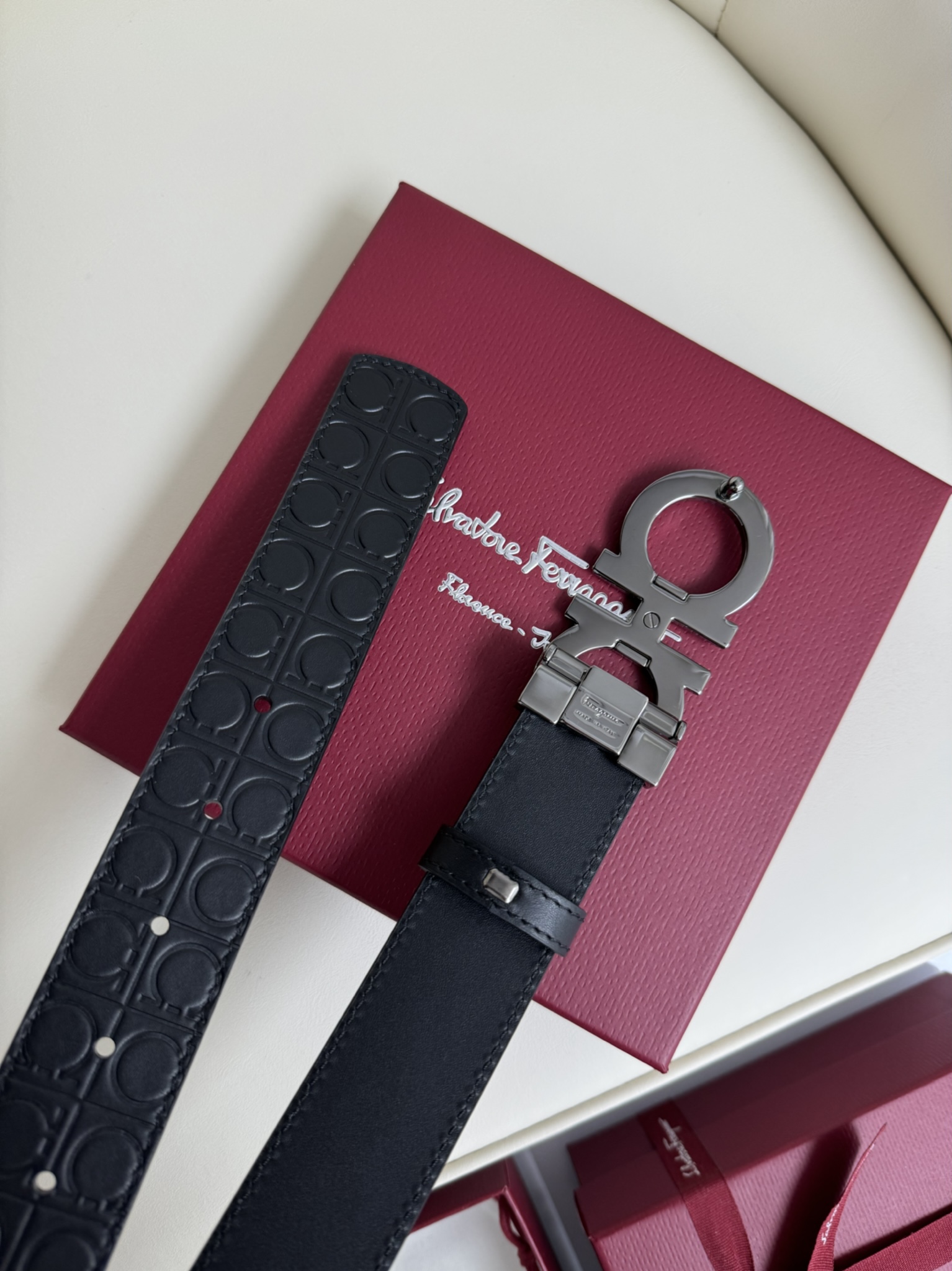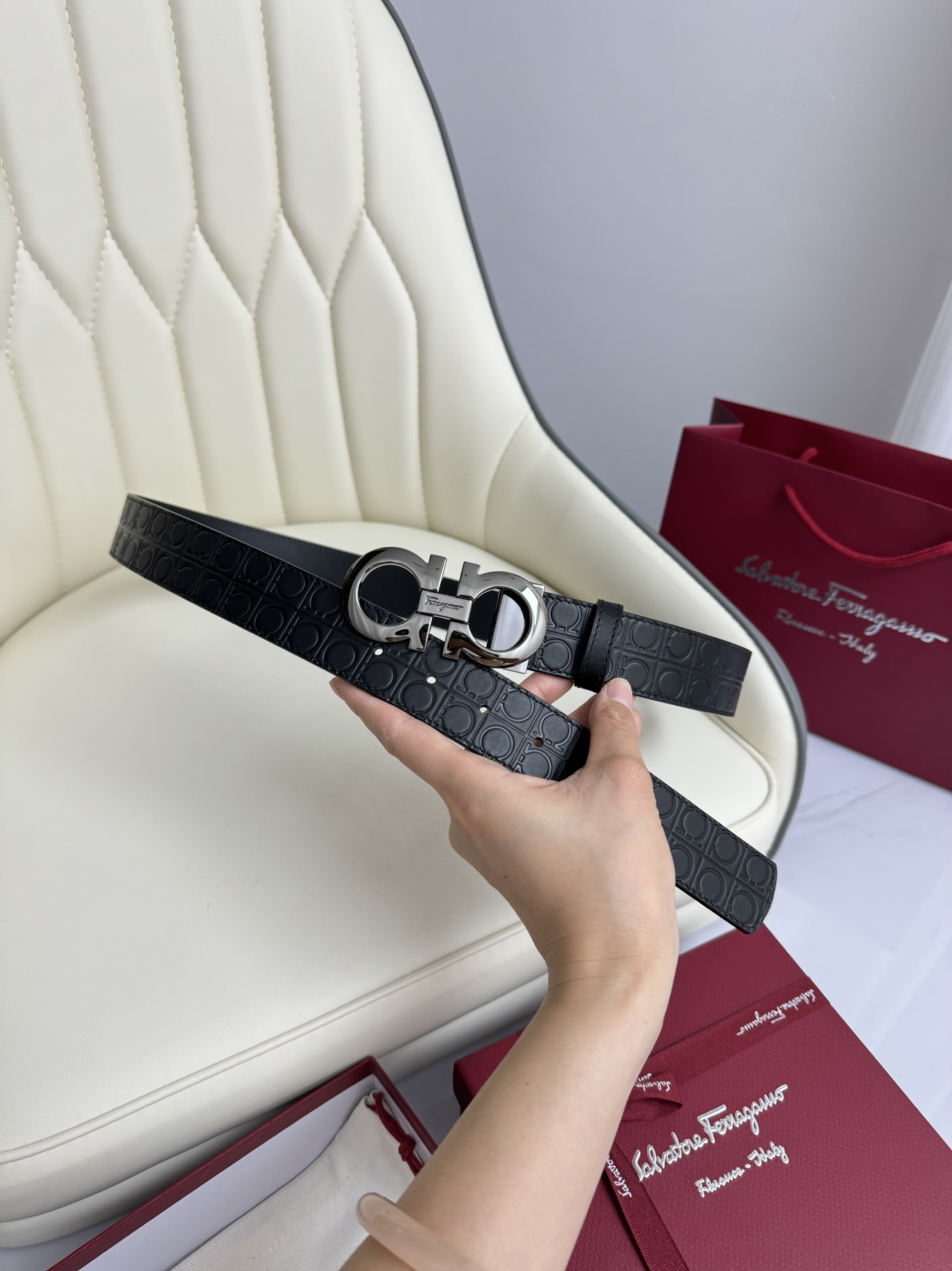 这款皮带是AAAAA 1:1 质量 (非常棒). 使用了和原版一模一样的材料. 商标部分也保持了和菲拉格慕/Salvatore Ferragamo一样. 图片拍摄是实物皮带拍摄, 您所收到的实物保证和我们图片一模一样.