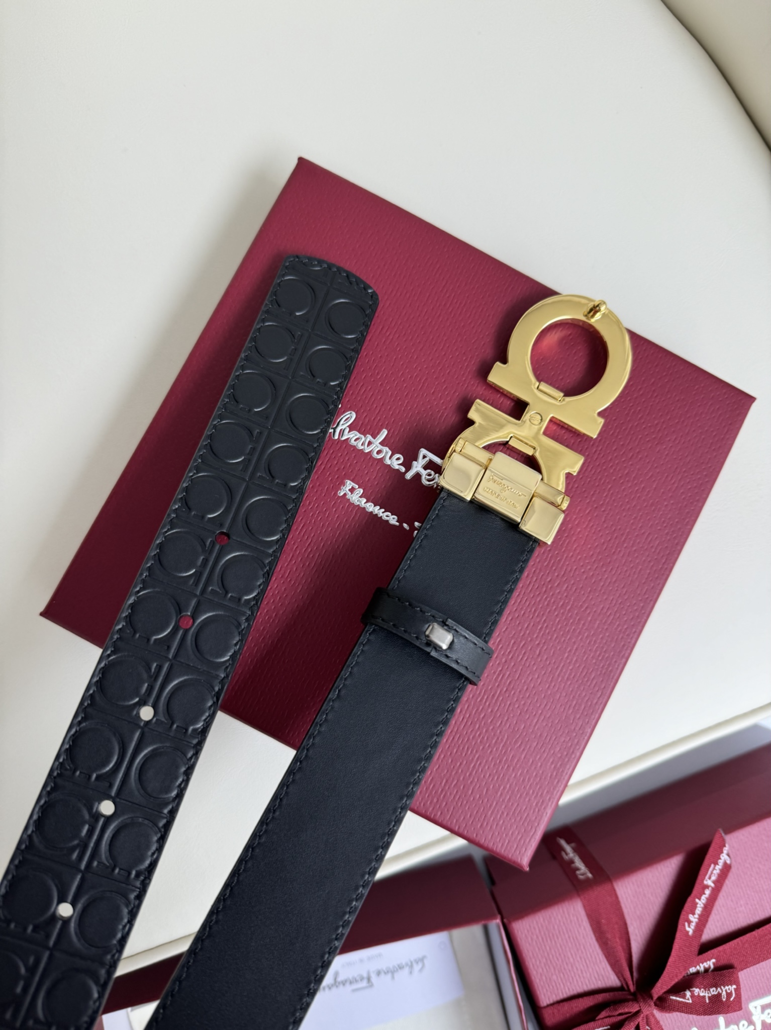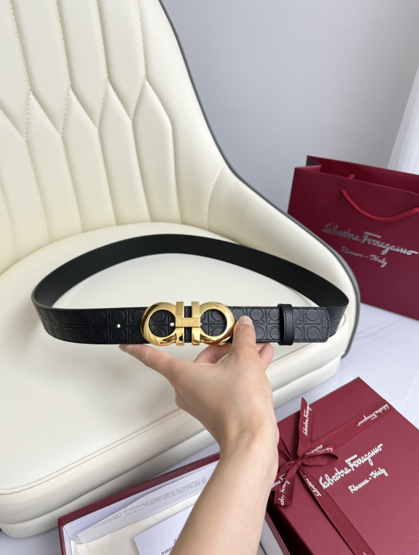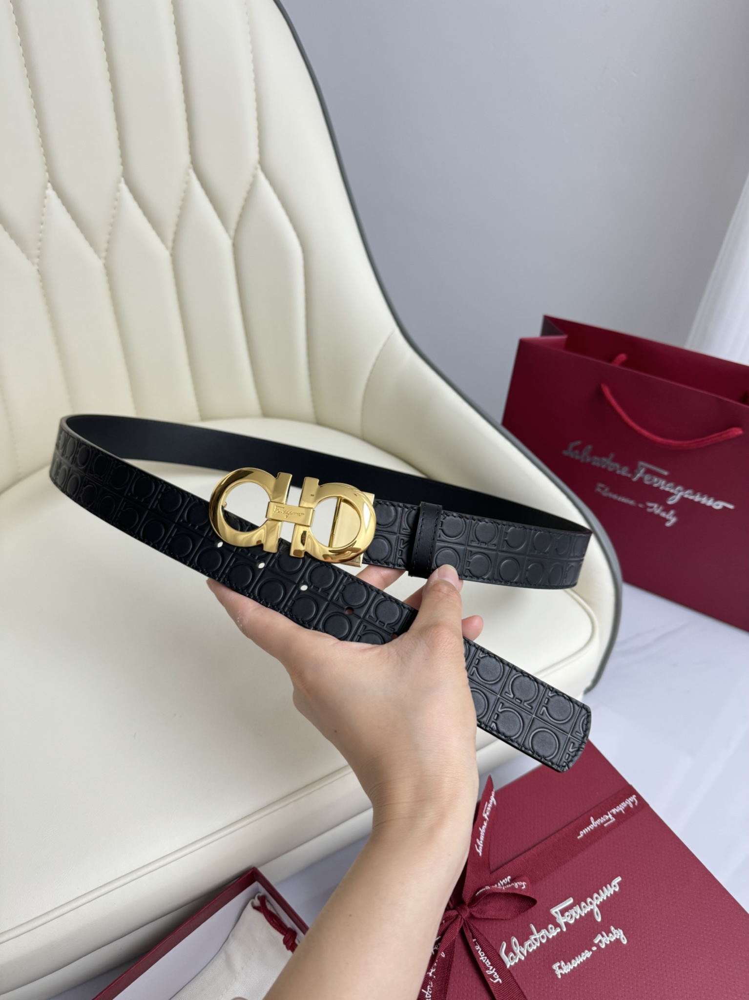 这款皮带是AAAAA 1:1 质量 (非常棒). 使用了和原版一模一样的材料. 商标部分也保持了和菲拉格慕/Salvatore Ferragamo一样. 图片拍摄是实物皮带拍摄, 您所收到的实物保证和我们图片一模一样.