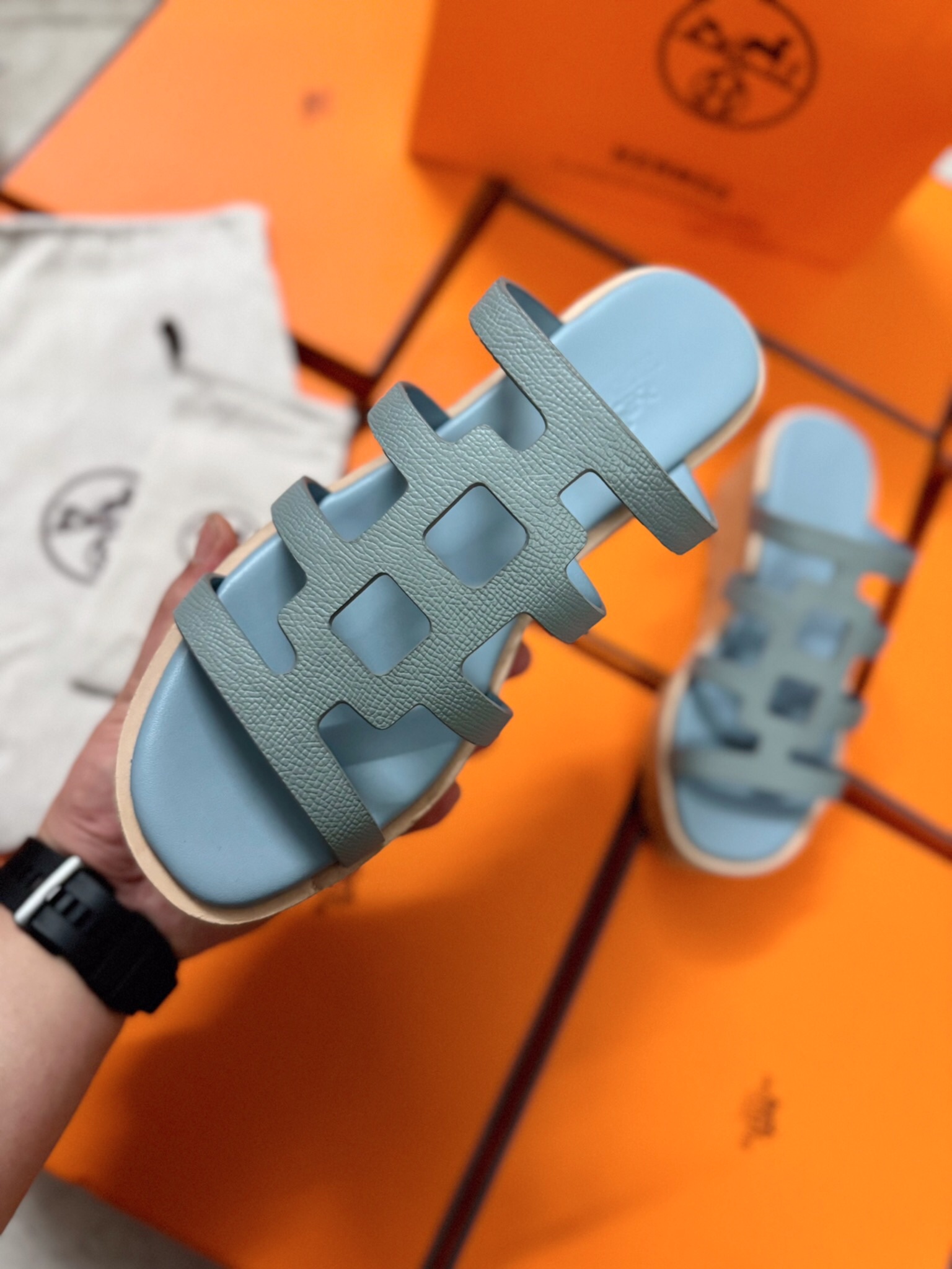 这款鞋子是AAAAA 1:1 质量 (非常棒). 使用了和原版一模一样的材料. 商标部分也保持了和爱马仕/Hermes一样. 图片拍摄是实物鞋子拍摄, 您所收到的实物保证和我们图片一模一样.