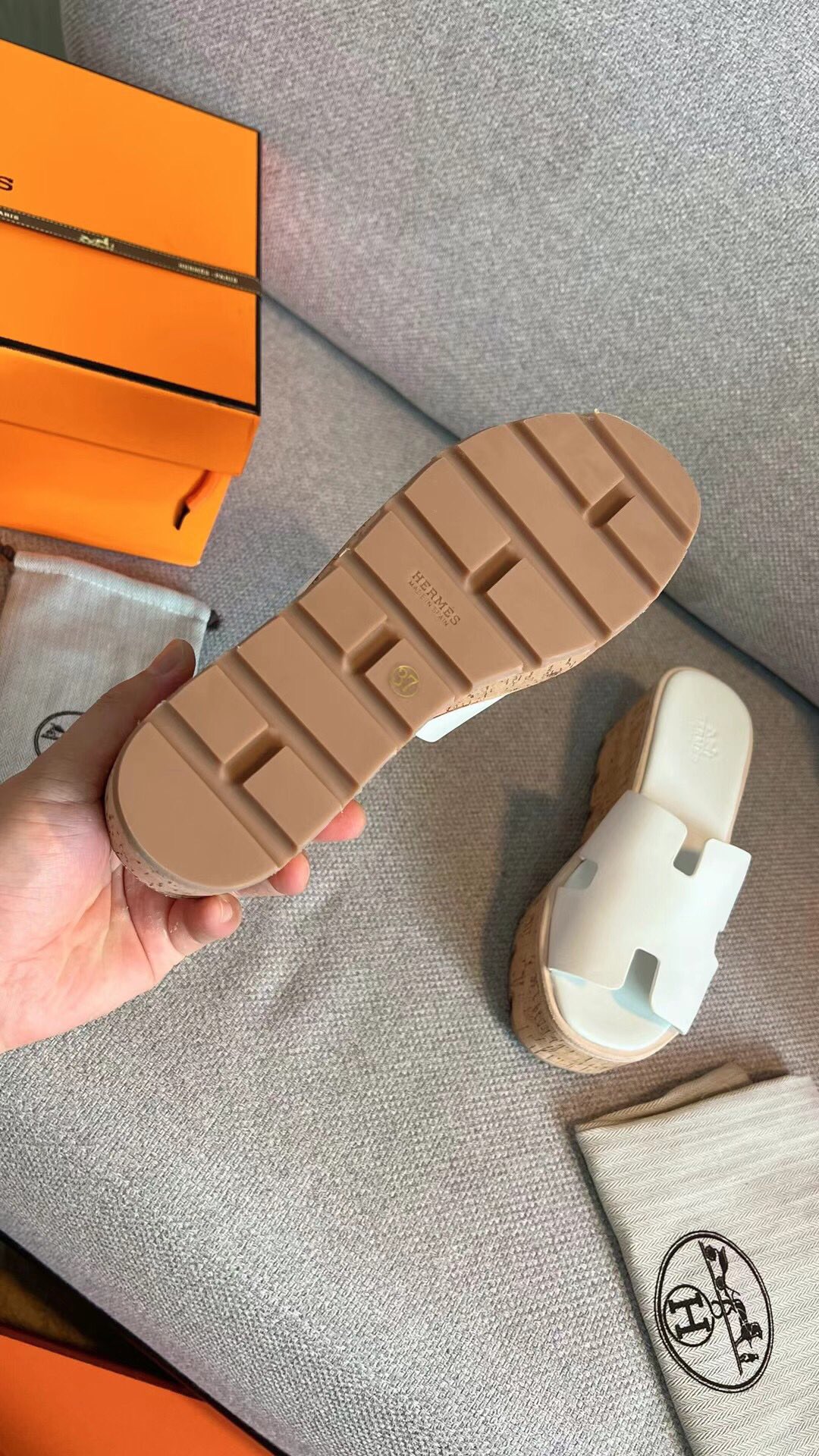 这款鞋子是AAAAA 1:1 质量 (非常棒). 使用了和原版一模一样的材料. 商标部分也保持了和爱马仕/Hermes一样. 图片拍摄是实物鞋子拍摄, 您所收到的实物保证和我们图片一模一样.