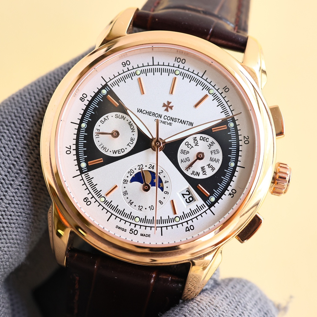 这款手表是AAAAA 1:1 质量 (非常棒). 使用了和原版一模一样的材料. 商标部分也保持了和江诗丹顿/Vacheron Constantin一样. 图片拍摄是实物手表拍摄, 您所收到的实物保证和我们图片一模一样.