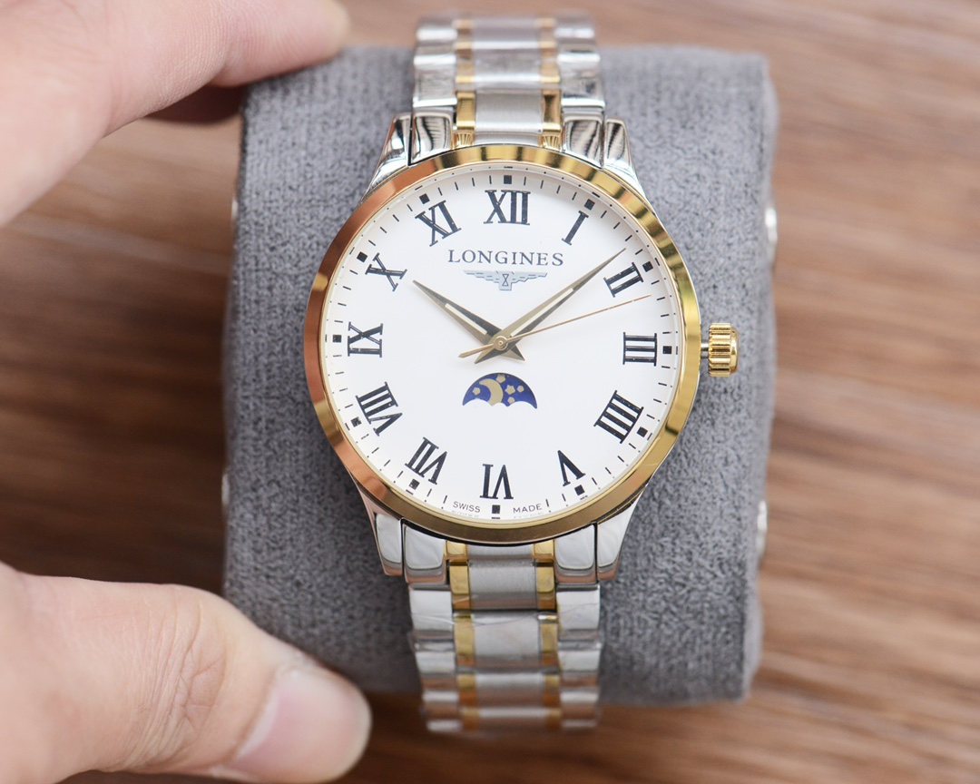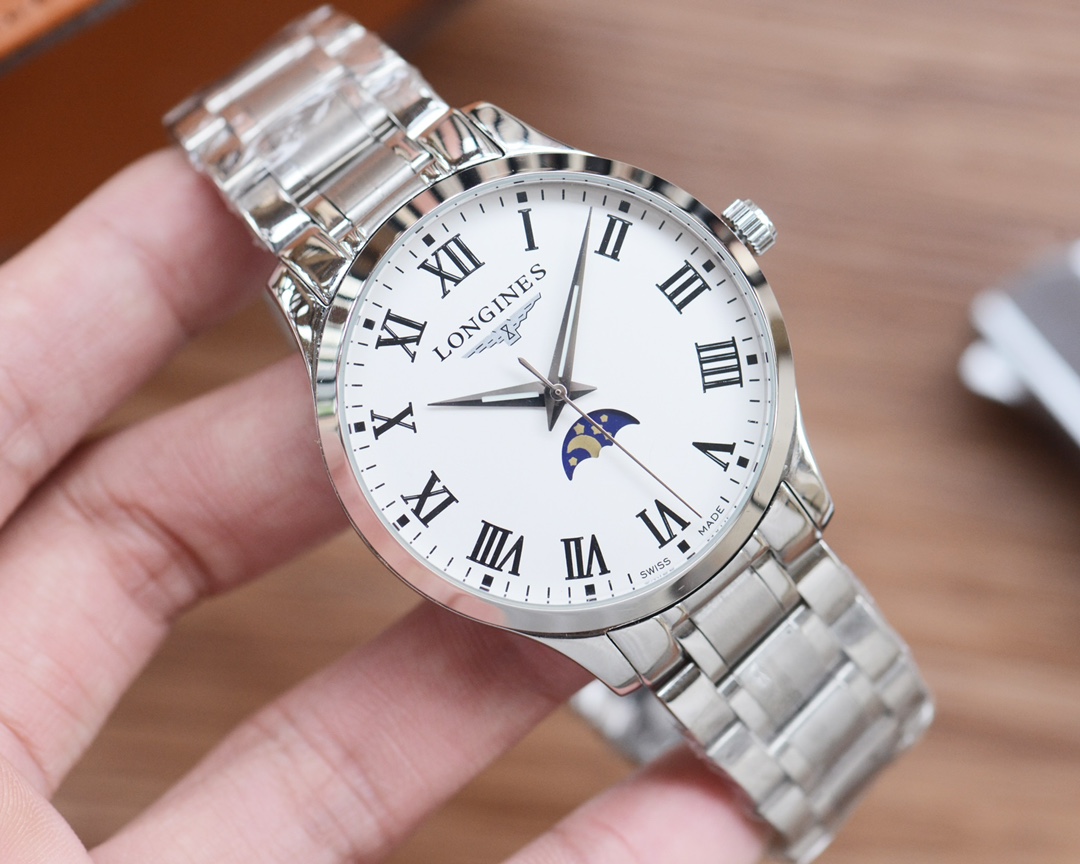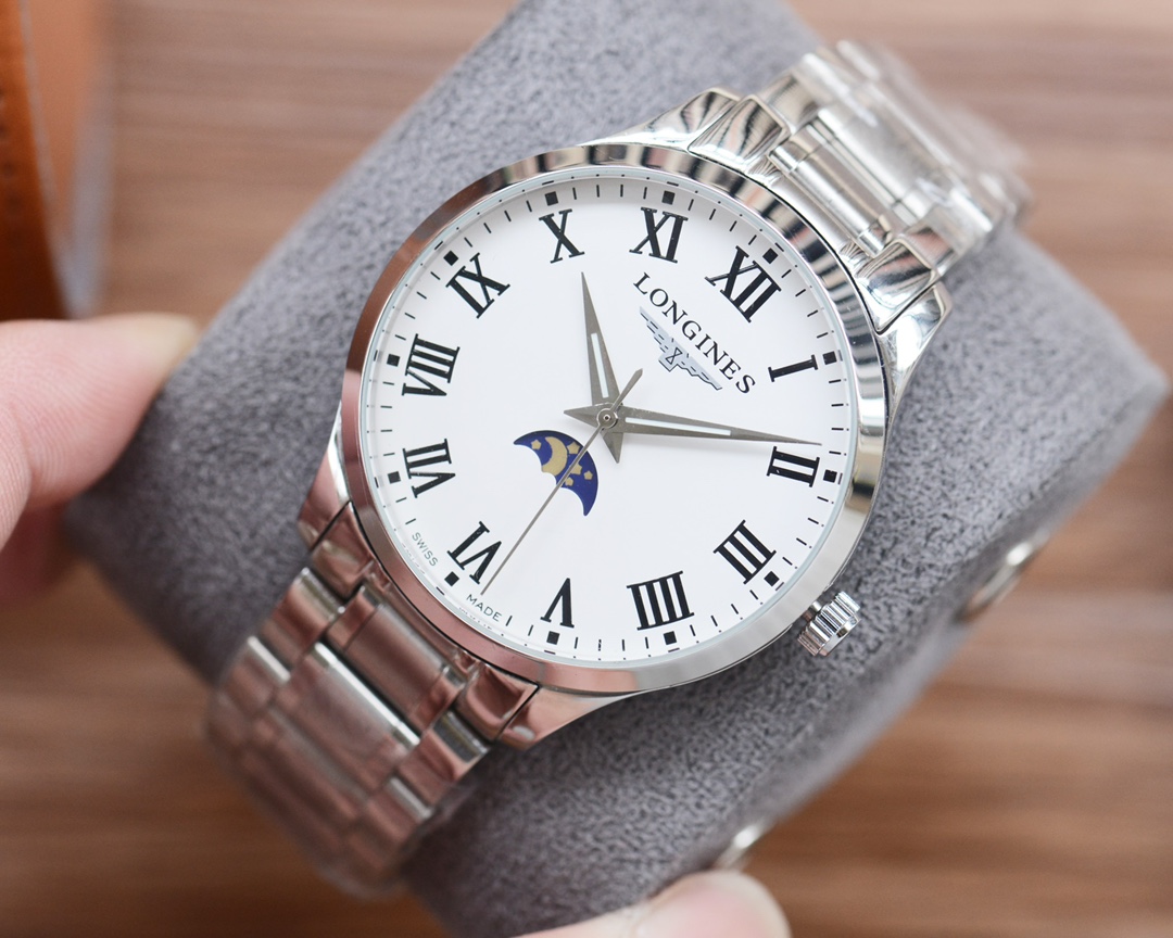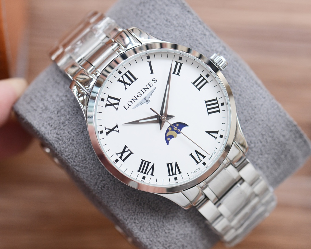 这款手表是AAAAA 1:1 质量 (非常棒). 使用了和原版一模一样的材料. 商标部分也保持了和浪琴/Longines一样. 图片拍摄是实物手表拍摄, 您所收到的实物保证和我们图片一模一样.