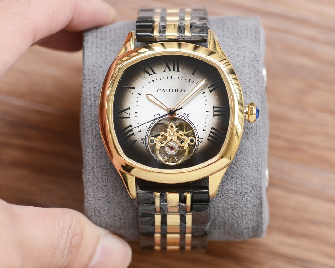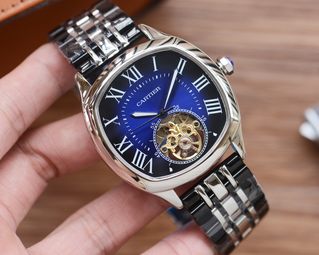 这款手表是AAAAA 1:1 质量 (非常棒). 使用了和原版一模一样的材料. 商标部分也保持了和卡地亚/Cartier一样. 图片拍摄是实物手表拍摄, 您所收到的实物保证和我们图片一模一样.
