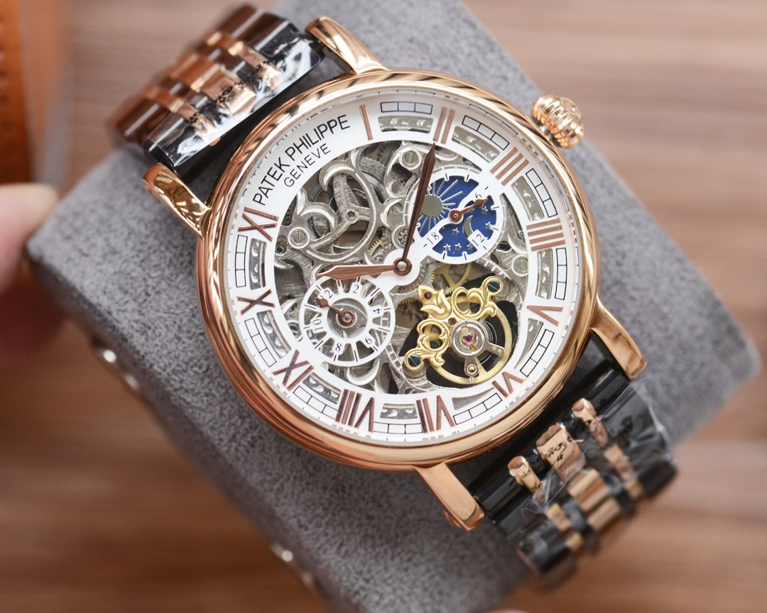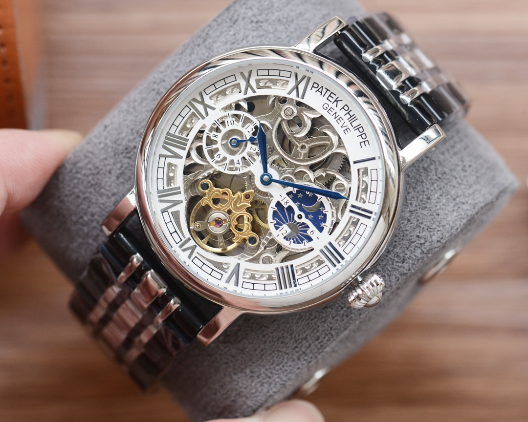 这款手表是AAAAA 1:1 质量 (非常棒). 使用了和原版一模一样的材料. 商标部分也保持了和百达翡丽/Patek Philippe一样. 图片拍摄是实物手表拍摄, 您所收到的实物保证和我们图片一模一样.
