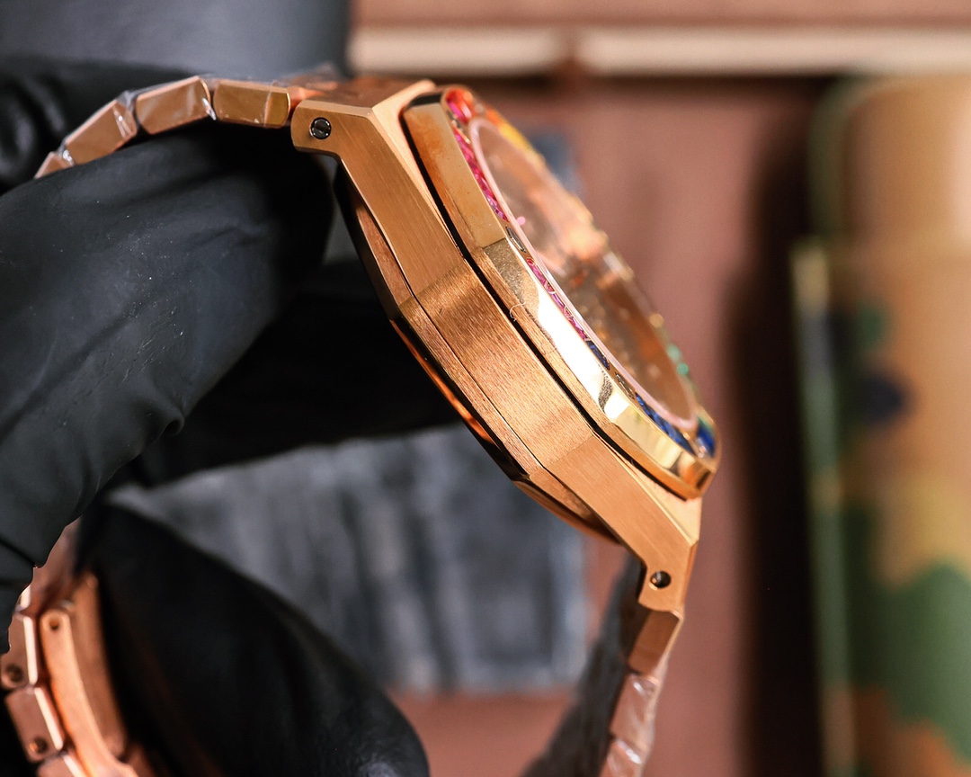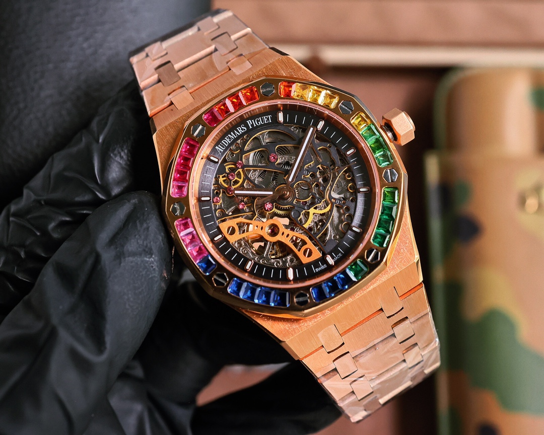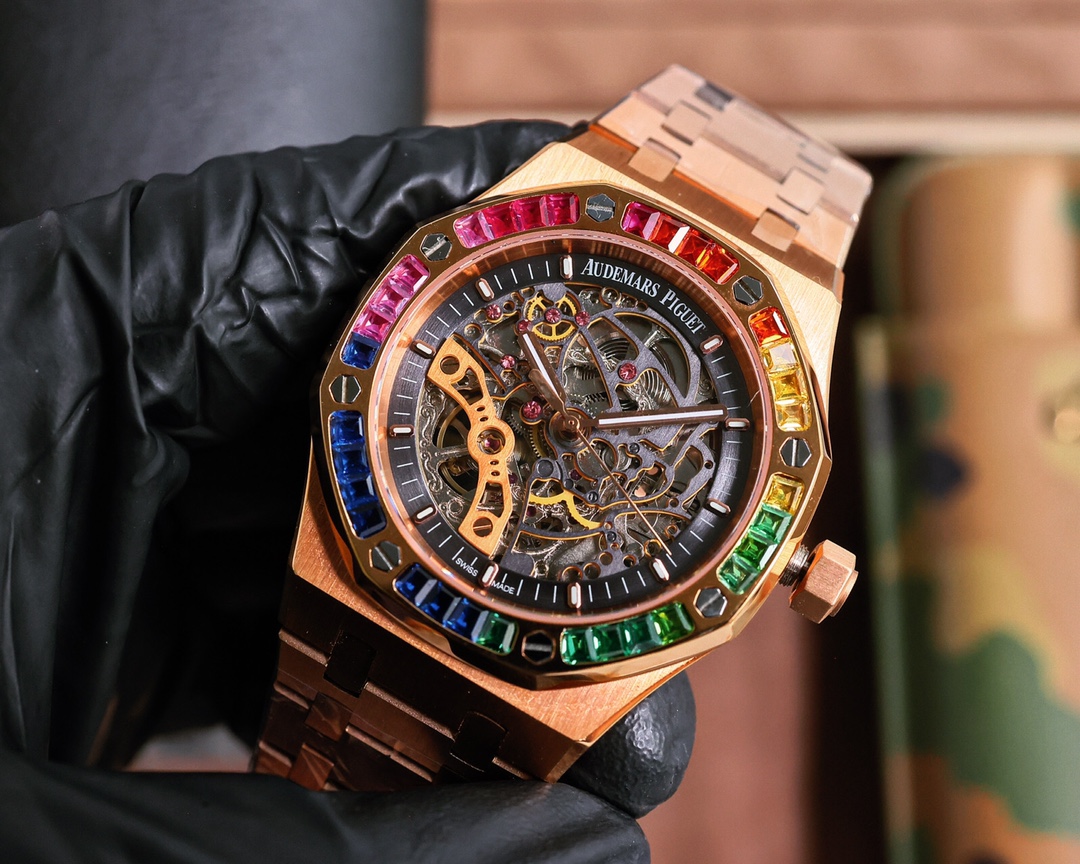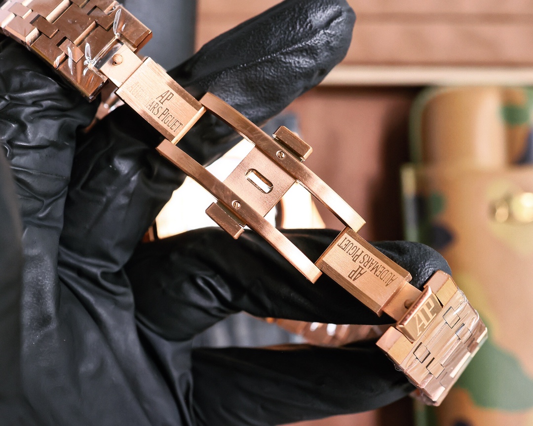 这款手表是AAAAA 1:1 质量 (非常棒). 使用了和原版一模一样的材料. 商标部分也保持了和爱彼/Audemars Piguet一样. 图片拍摄是实物手表拍摄, 您所收到的实物保证和我们图片一模一样.
