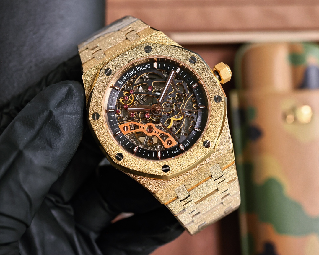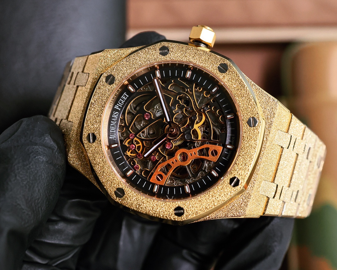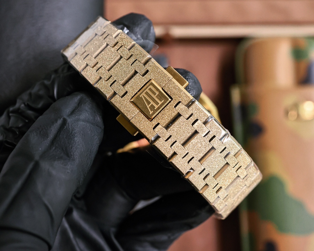 这款手表是AAAAA 1:1 质量 (非常棒). 使用了和原版一模一样的材料. 商标部分也保持了和爱彼/Audemars Piguet一样. 图片拍摄是实物手表拍摄, 您所收到的实物保证和我们图片一模一样.